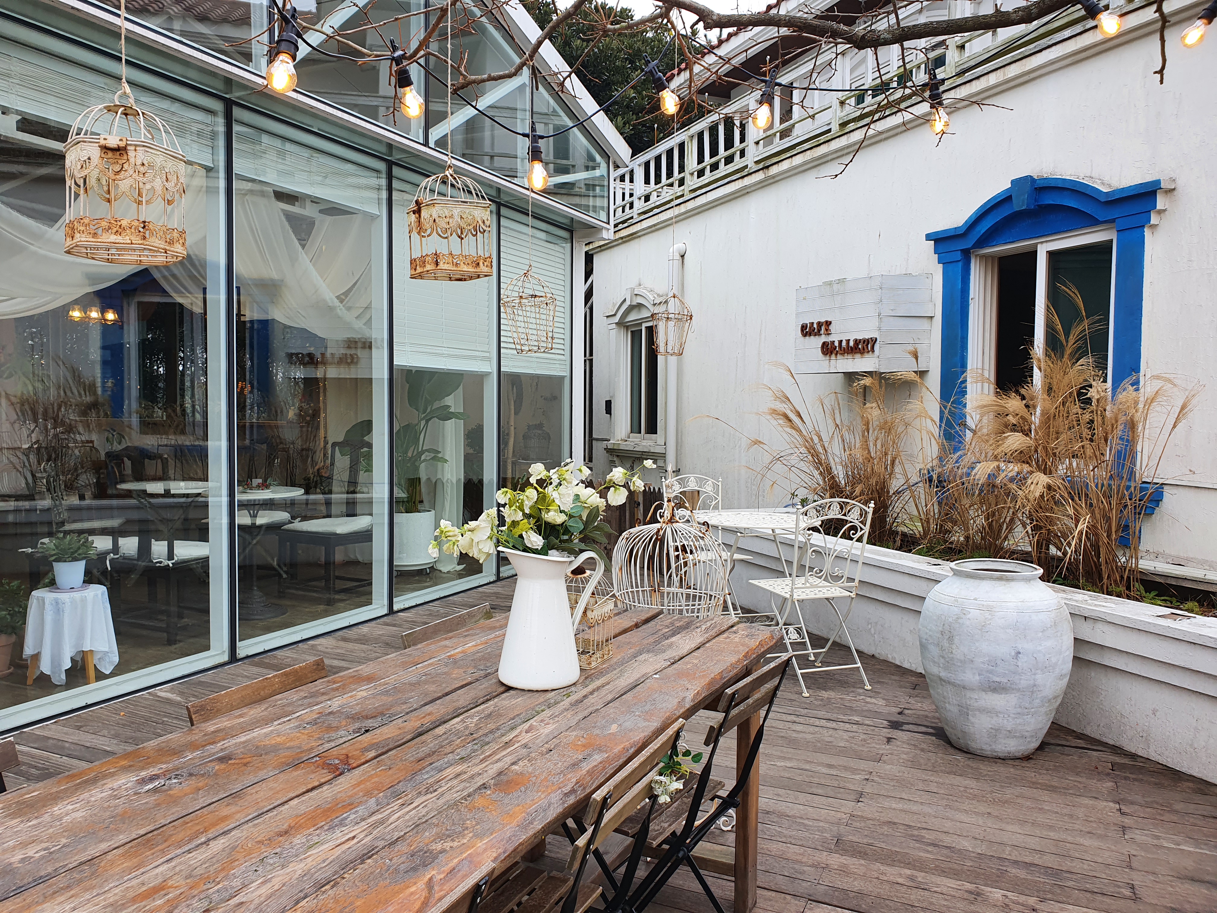 주차하고 예쁘게 꾸며진 돌길을 따라 걸어서 카페로 들어갔다.