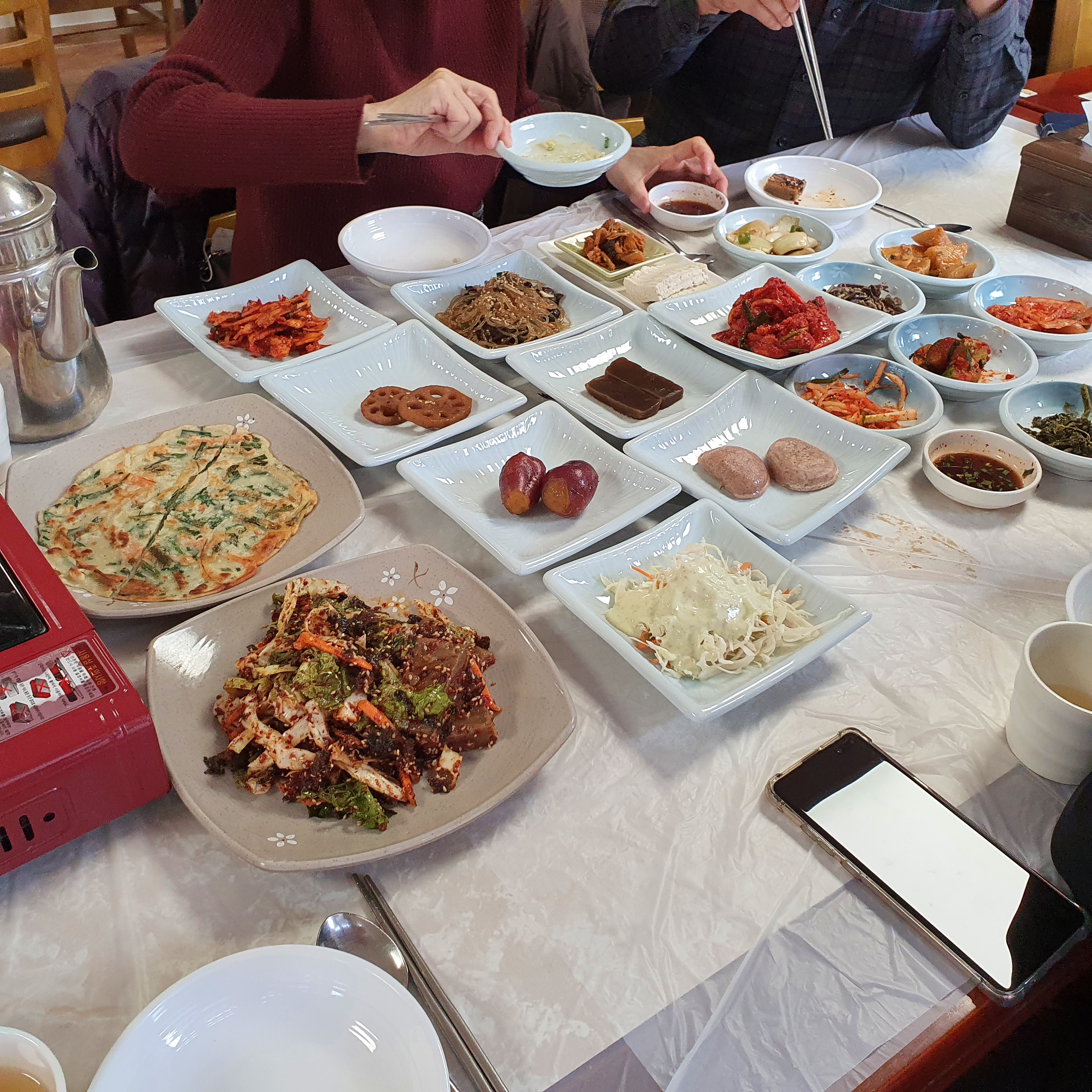 차를 가져다 주시고 반찬을 세팅해주셨다.