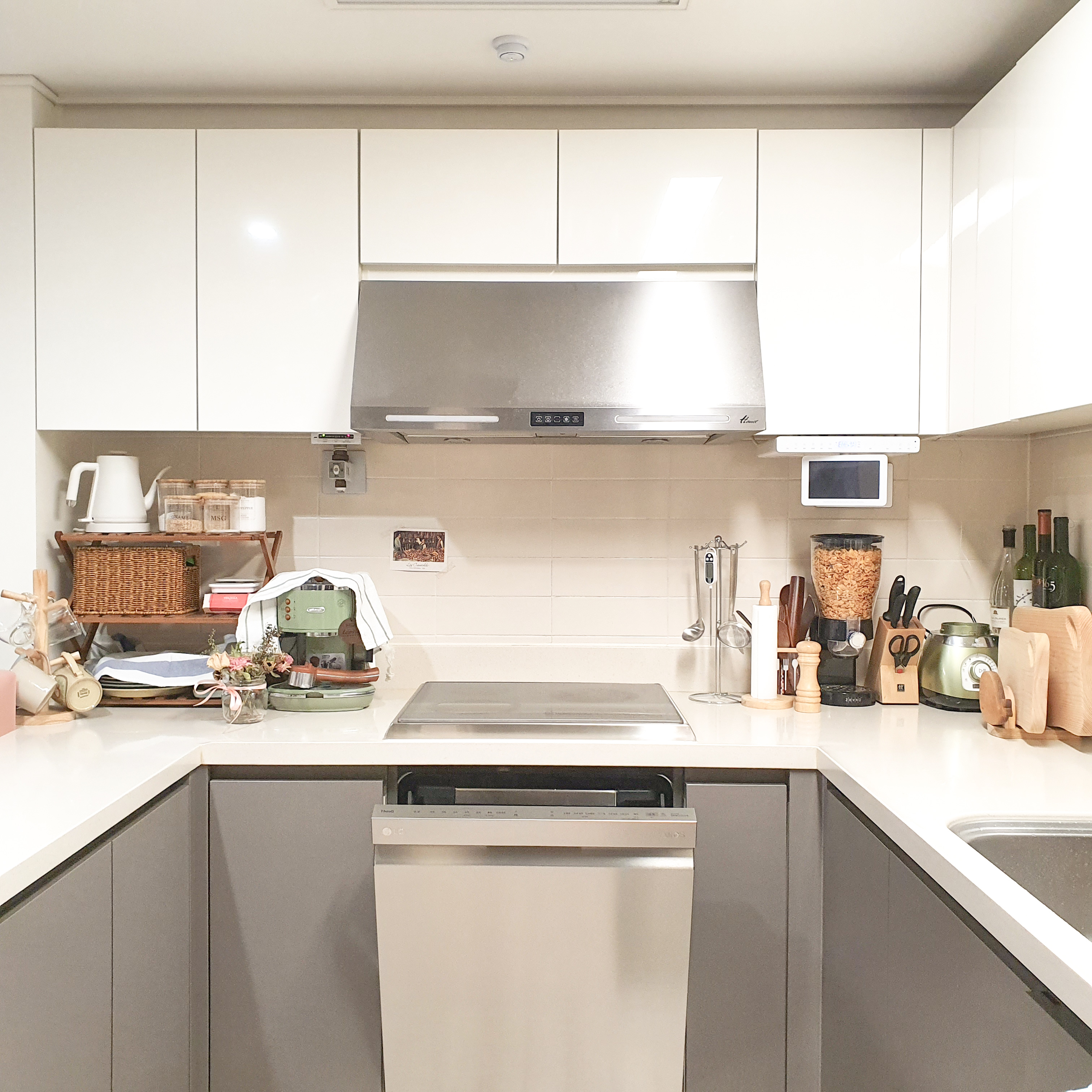 식세기 앞에서 어떻게든 잘 정리해보려고 이렇게 저렇게 그릇 배치 하다보면