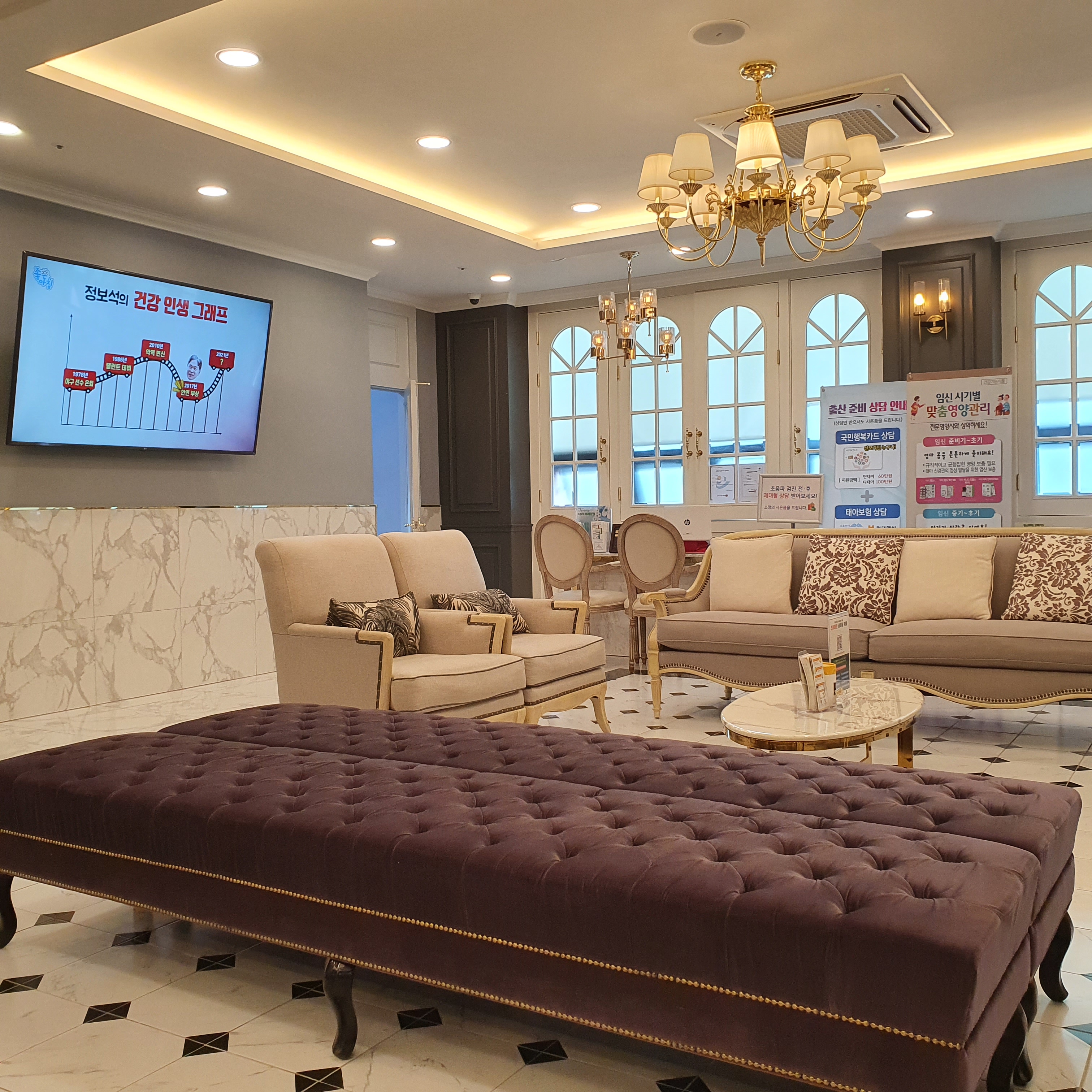 의자에 앉아서 남편이랑 같이 기다리는데