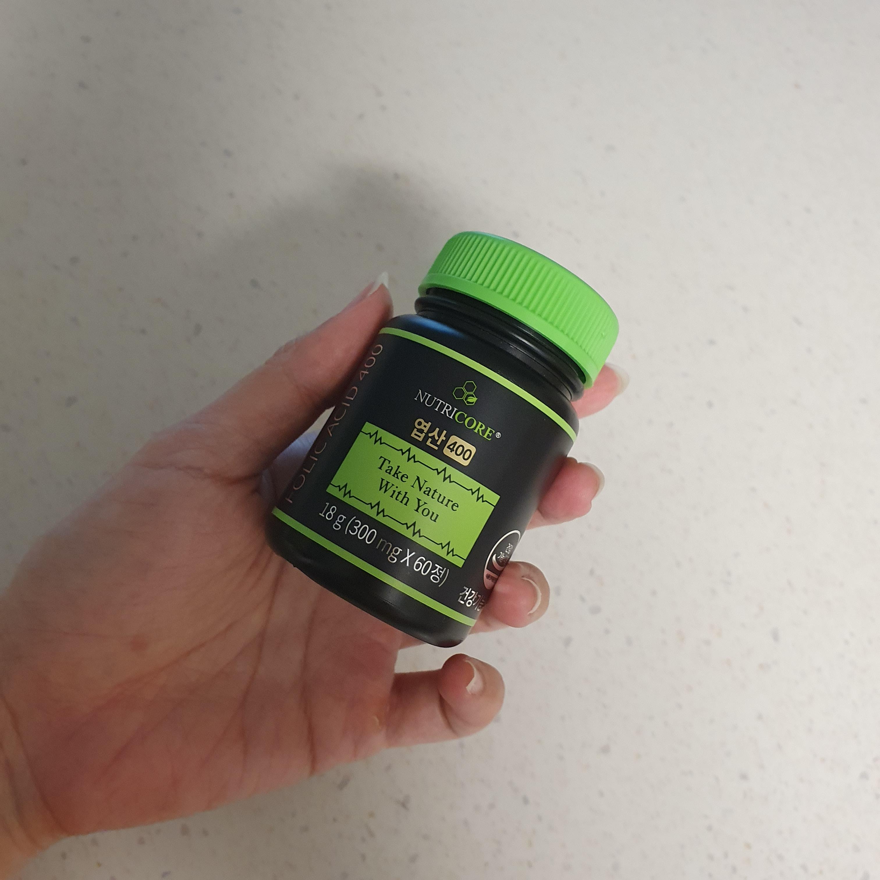 뉴트리코어 엽산 400을 구매해서 남편이랑 매일매일 복용했다.