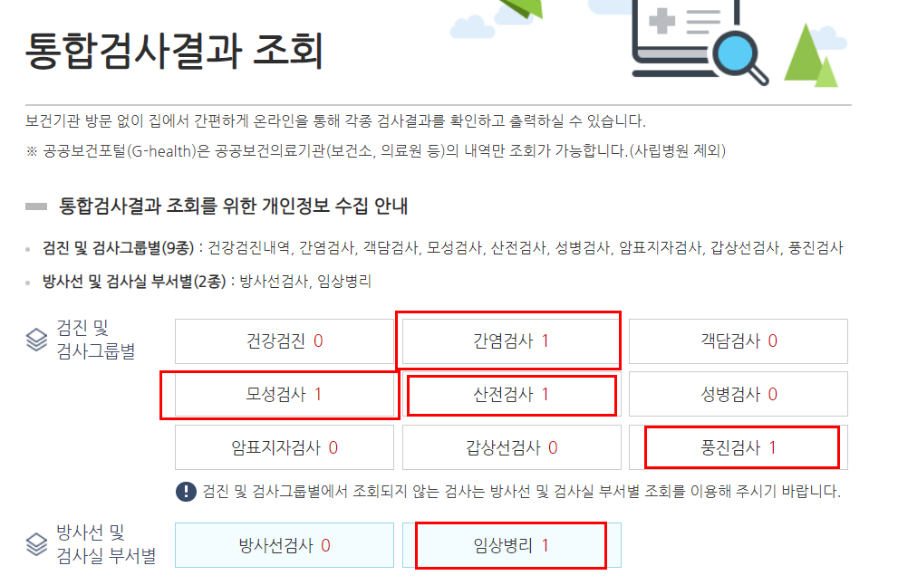 본인확인 후 검사결과가 나왔는지 확인한다.
