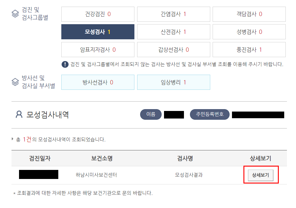 검사 결과는 1주일 후에 보건소에 직접 방문해서 받을 수 있지만