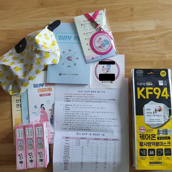 마스크를 비롯한 소정의 선물과 영양제(엽산), 임산부 배찌 등을 챙겨주셨고