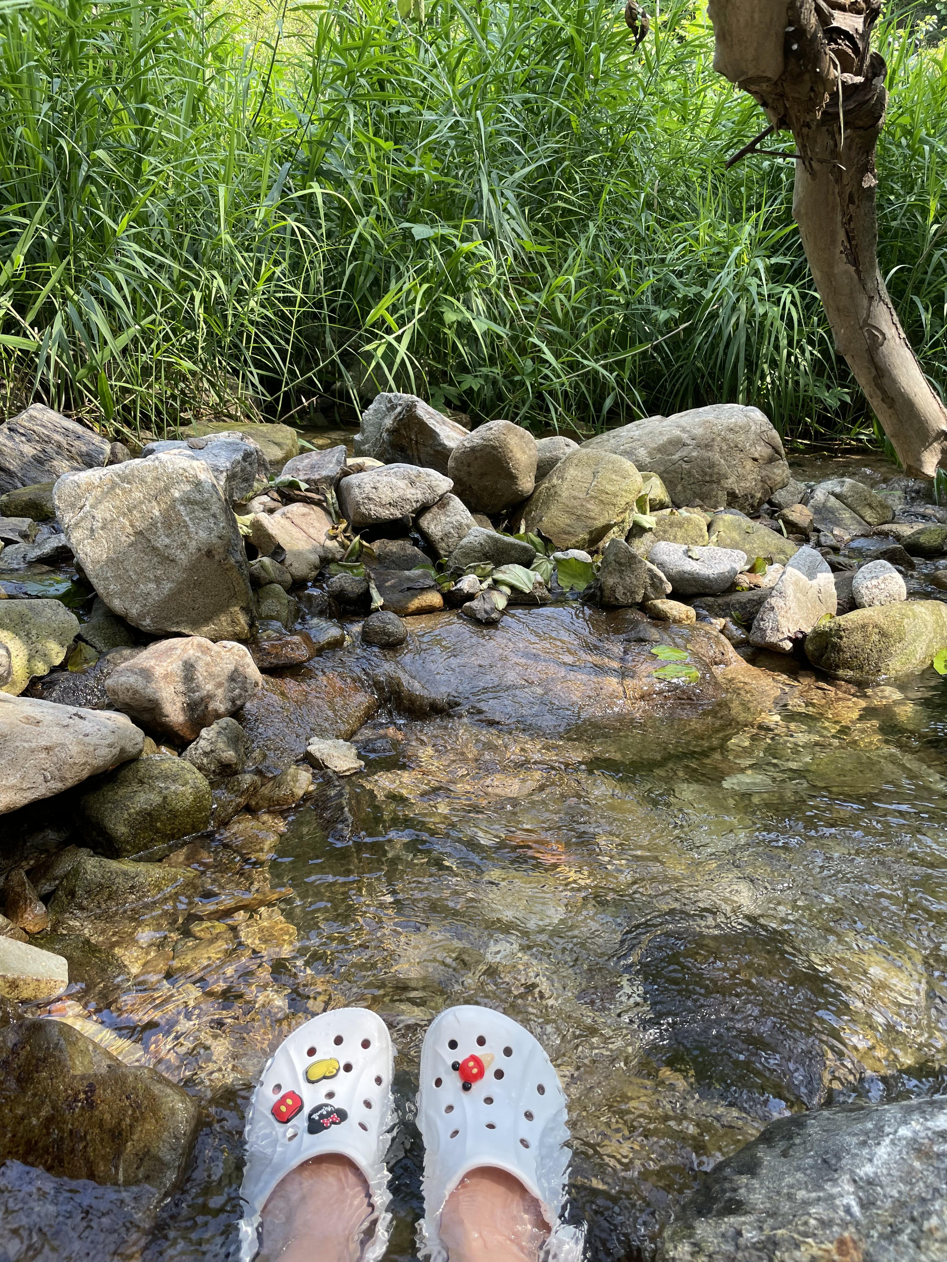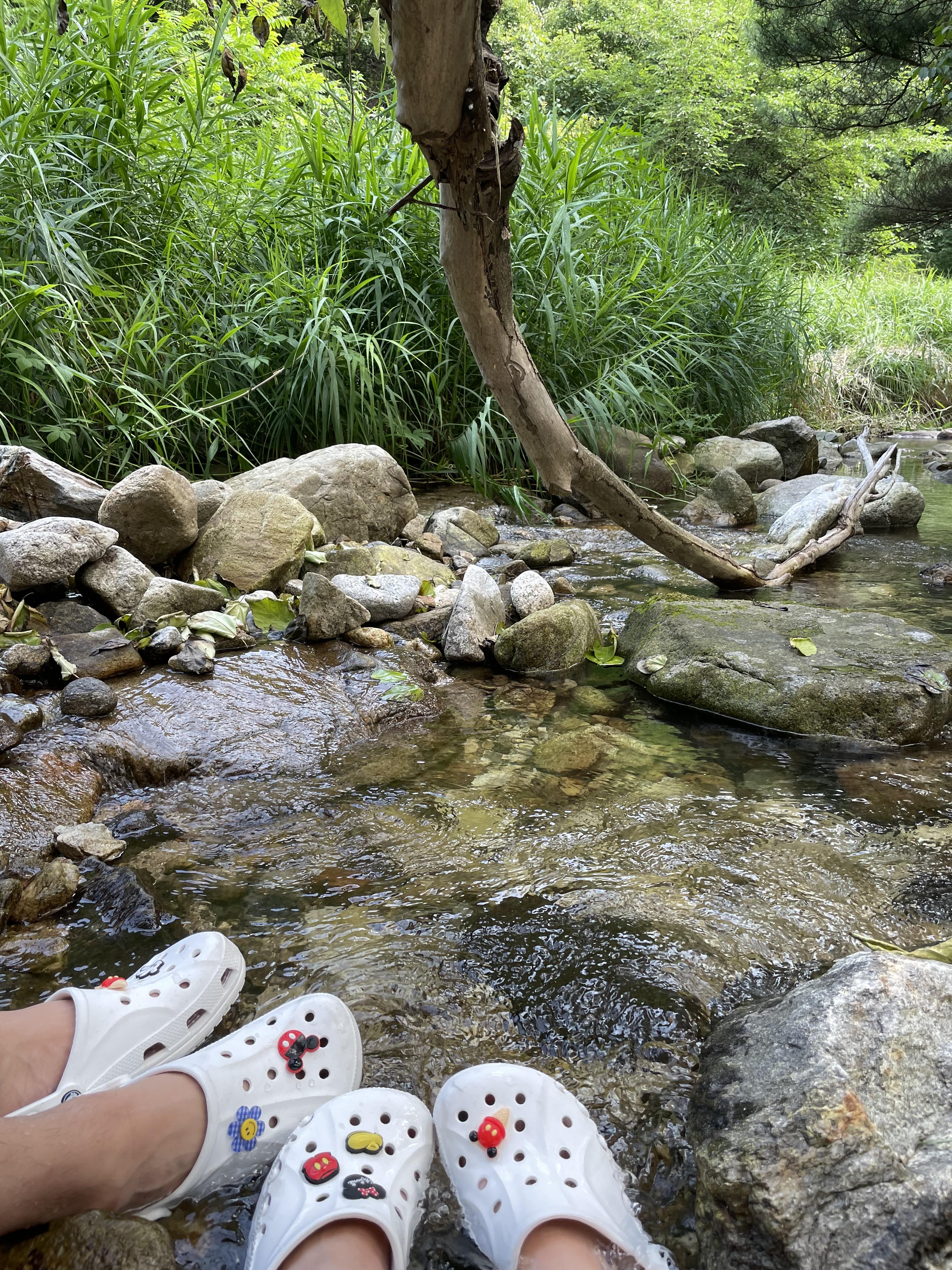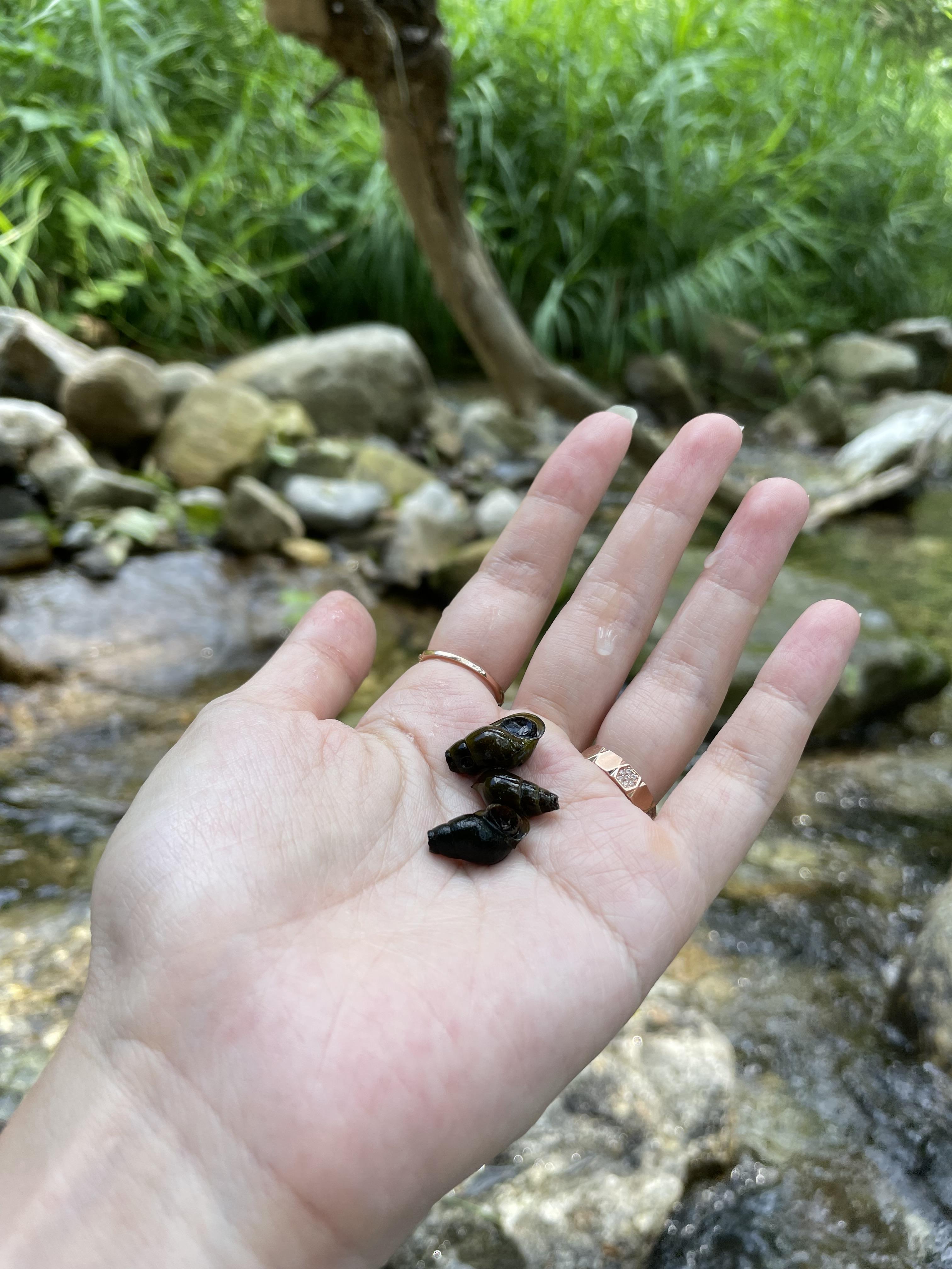 물이 너무 깨끗해서 돌에 다슬기 붙어있는게 다 보였다.