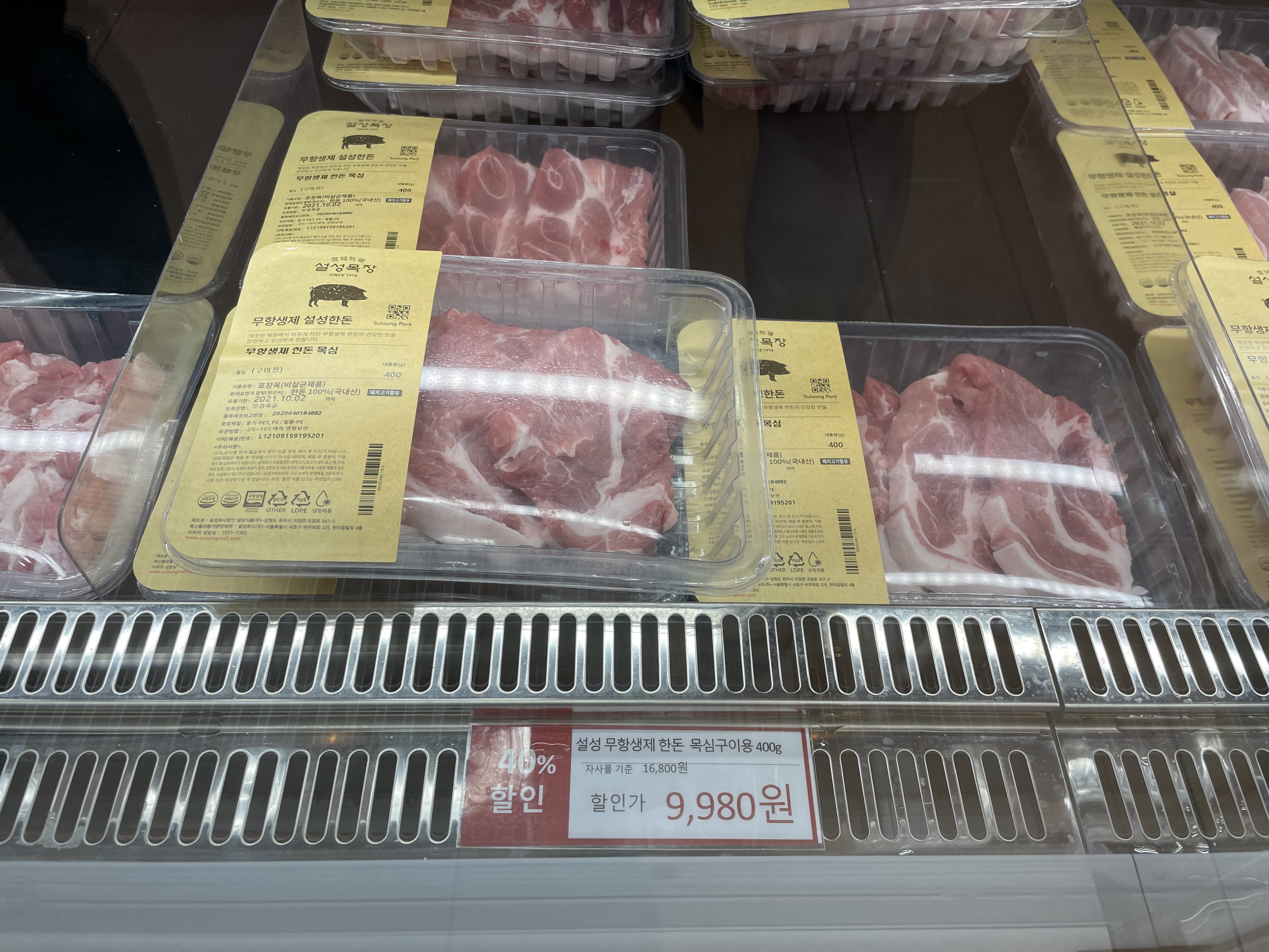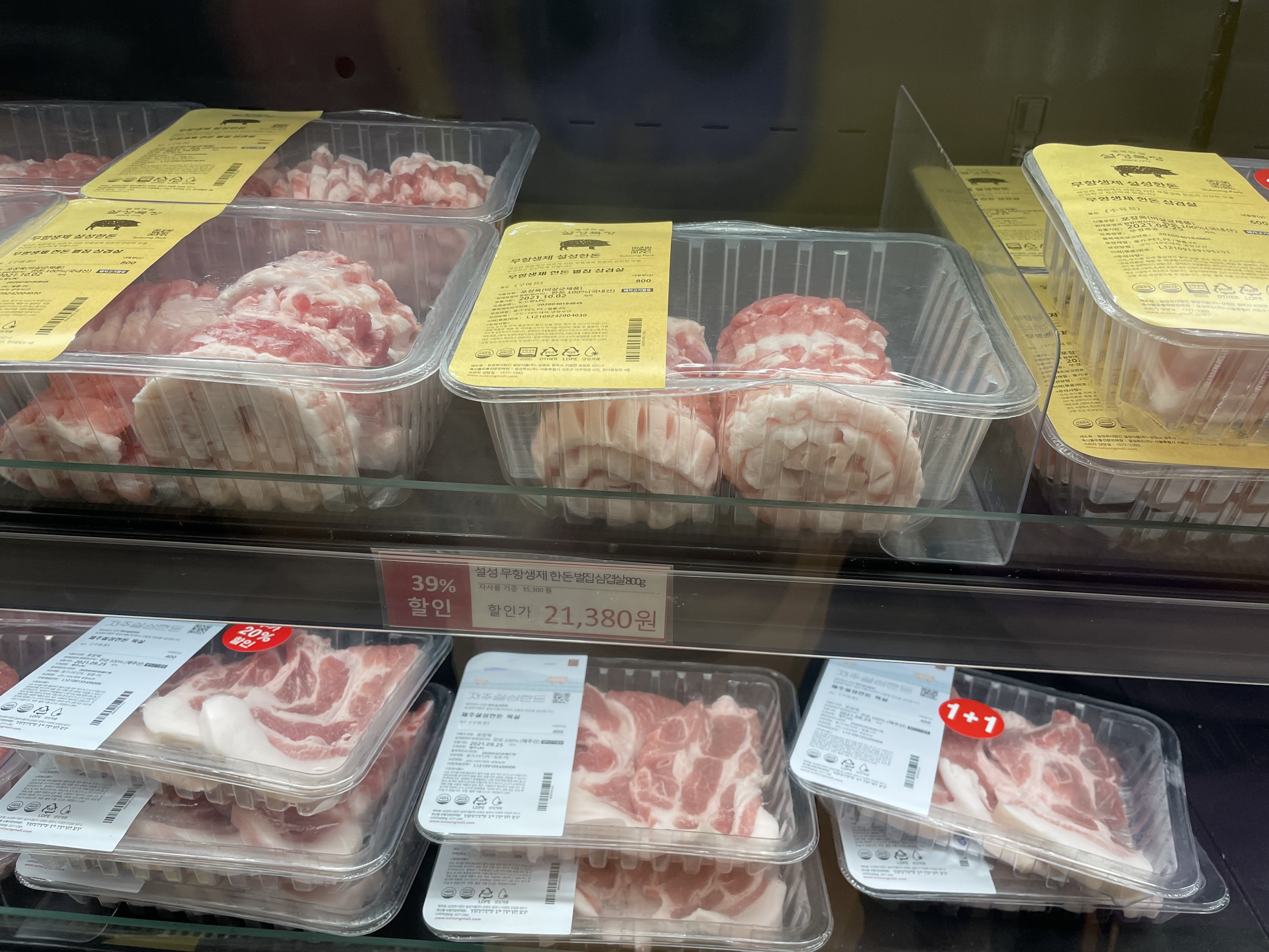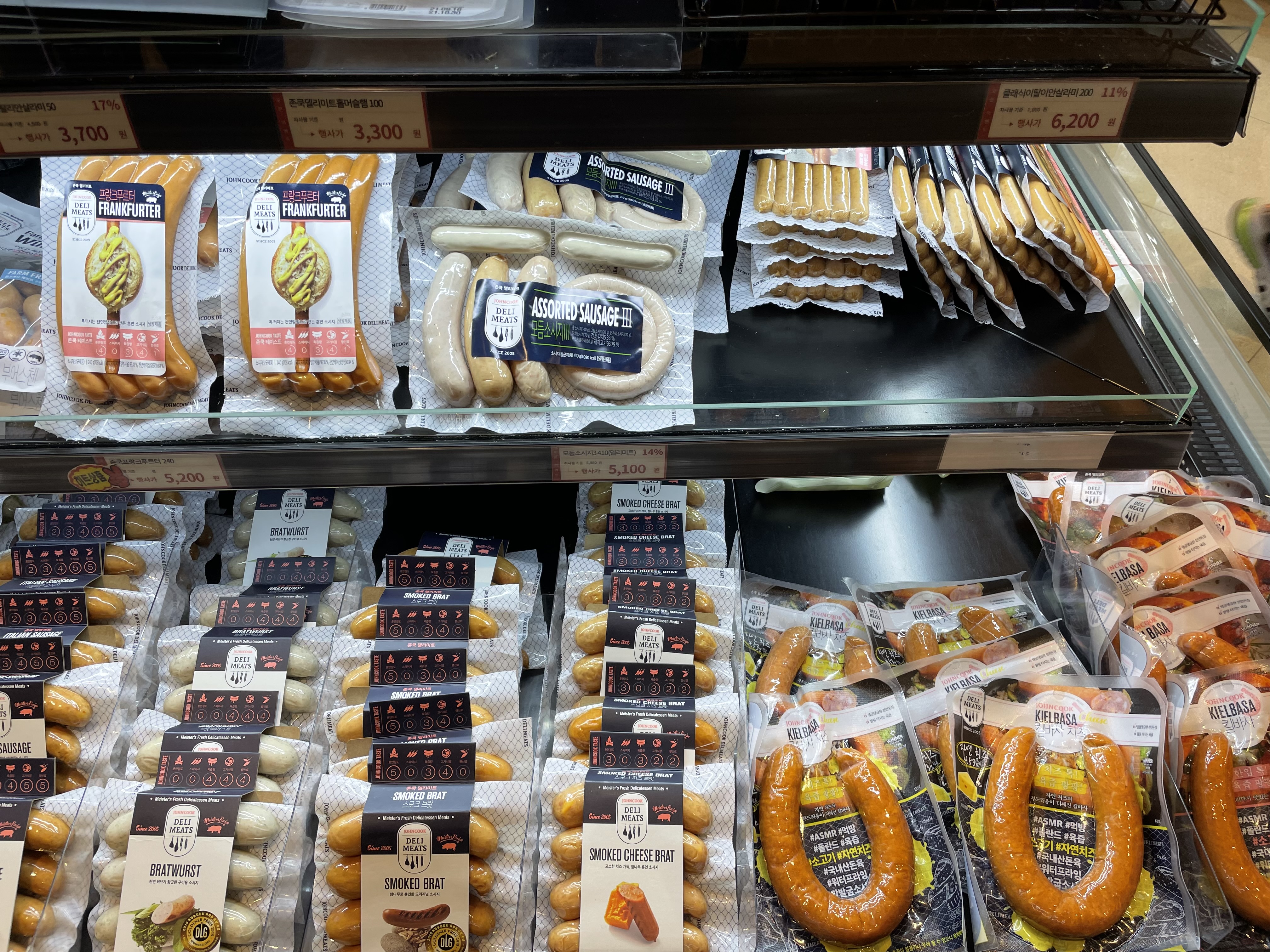 이것저것 구경하다가 바비큐에 빠질 수 없는 소시지도 한 팩 구매했다.