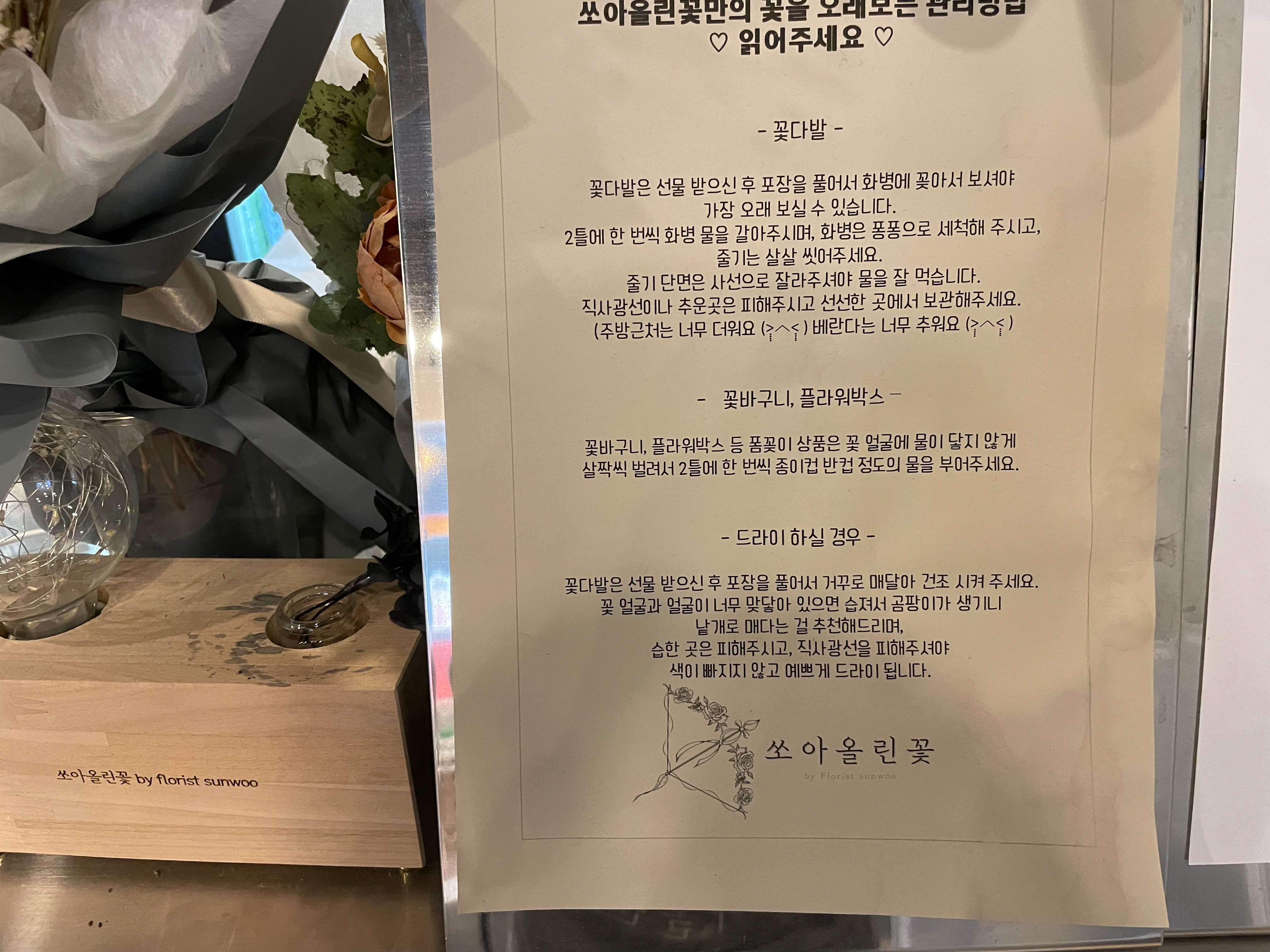 꽃 오래 보관하는 방법도 게시되어 있어서 큰도움이 될 것 같았다.