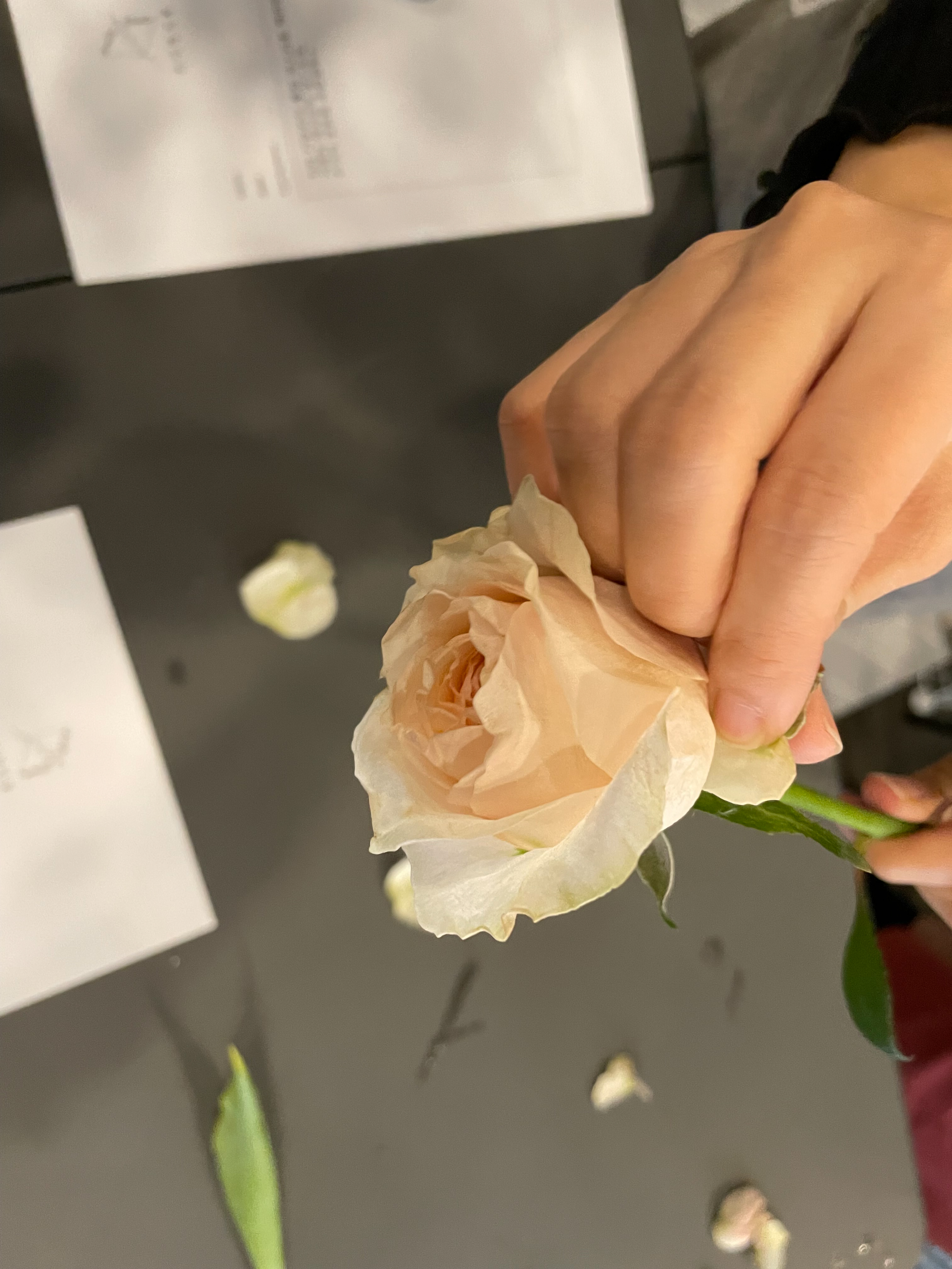제일 먼저 한 일은 장미꽃의 겉잎을 떼어내는 일이었다.