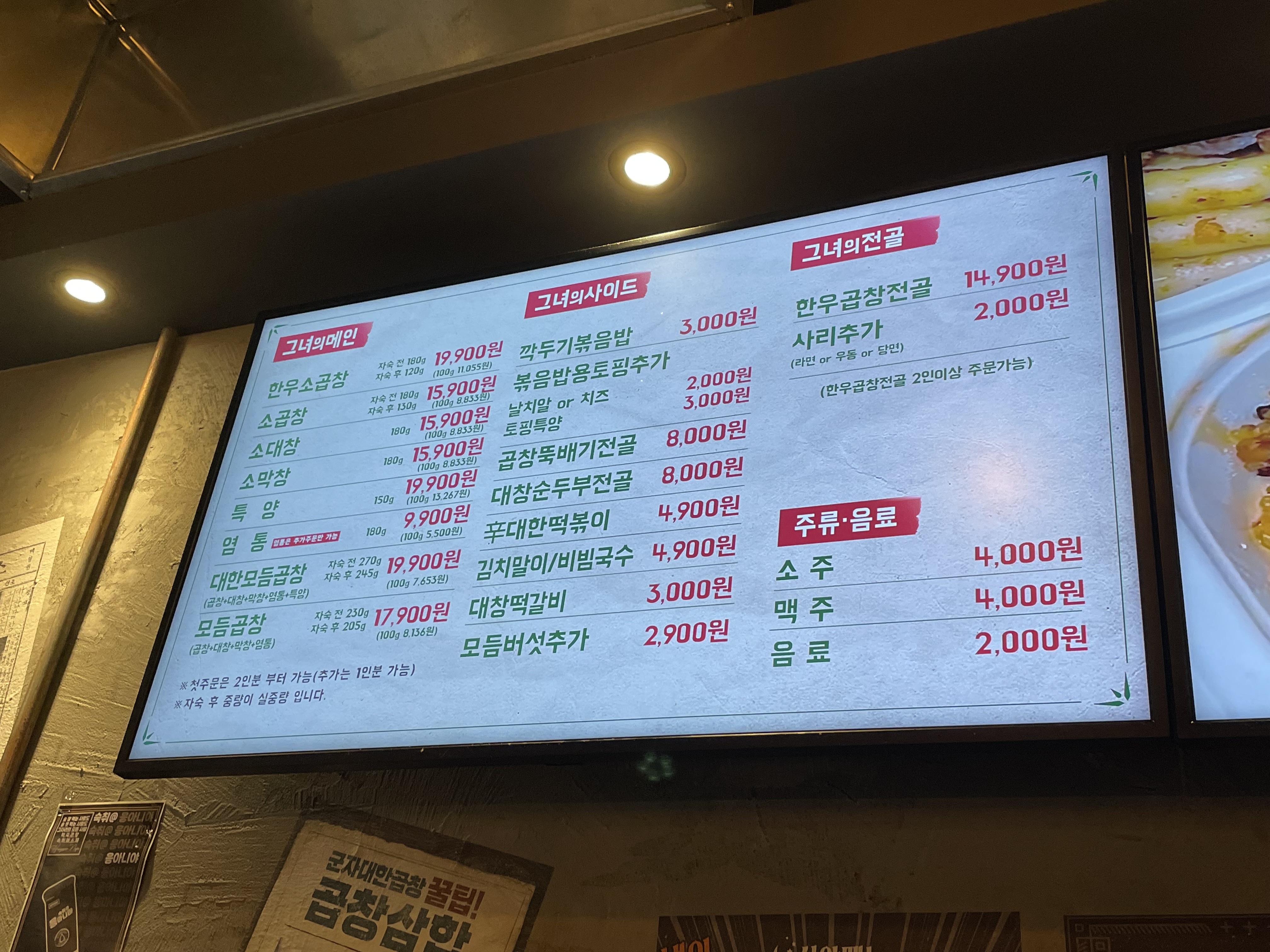 대한 모듬곱창 2인분과 사이다를 먼저 주문하고
