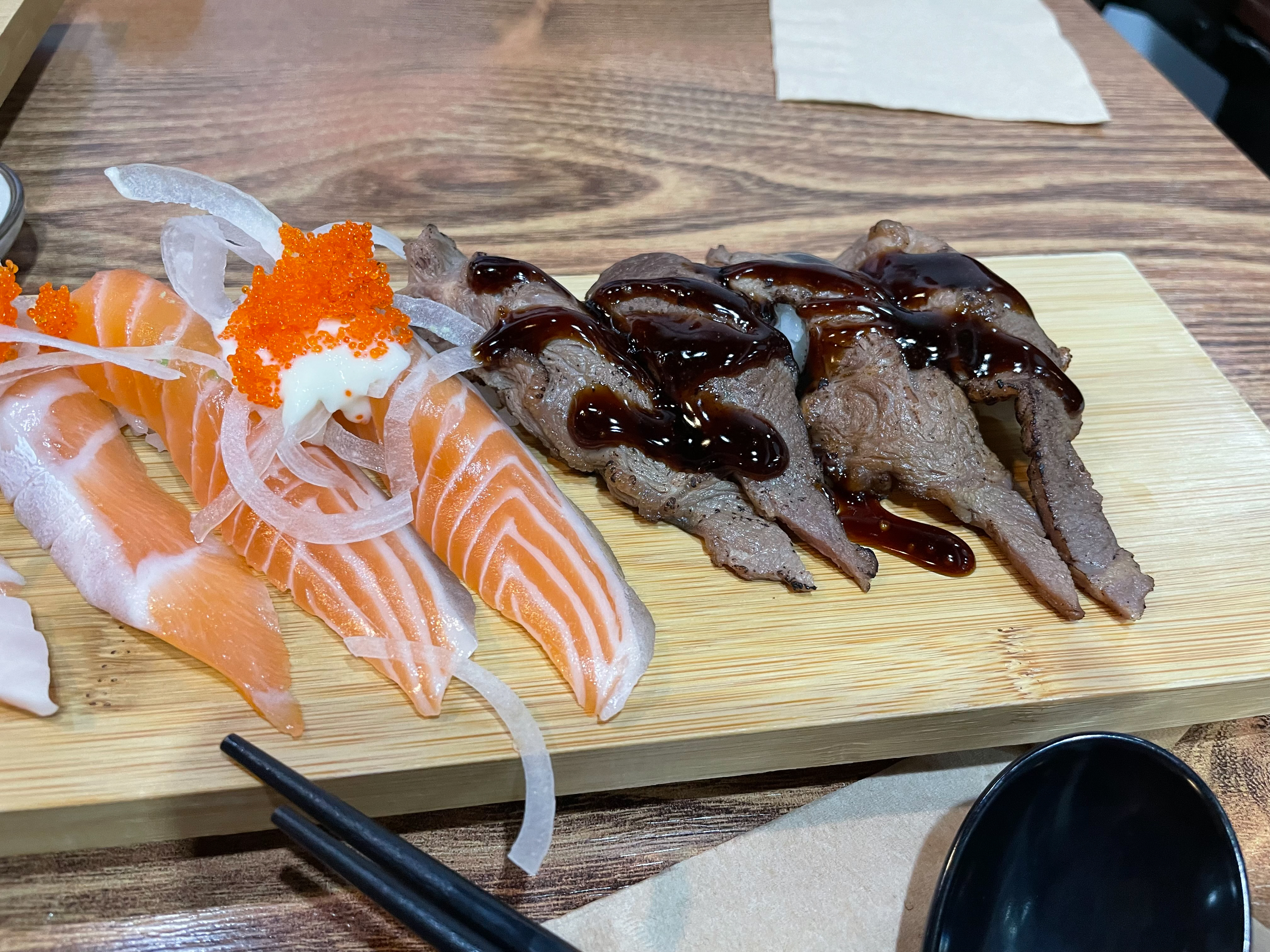 남편은 소고기 초밥이 들어간 초밥 세트를 주문했는데