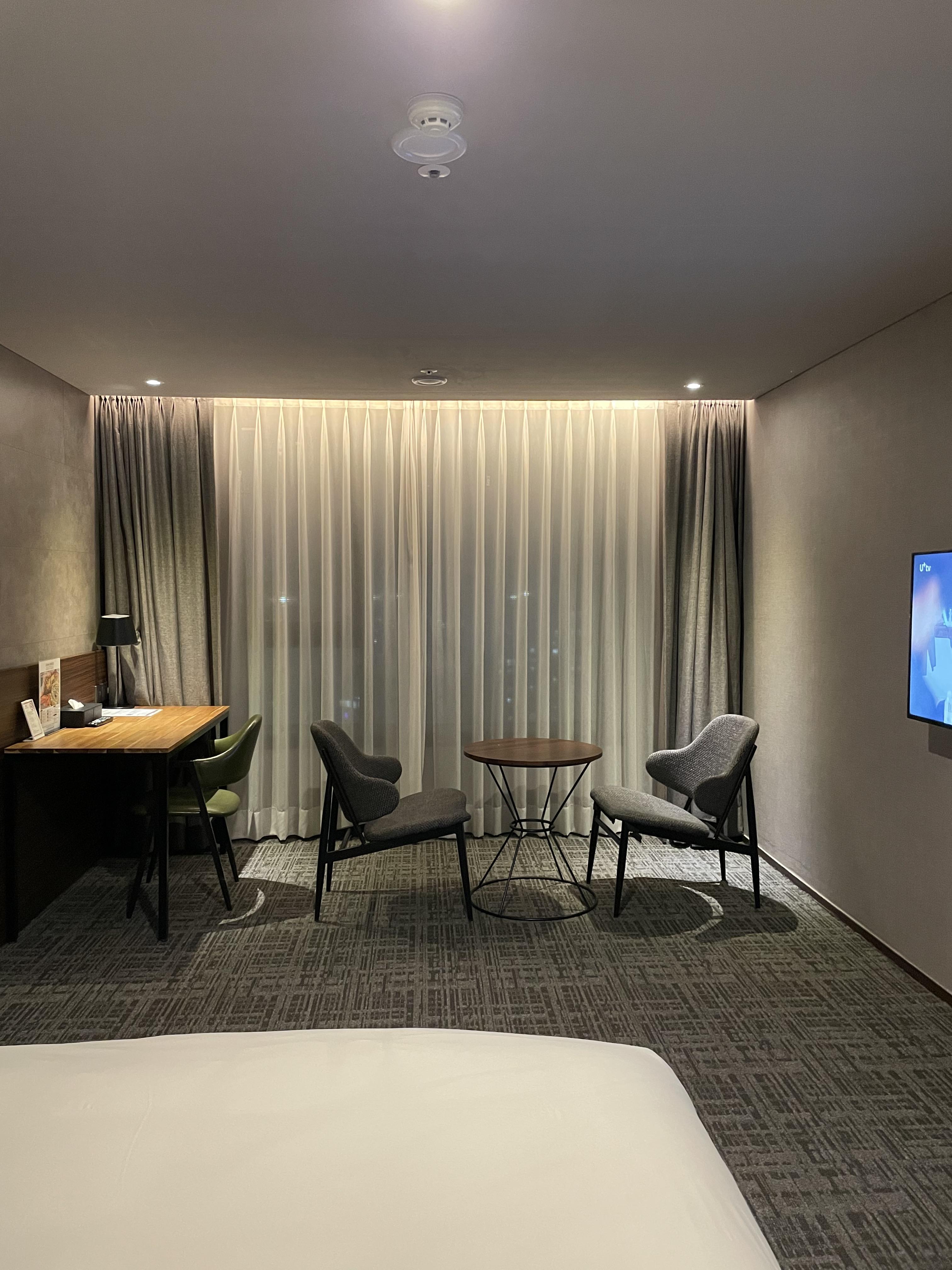 주차타워에 주차를 하고 받은 비밀번호를 입력하여 객실로 들어갔다.