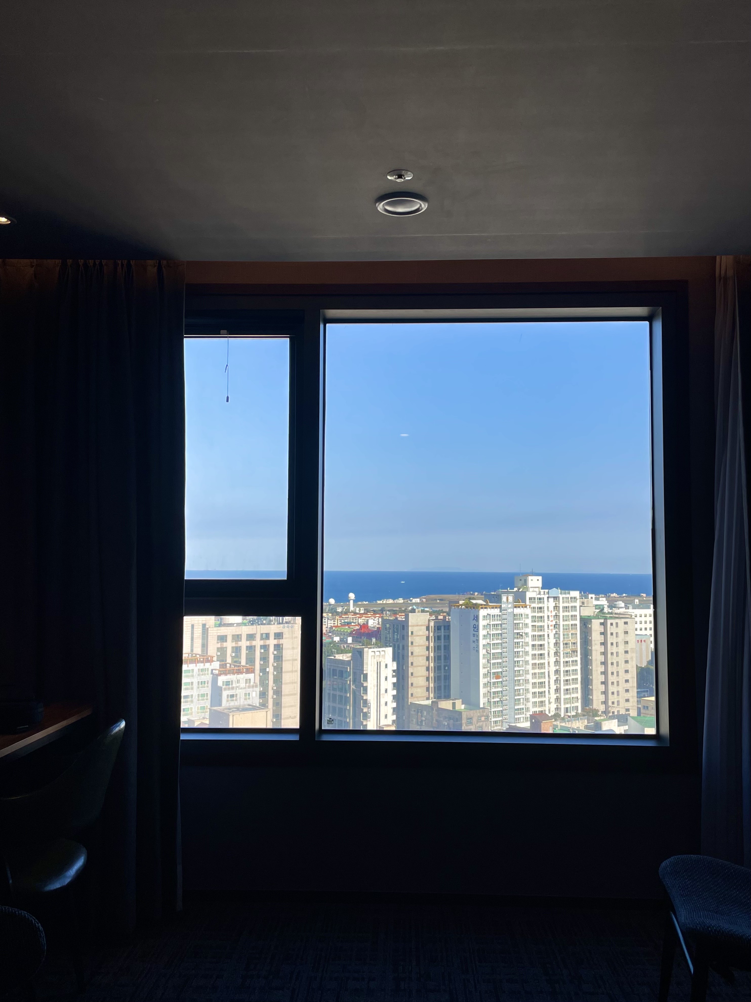 체크인 할 때는 몰랐던 바다뷰가 눈에 들어왔다.