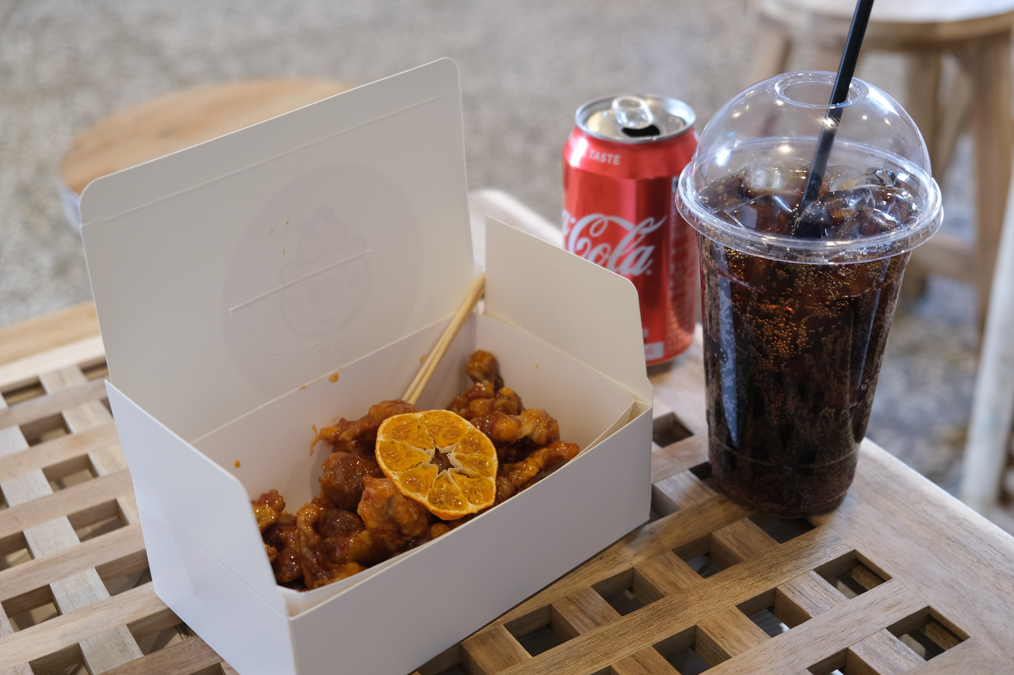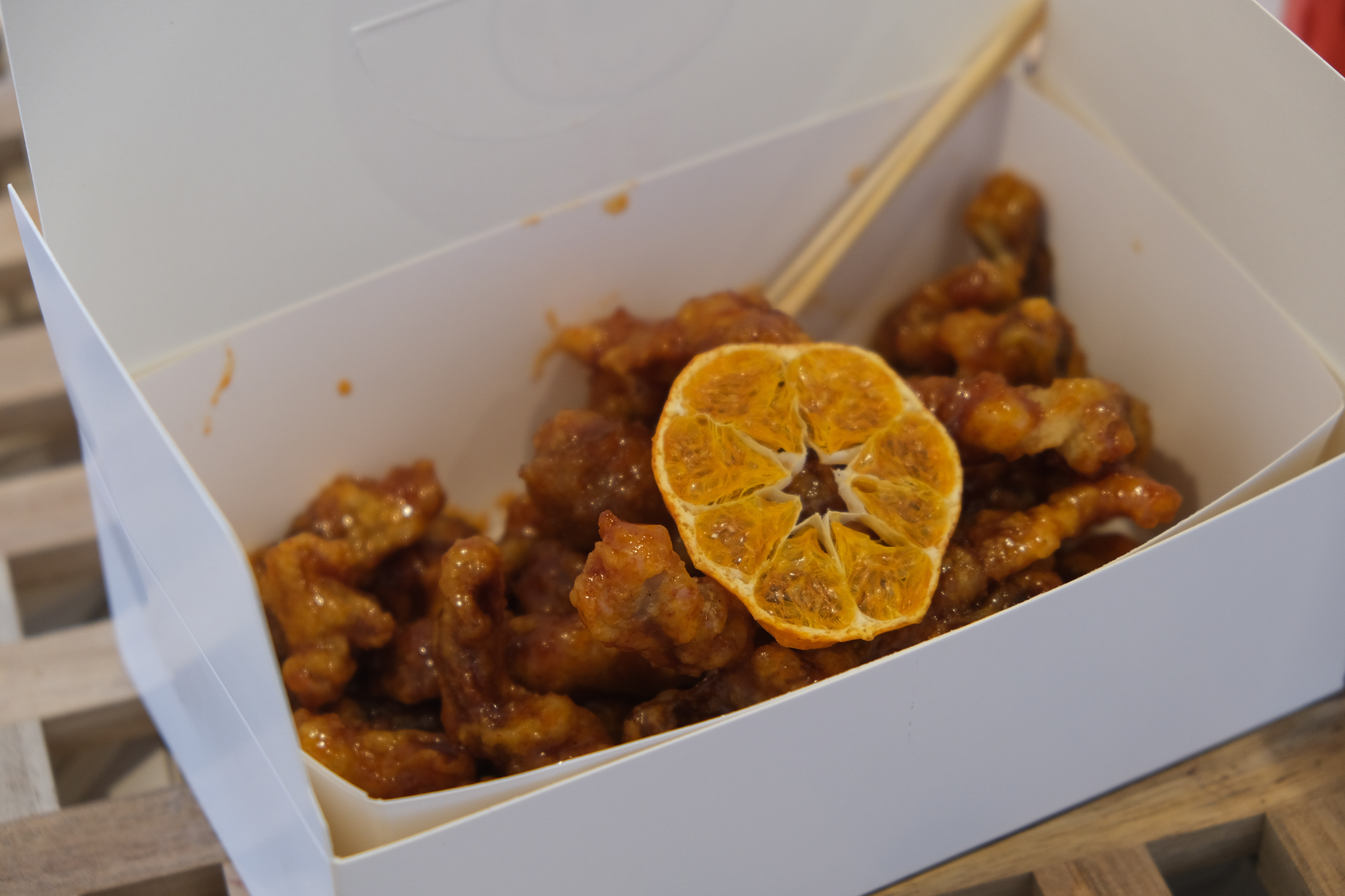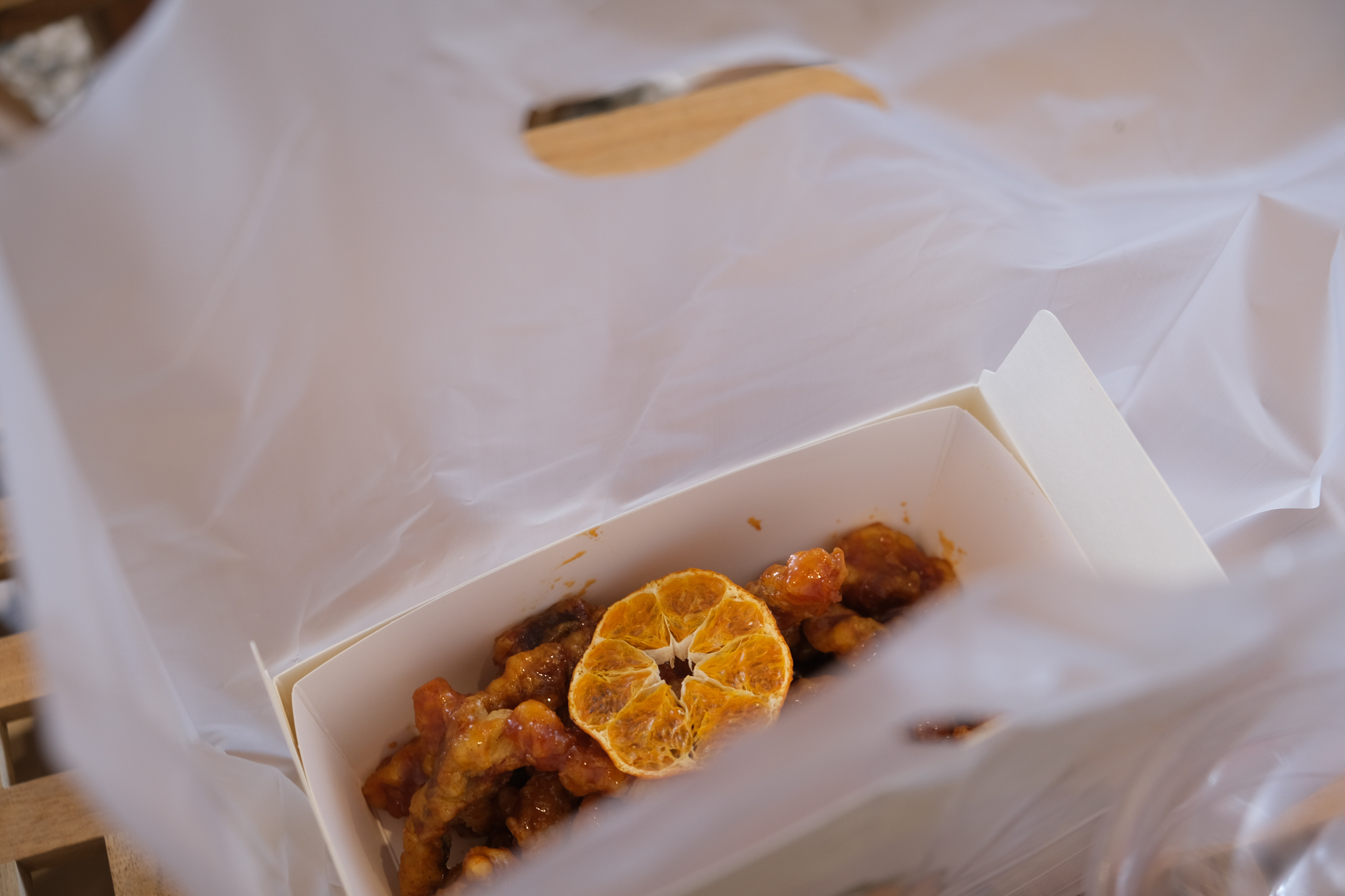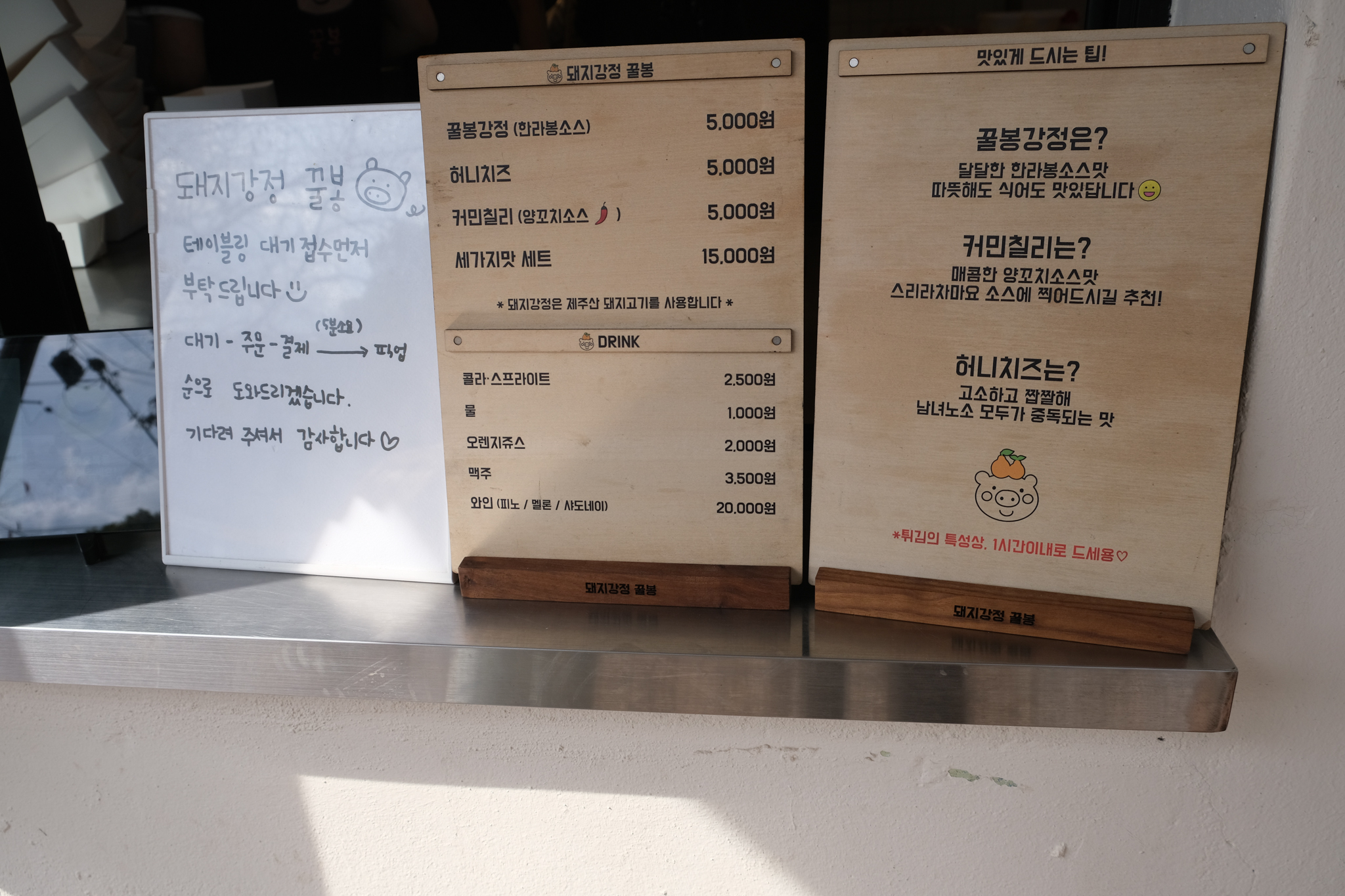 고민하다가 제주도에 왔으니 한라봉 소스로 만든 꿀봉강정을 맛보기로 했다.