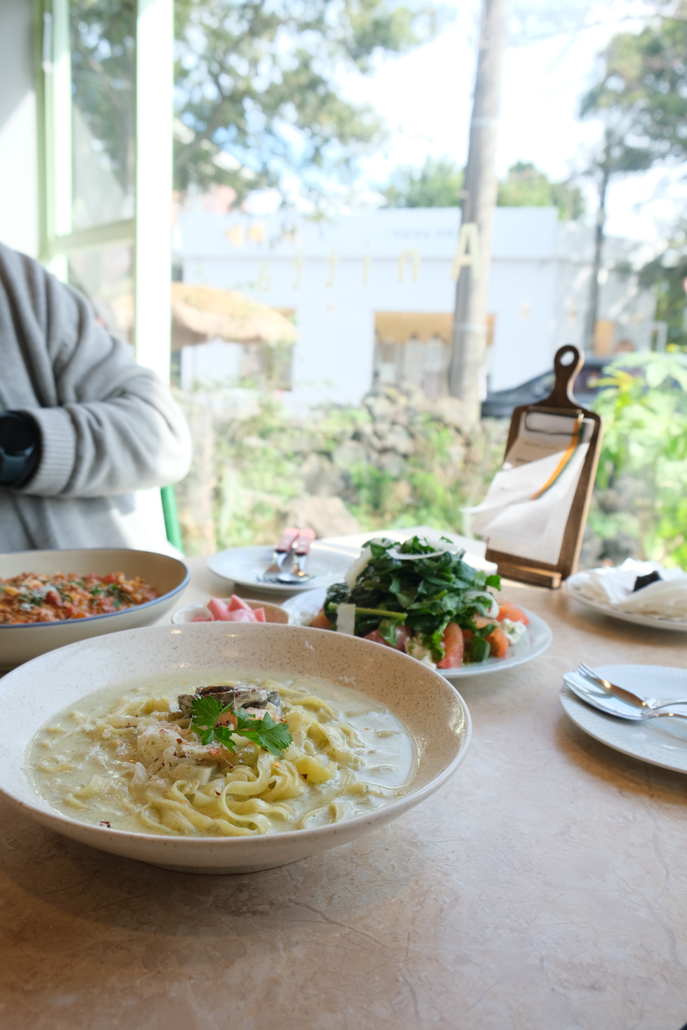 샐러드 사진찍는 사이 파스타도 가져다 주셨다.