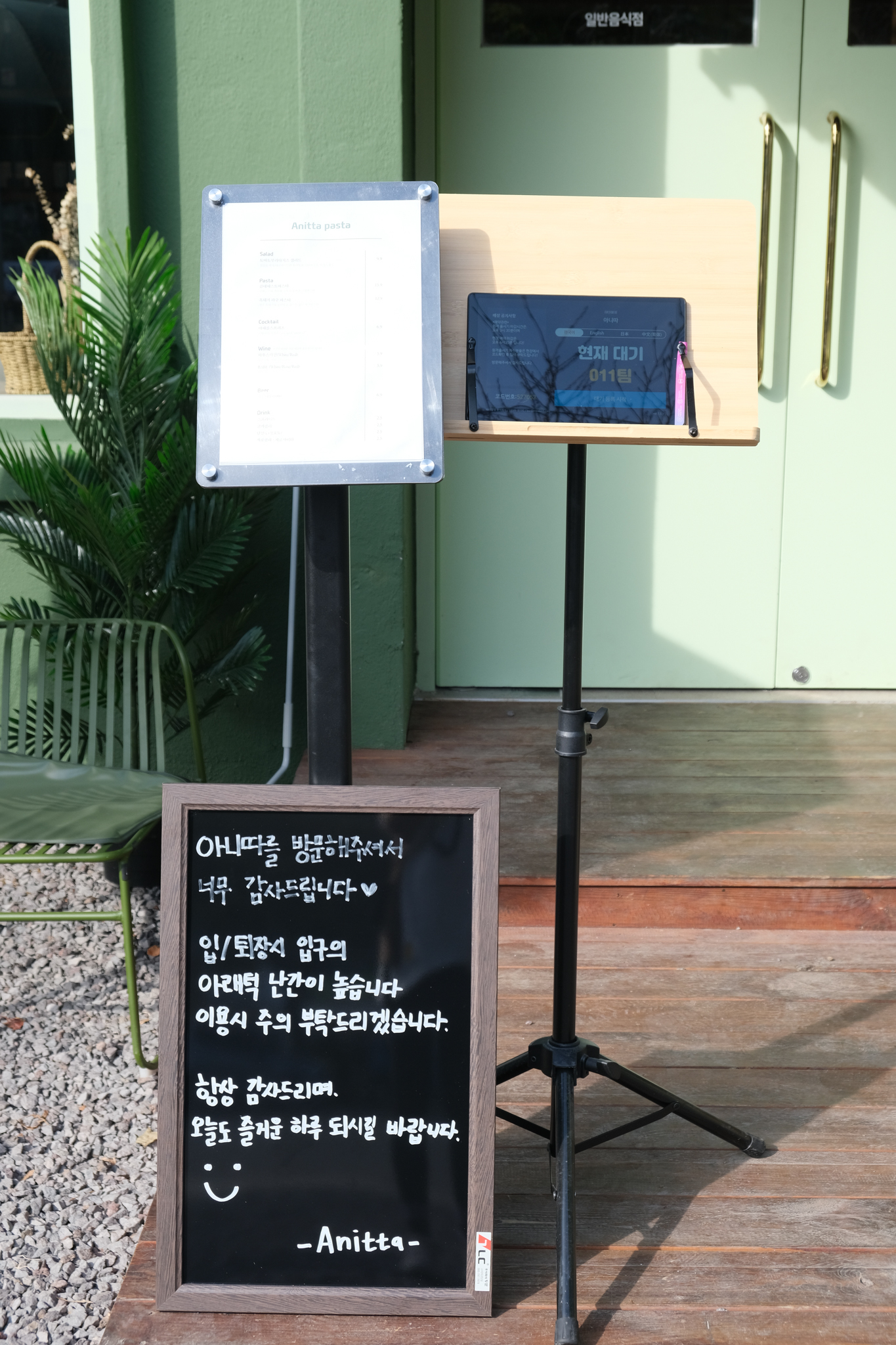 11시에 오픈을 하는데11시부터 테이블링 어플로 줄서기를 할 수 있지만,11시 전에 매장 앞으로 가면 태블릿으로 11시 전부터 줄서기를 할 수 있어서10시 45분쯤 아니따 앞으로 갔다.