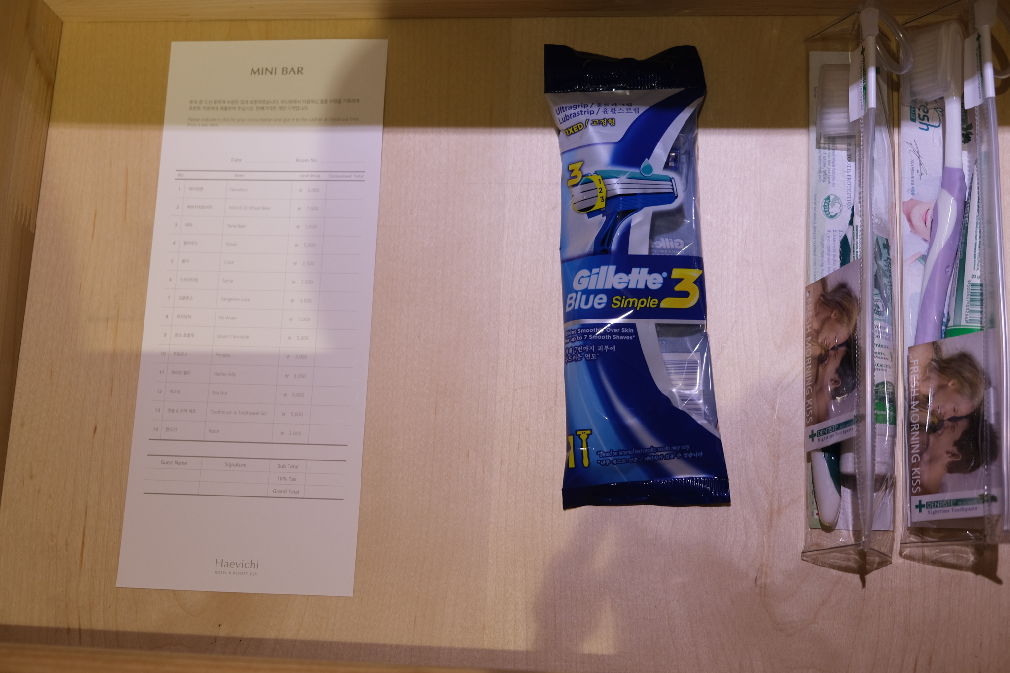 칫솔, 면도기는 미니바에 포함되어 있었다.