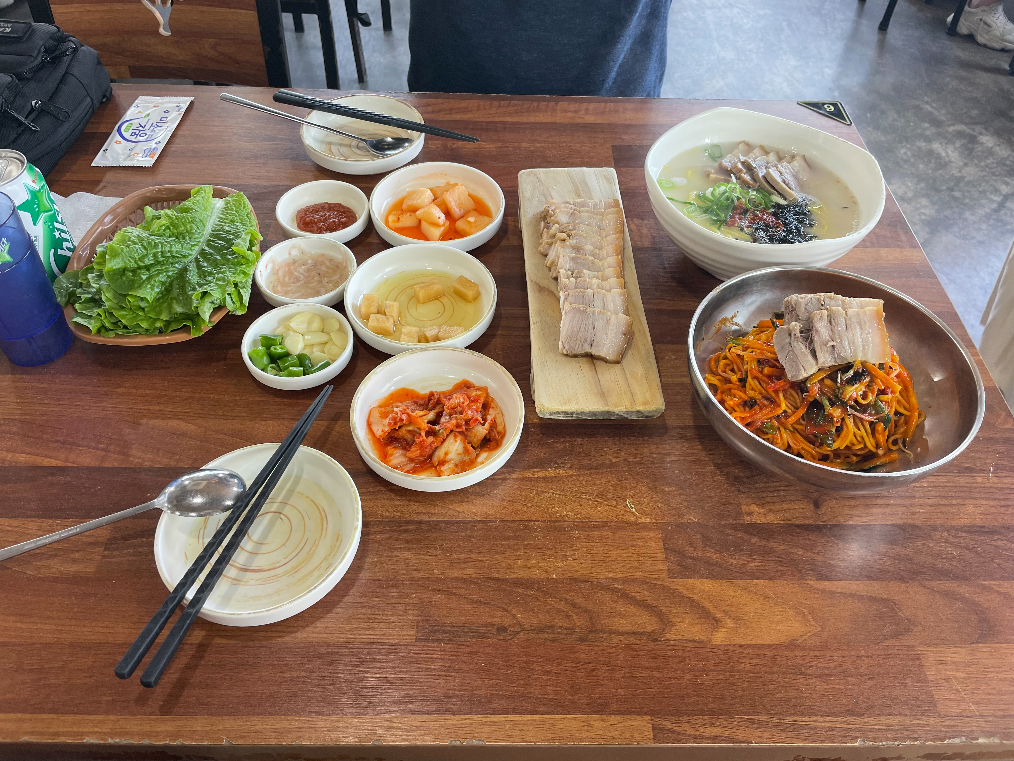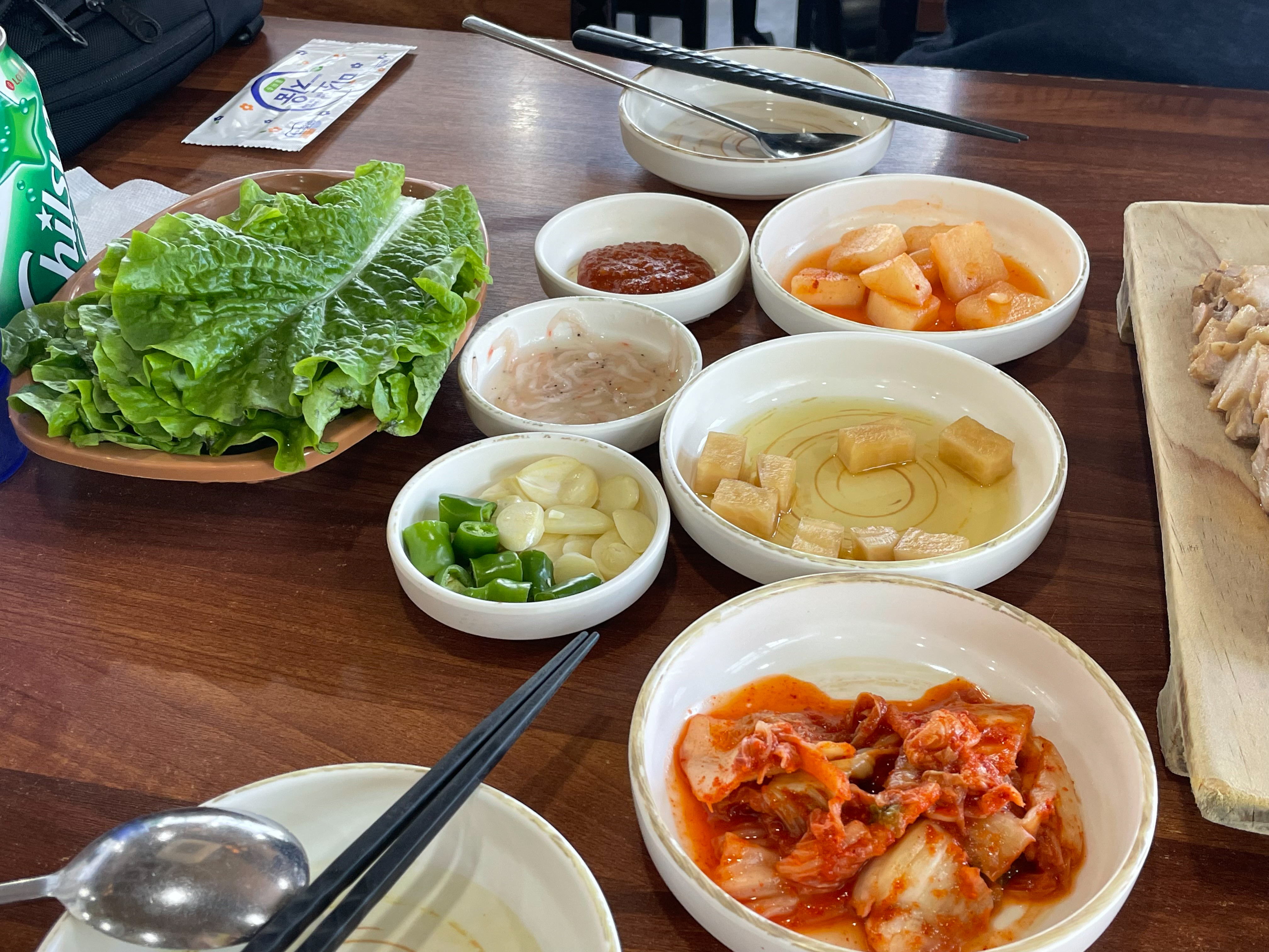 부족한 밑반찬은 더 가져다가 먹을 수 있었는데 야채는 없었다.