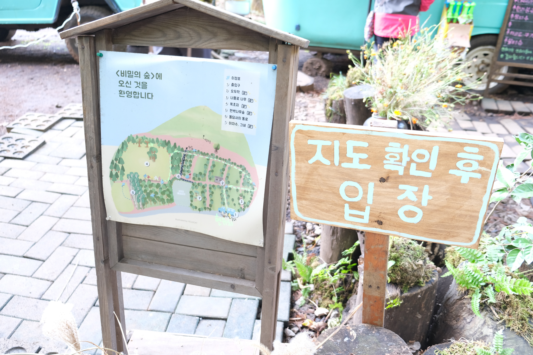 비밀의 숲으로 들어가는 입구 주변에 주차를 하고 들어갔다.