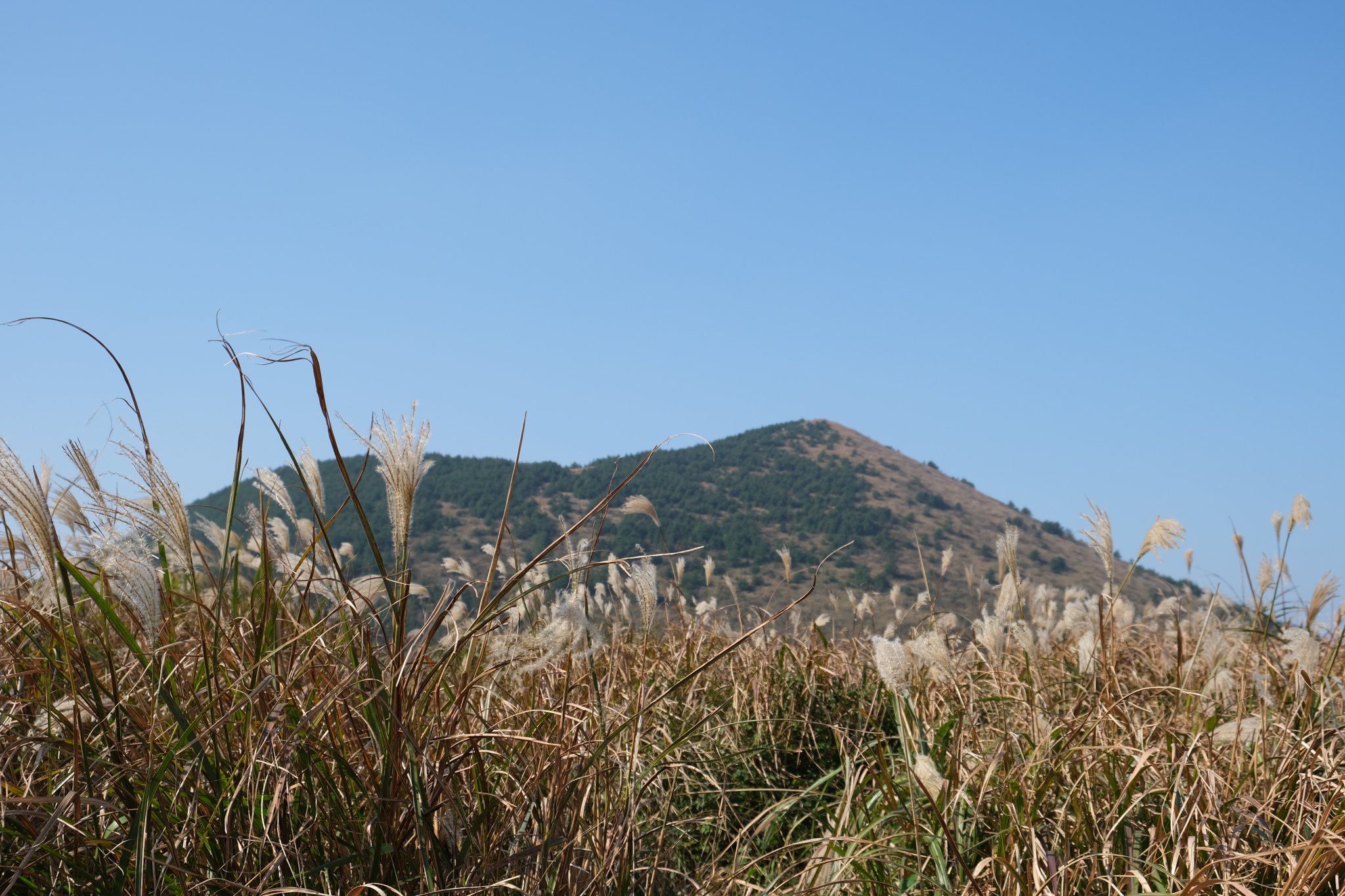 관리되지 않은 억새밭이 오름을 뒤덮고 있었다.