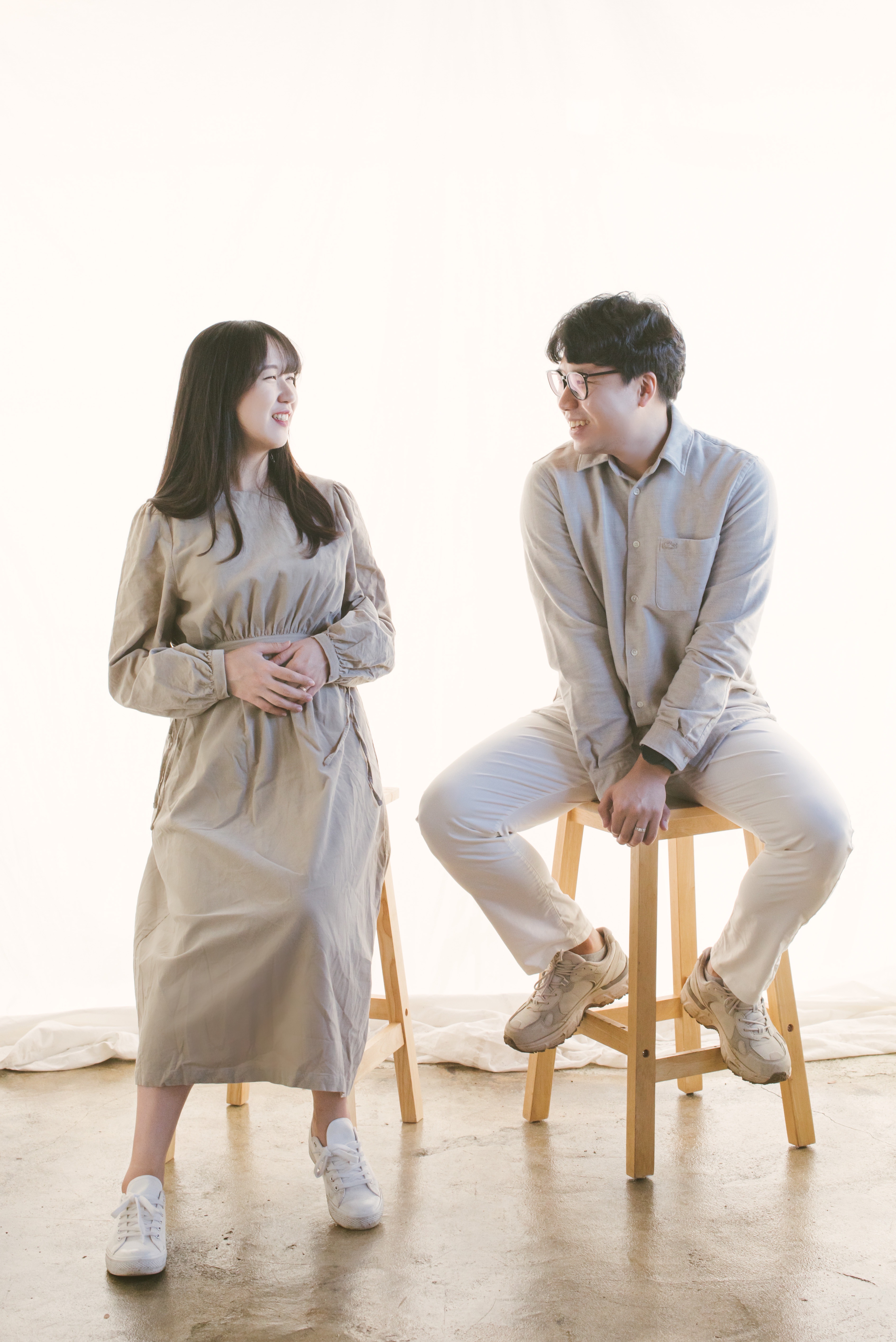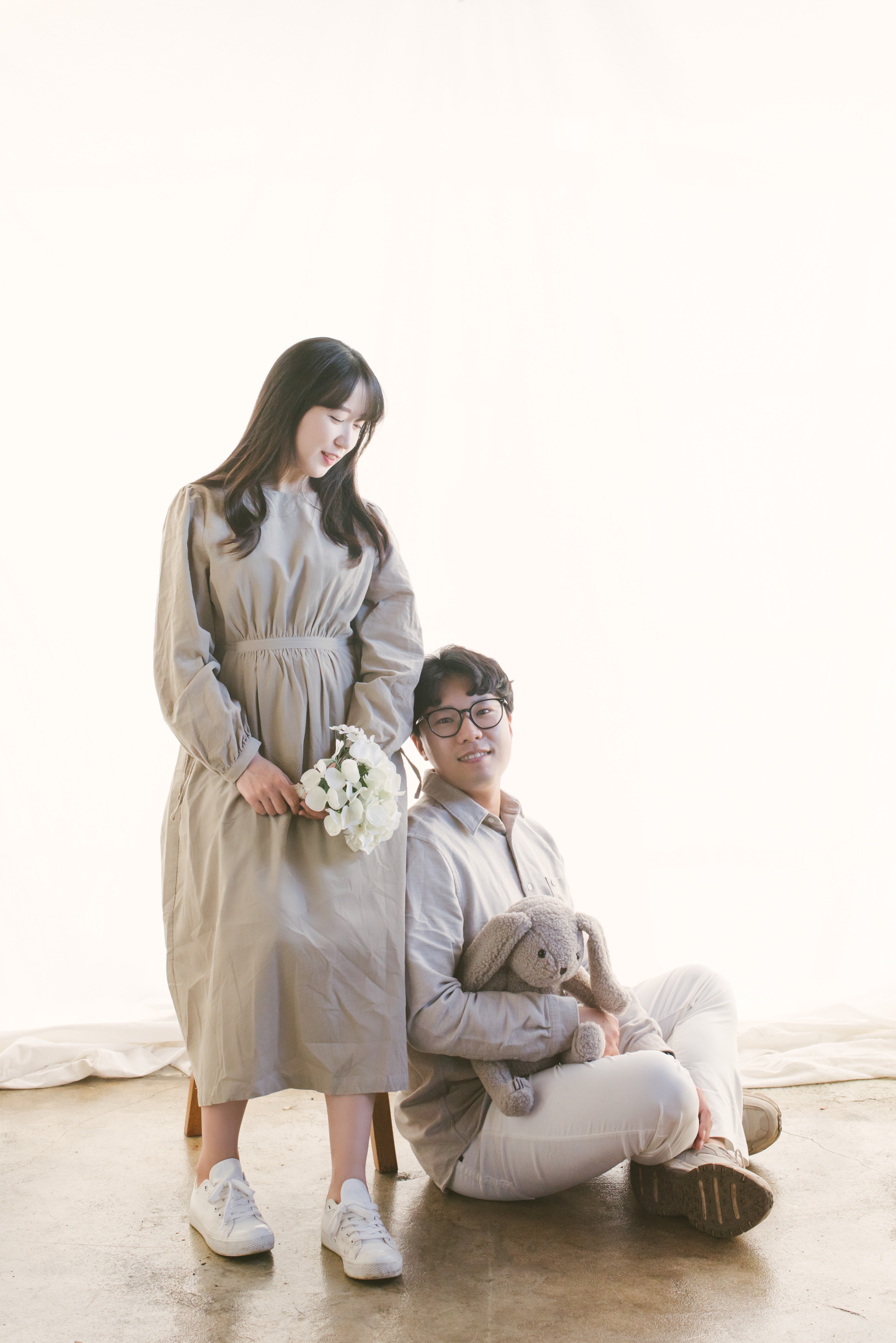야외(사진관 건물을 배경으로 촬영)과 실내(스튜디오 촬영) 중