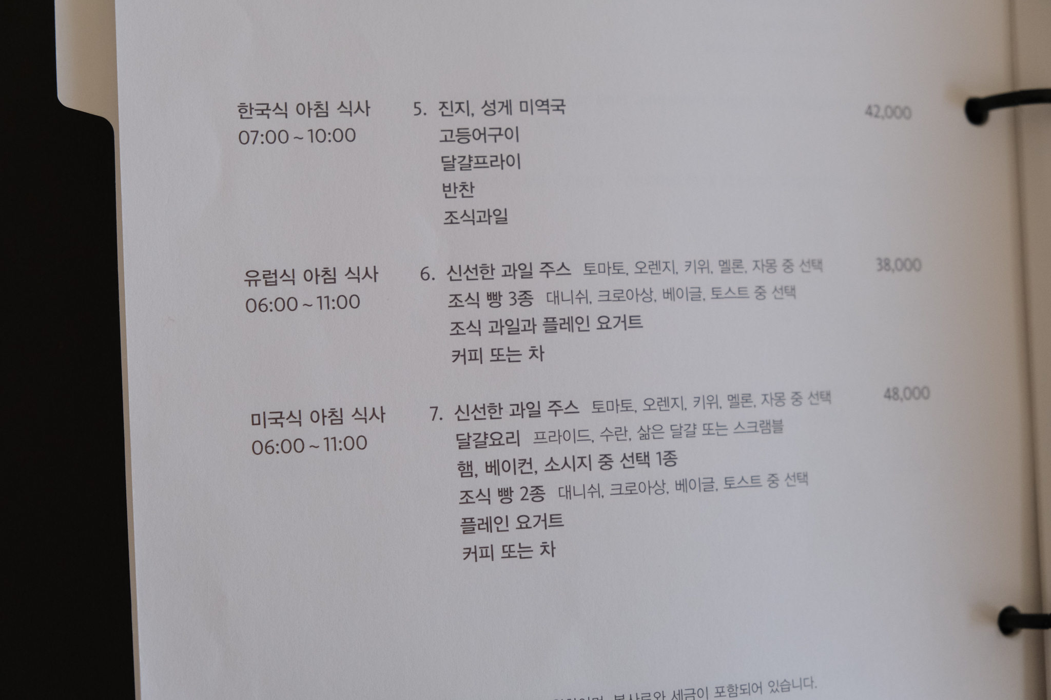 숙박에 포함된 조식을 인룸조식으로 변경할 수 있었다.