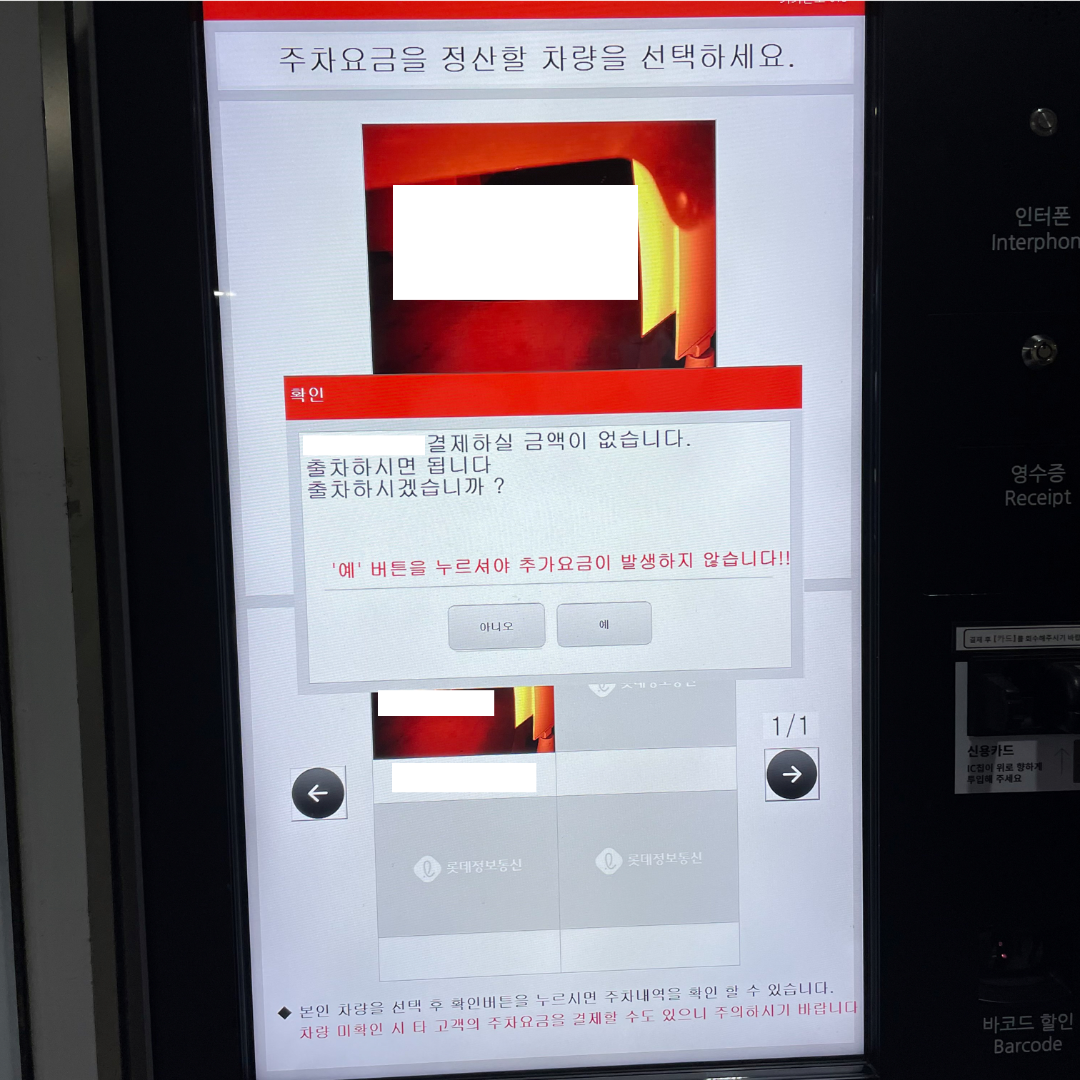 체크아웃시에도 다시 주차 정산이 되었는지 확인했다.