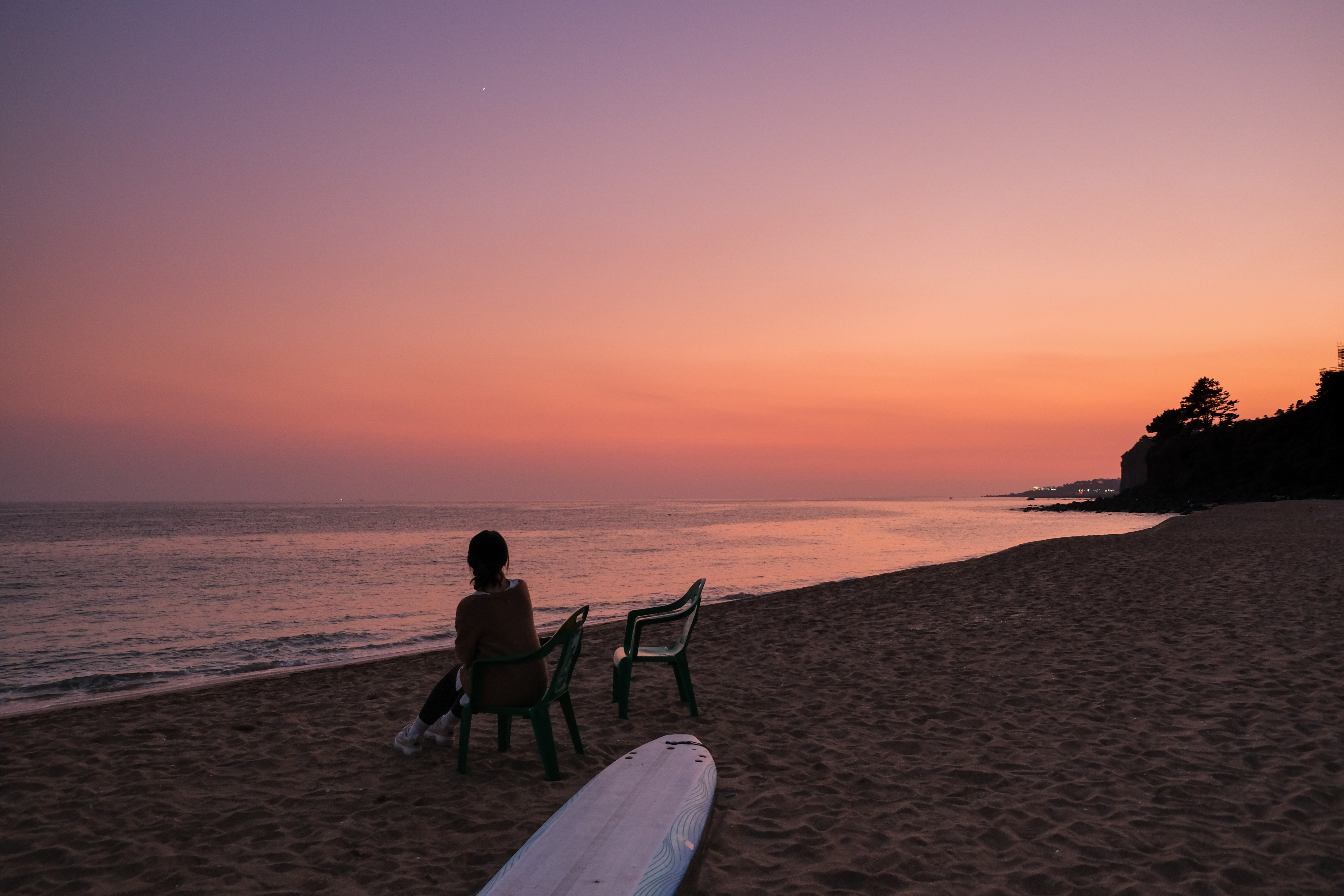 수영 끝내고 노을보러 해수욕장으로 향했다.