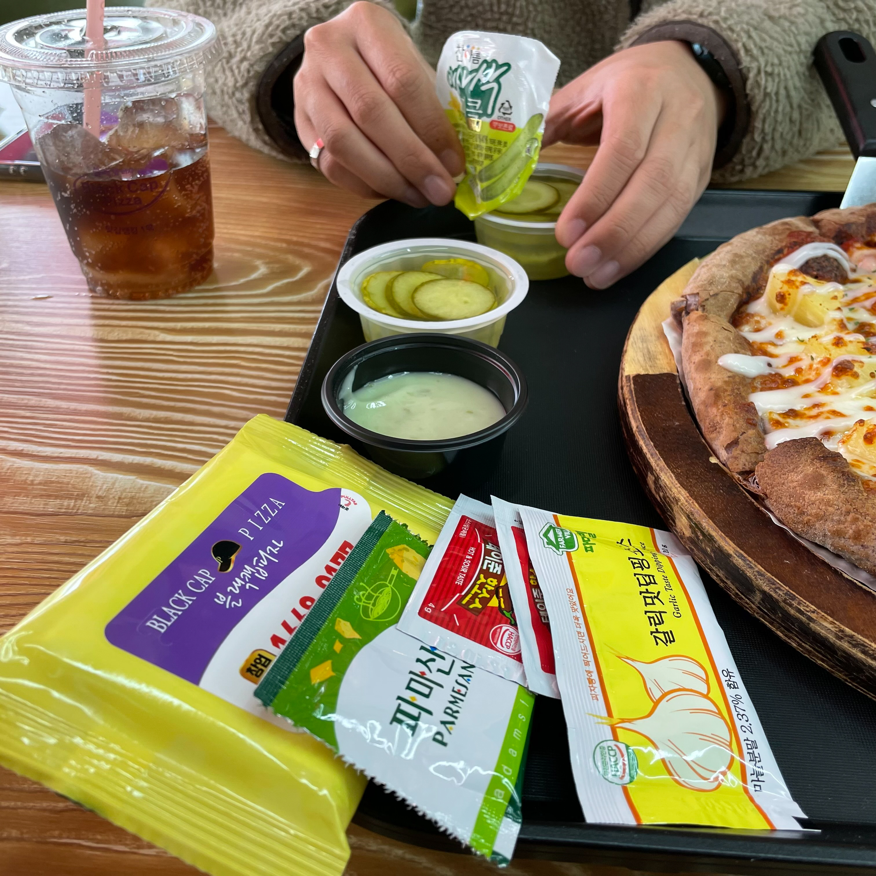 기본적으로 디핑소스, 피클, 핫소스, 파마산 치즈소스 등등이 제공됐다.