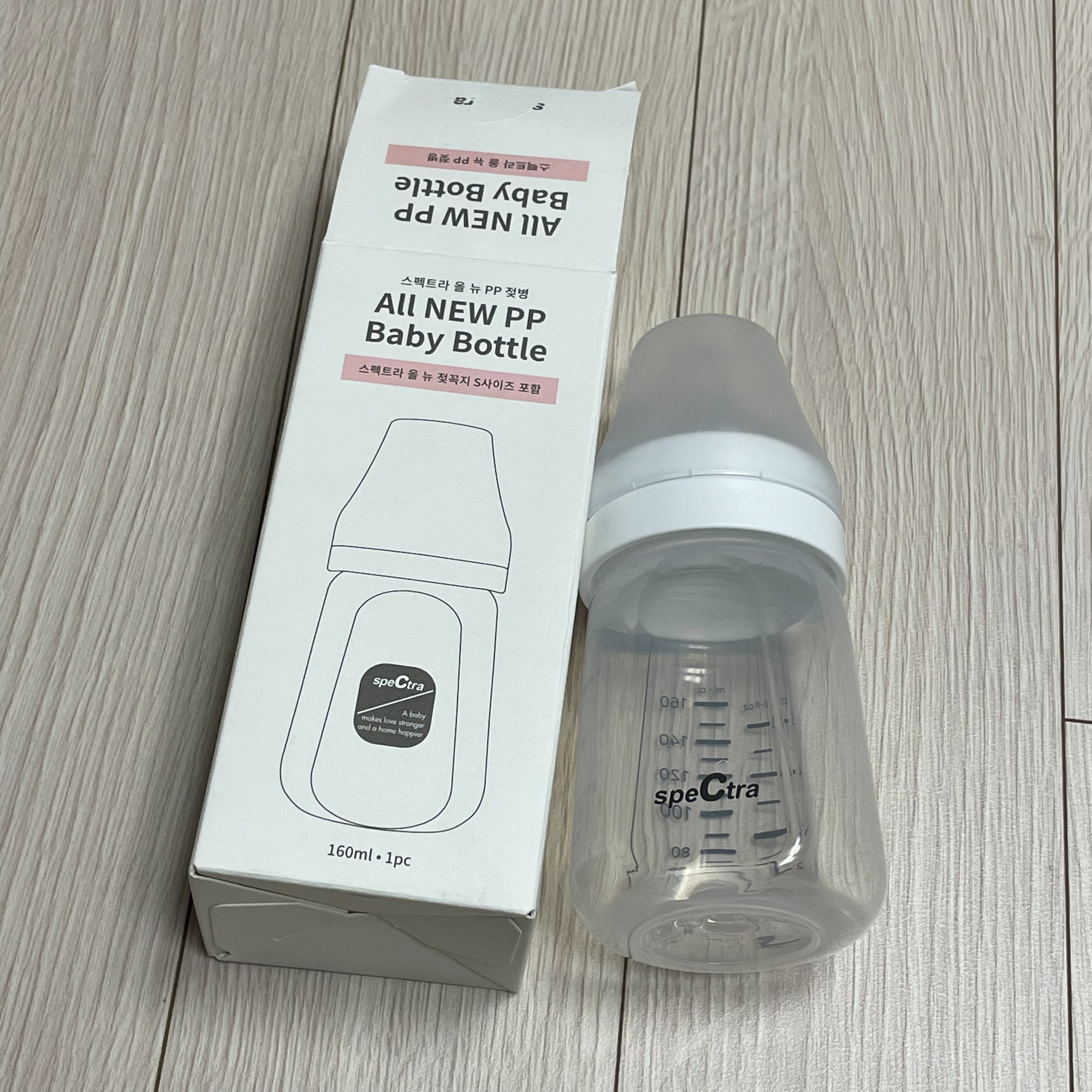 스펙트라 올뉴 PP젖병 160ml가 젖꼭지와 함께 제공되었다!