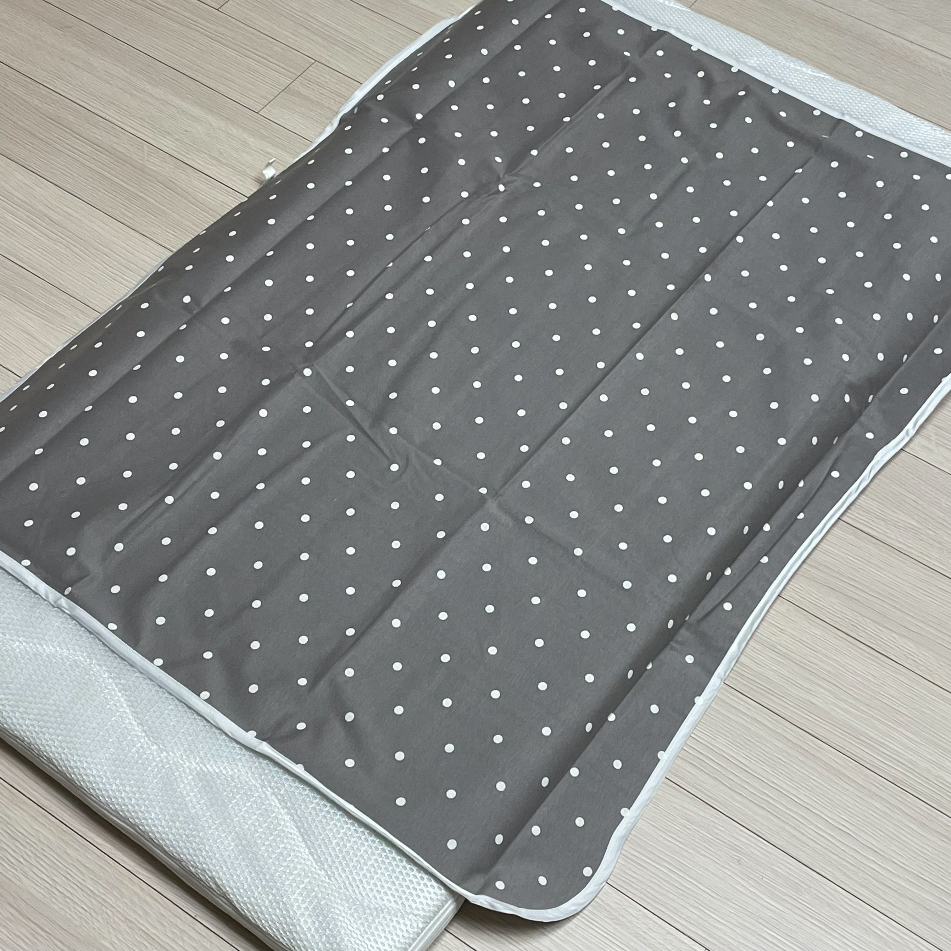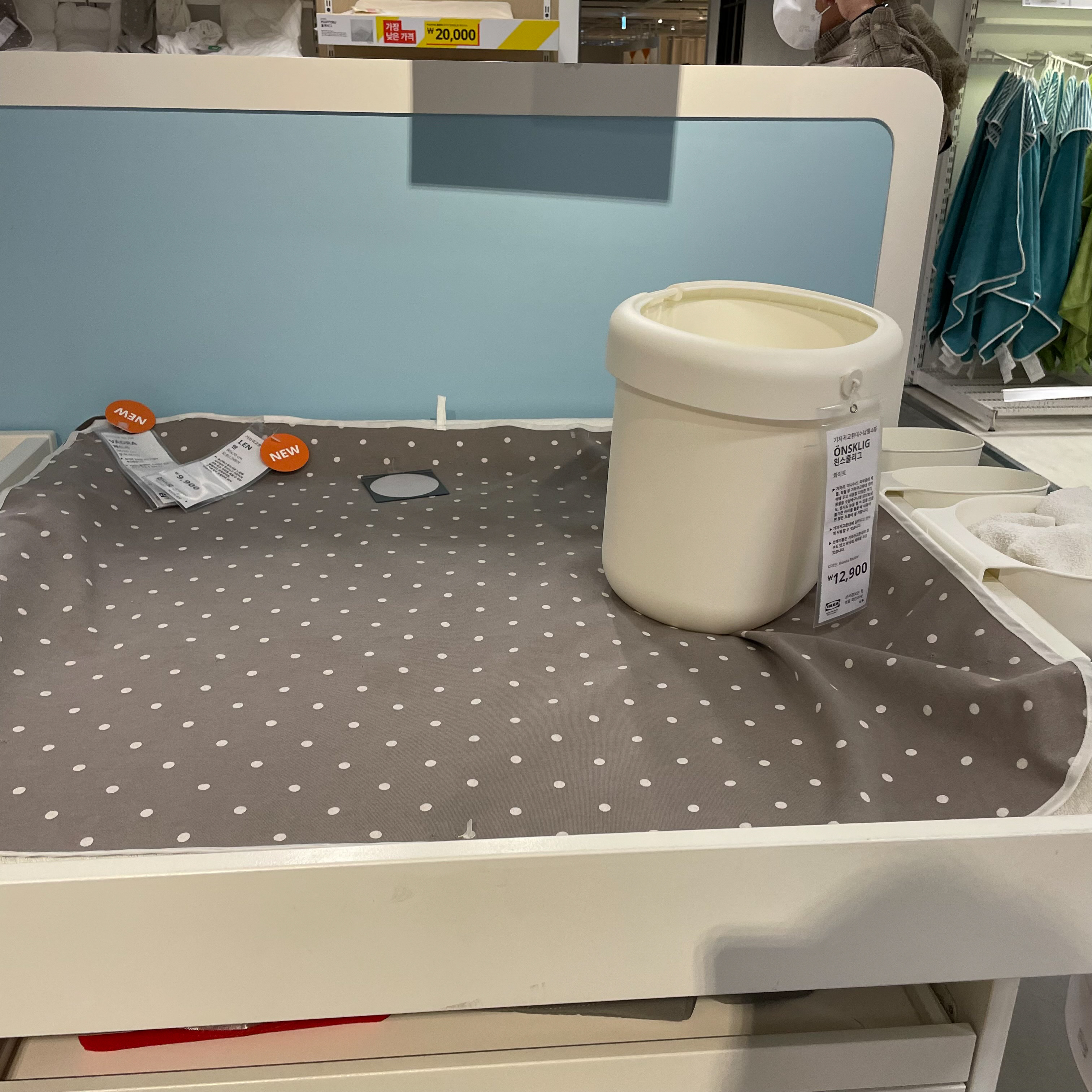기저귀 갈이대 위에 올려서 사이즈를 봤다.