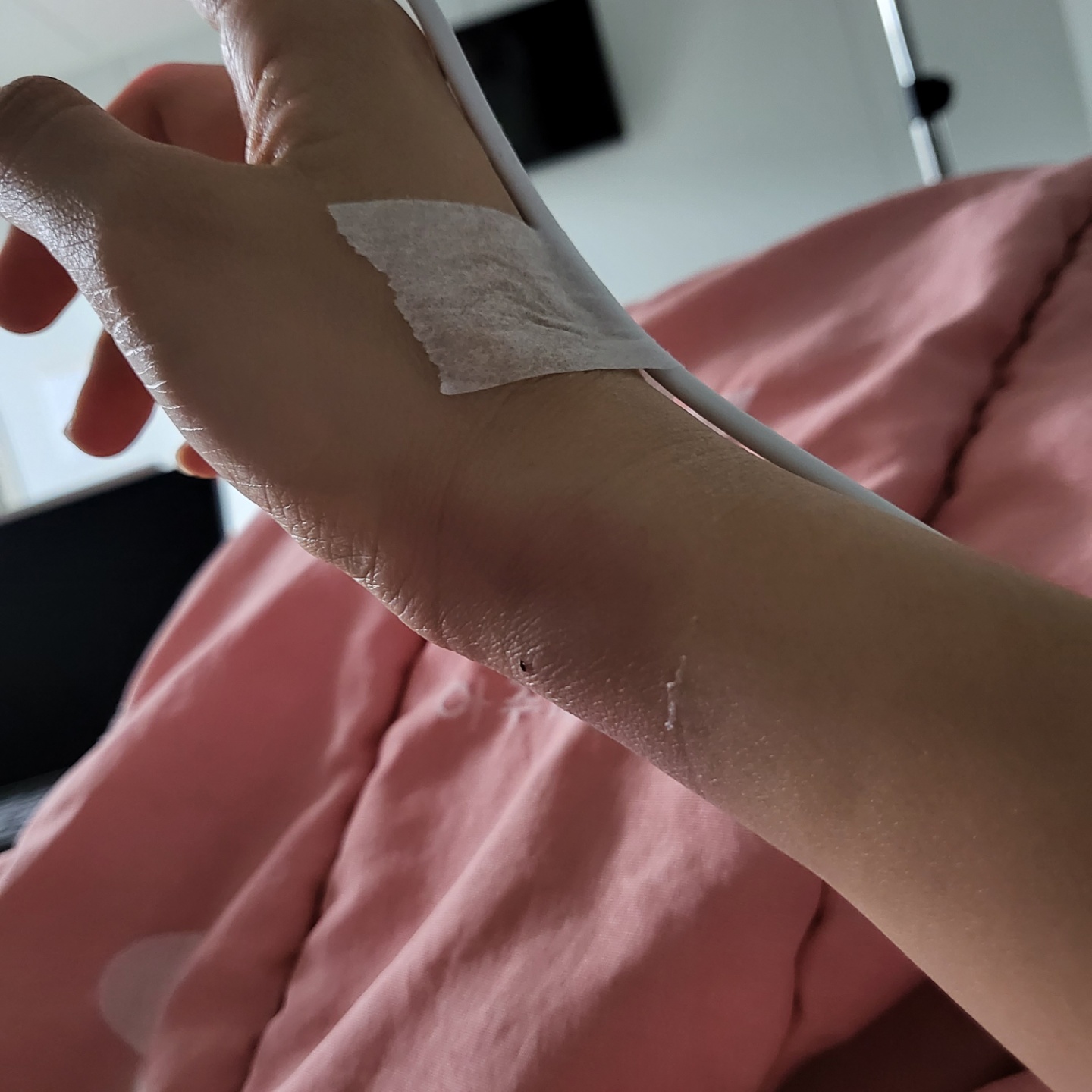 피를 무자비하게 뽑혔다... 왼쪽팔에서 한번, 오른쪽팔에서 동맥에서 뽑히고 얇은 바늘로 한번 더 뽑아야한다고 또 뽑고.. 소변검사도 하고 심박동과 산소포화도 검사기기?를 몸에 장착했고 링거꽂고 누웠다.