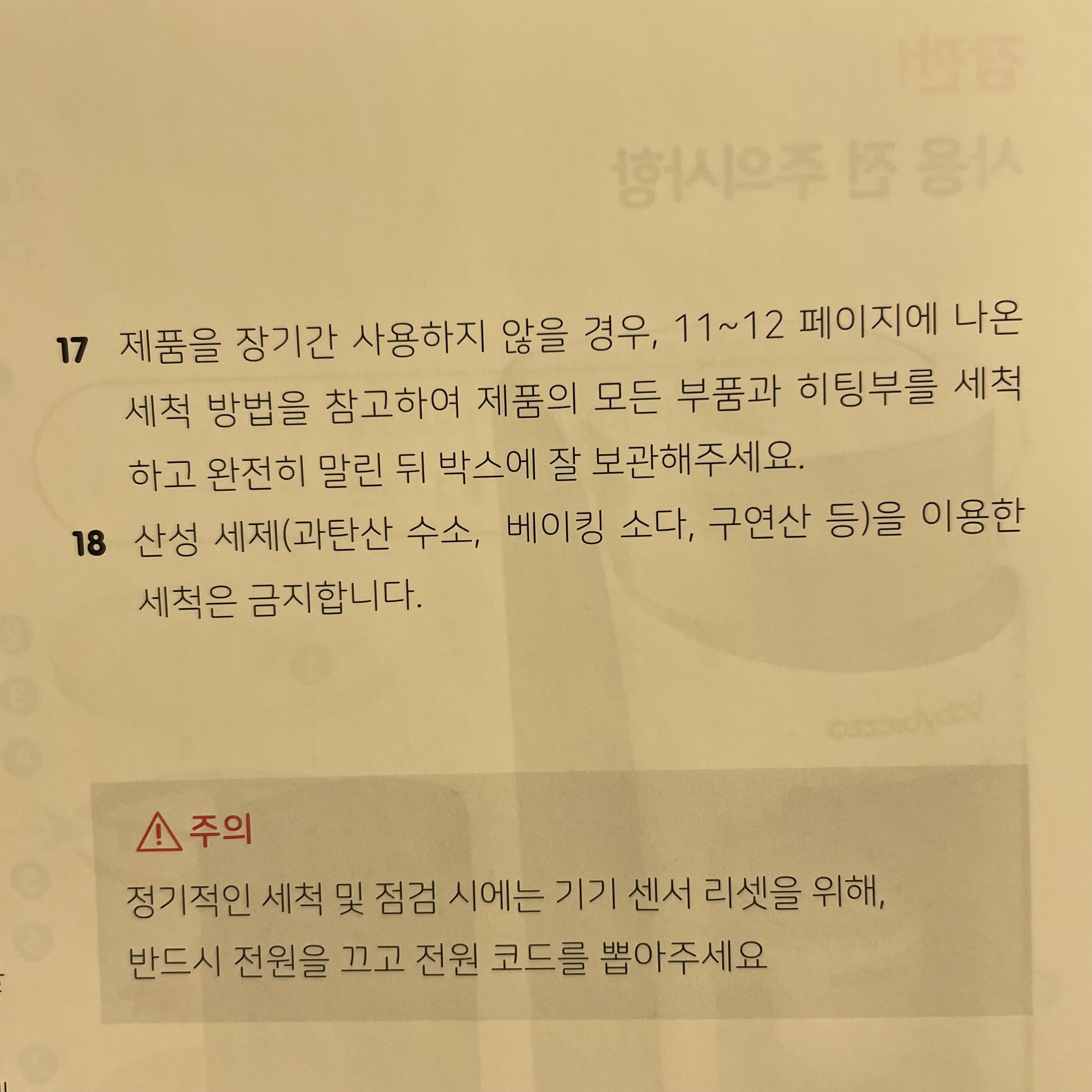 장기간 사용하지 않을 경우의 세척 방법도 나와있어서 좋았다.