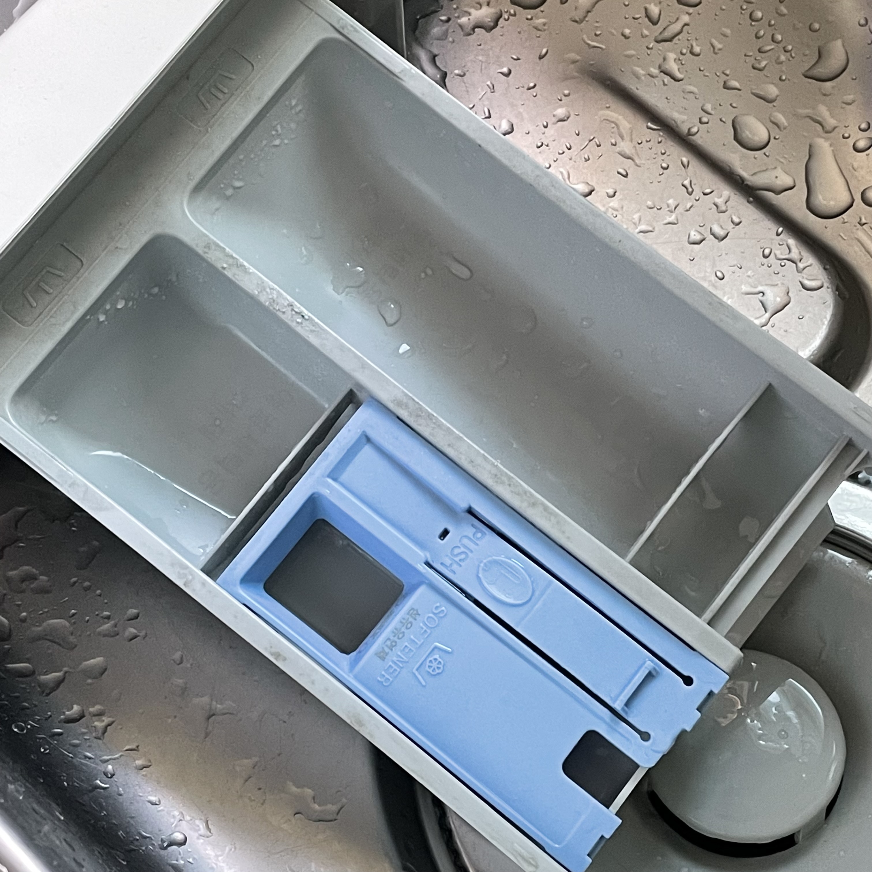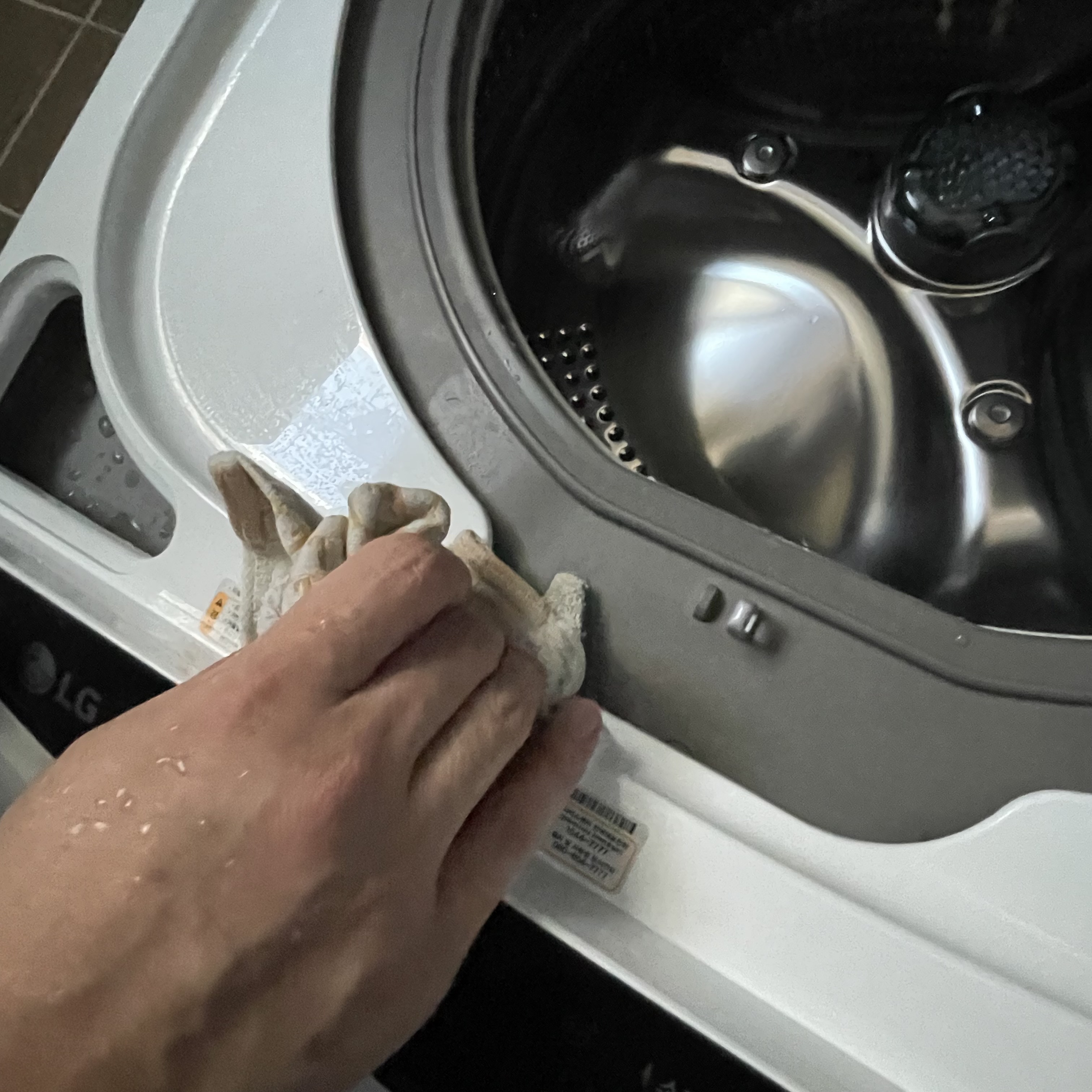 세제통을 뺸 부분도 물티슈로 한번 닦아냈다.