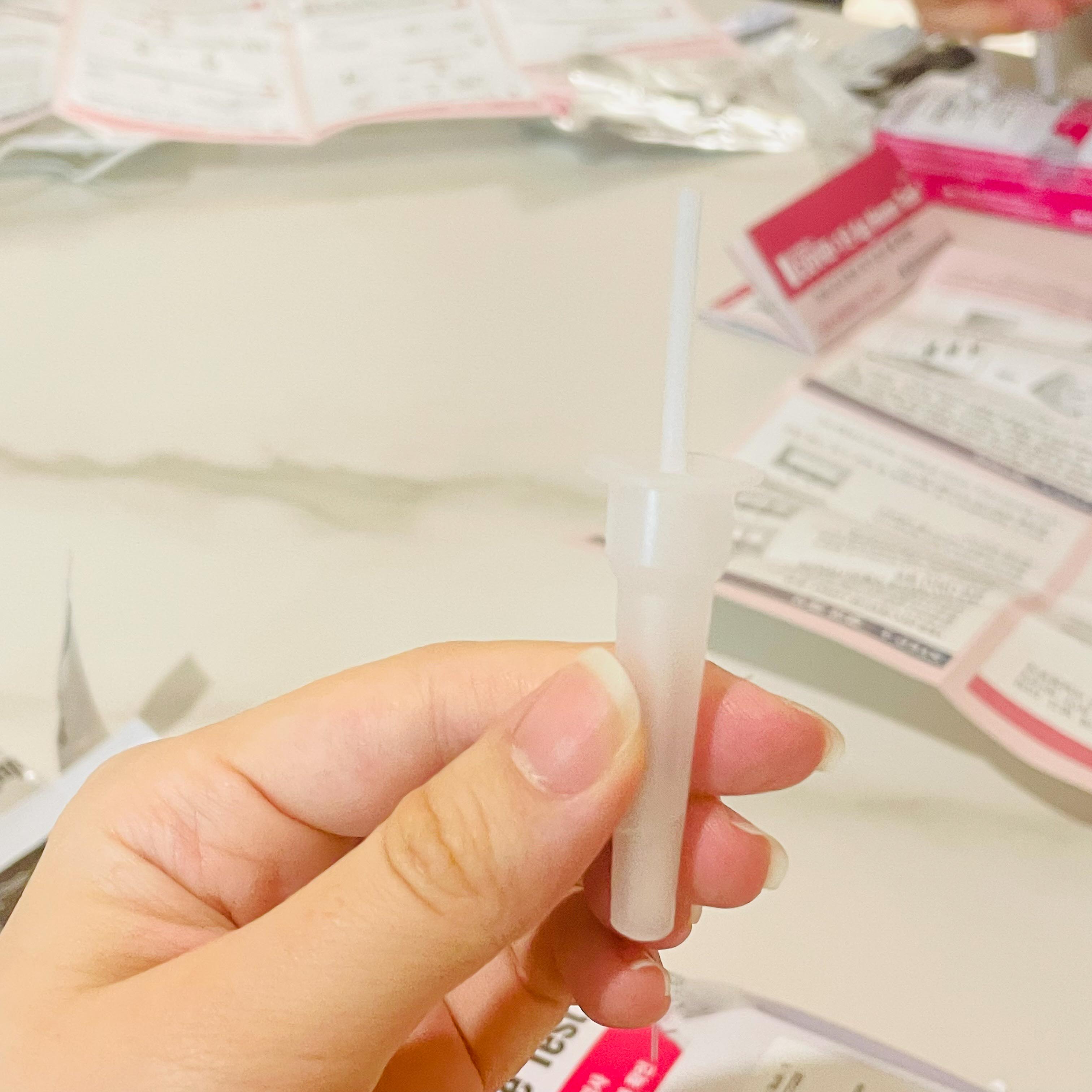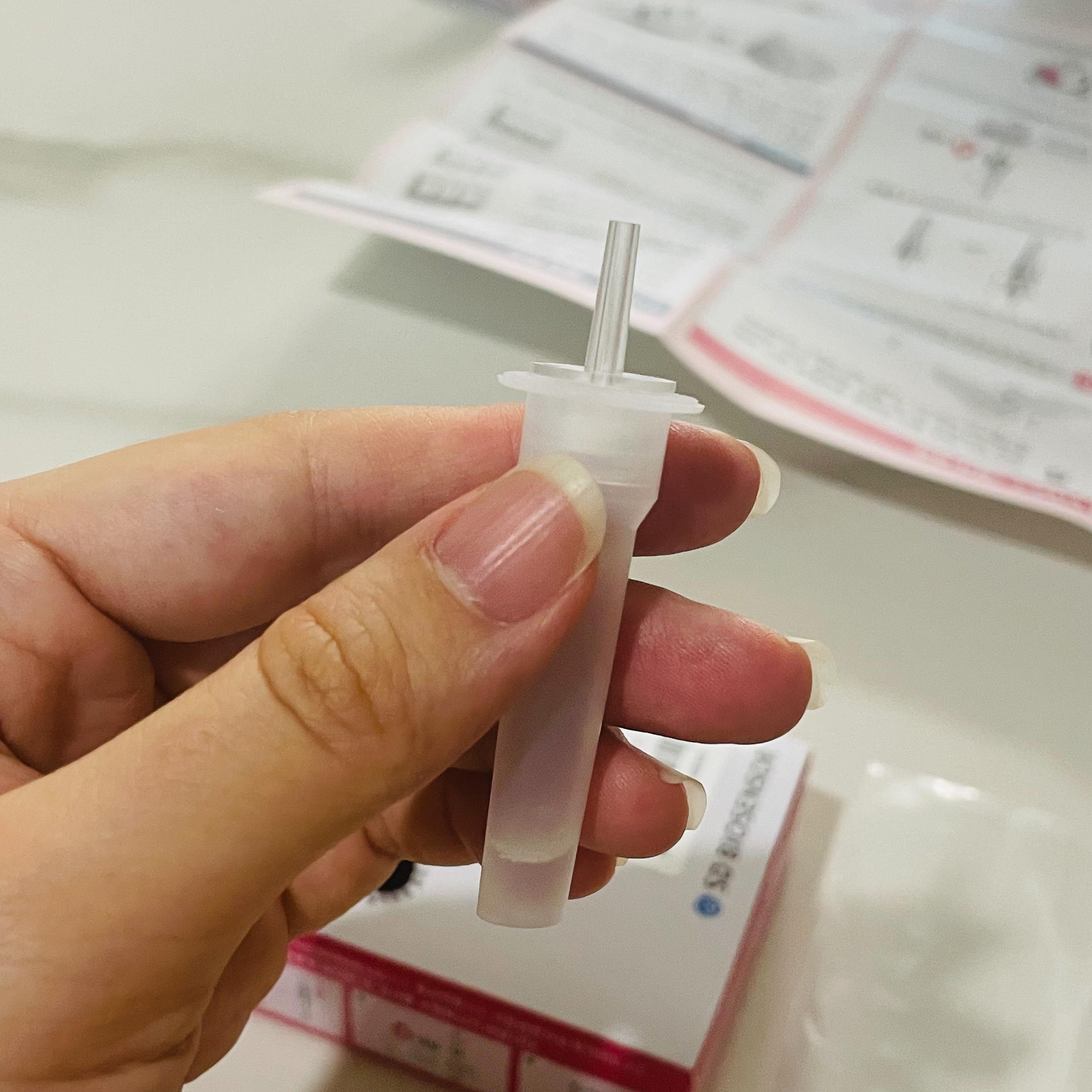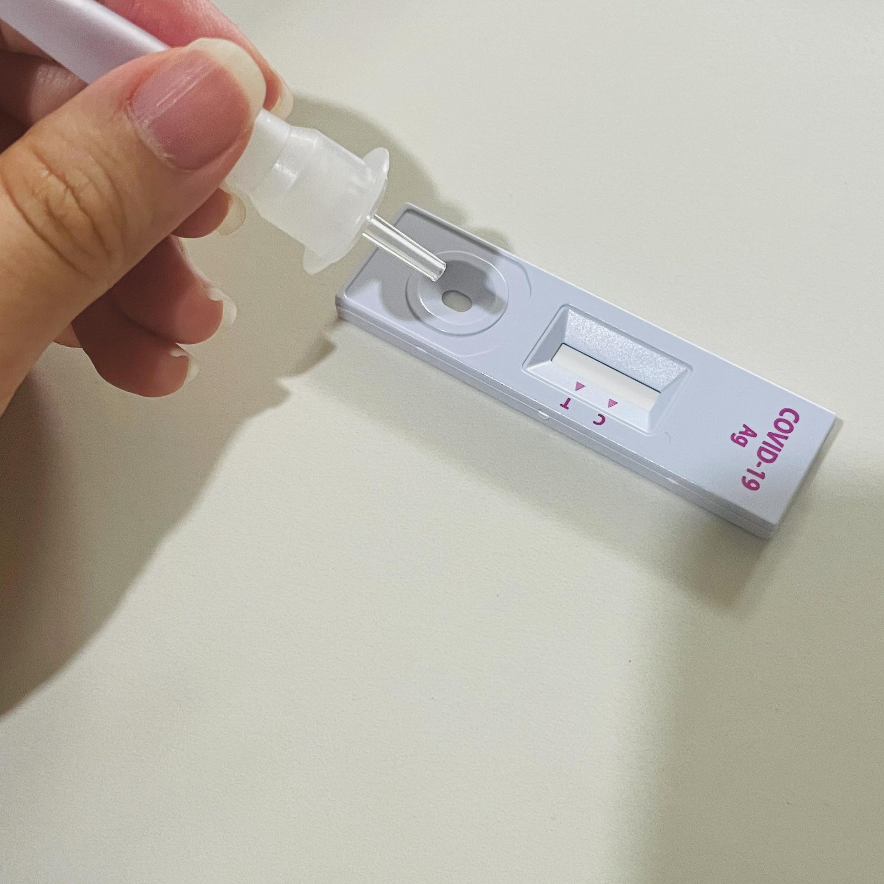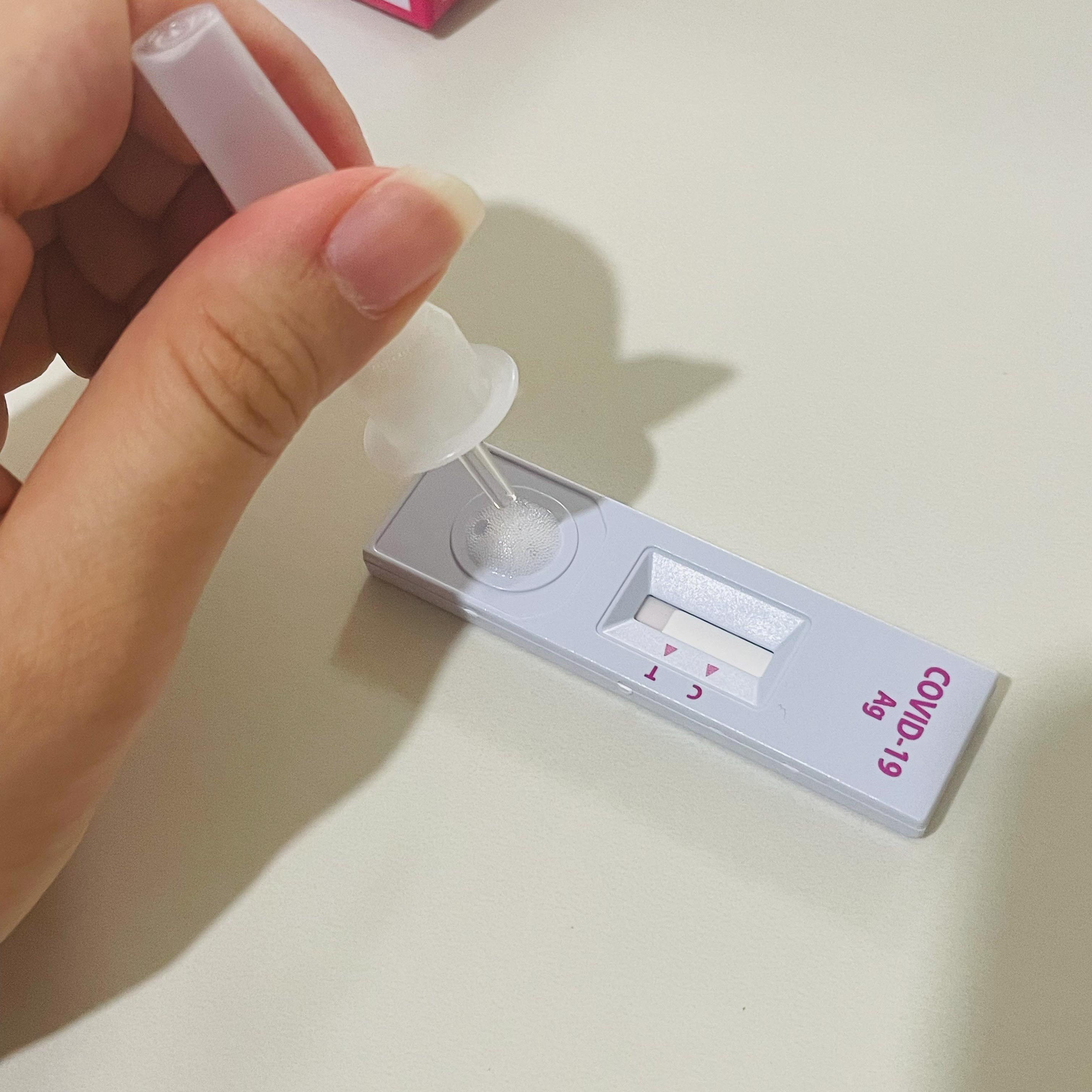 검사키트에 용액을 쭉 짰다.