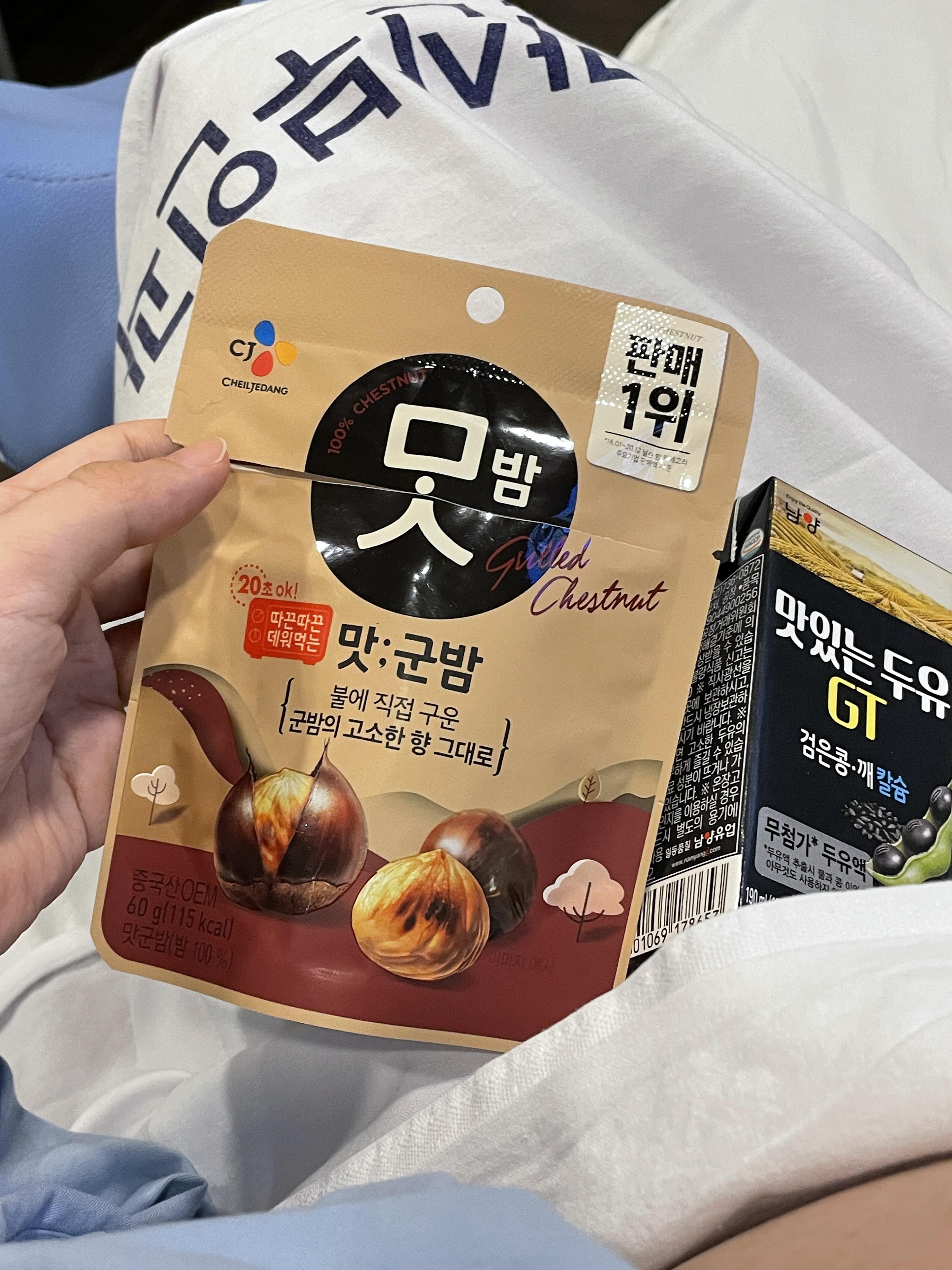 맛밤과 두유를 꺼내먹었다.