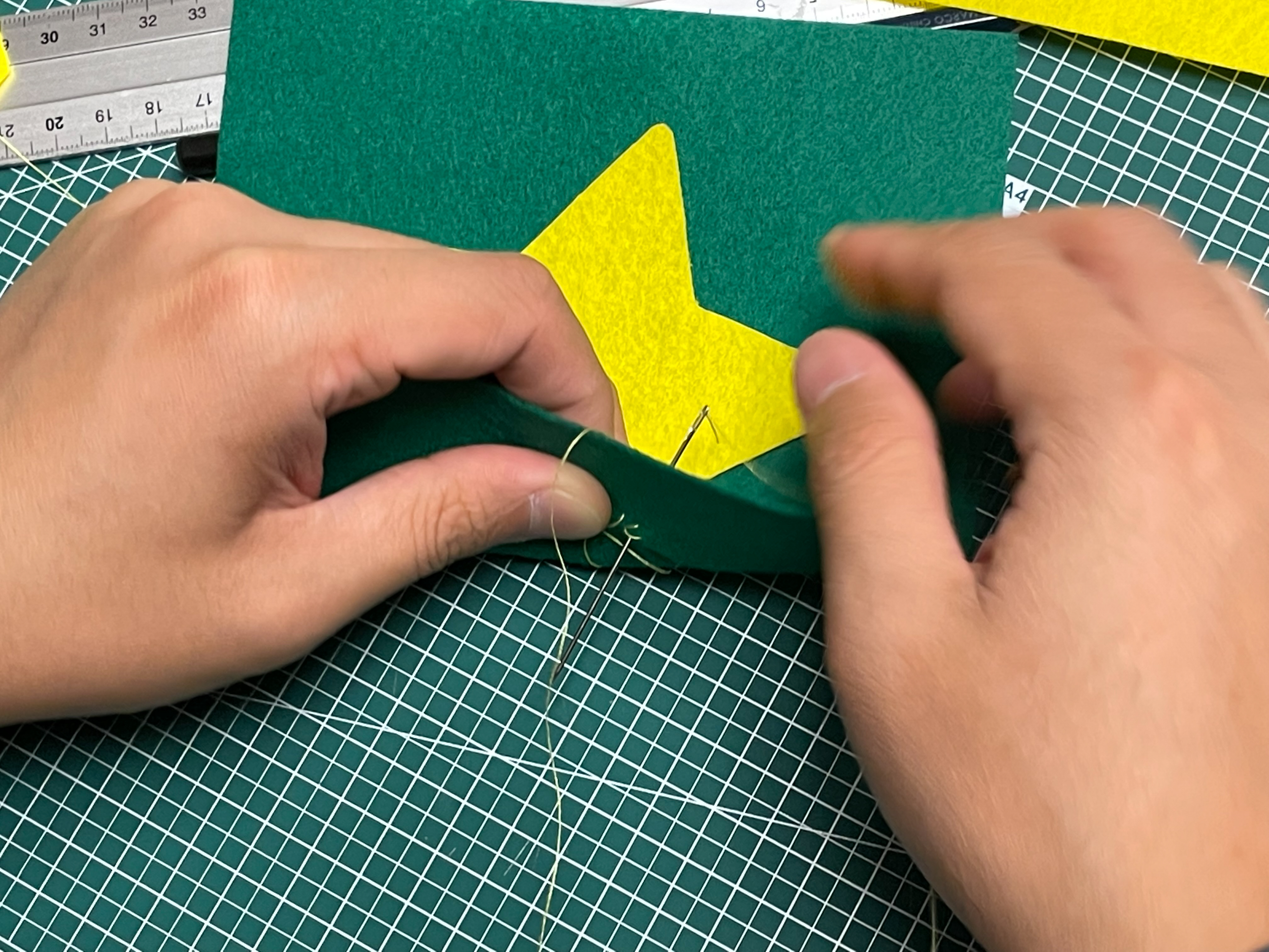 아플리케 바느질 기법을 사용했다.