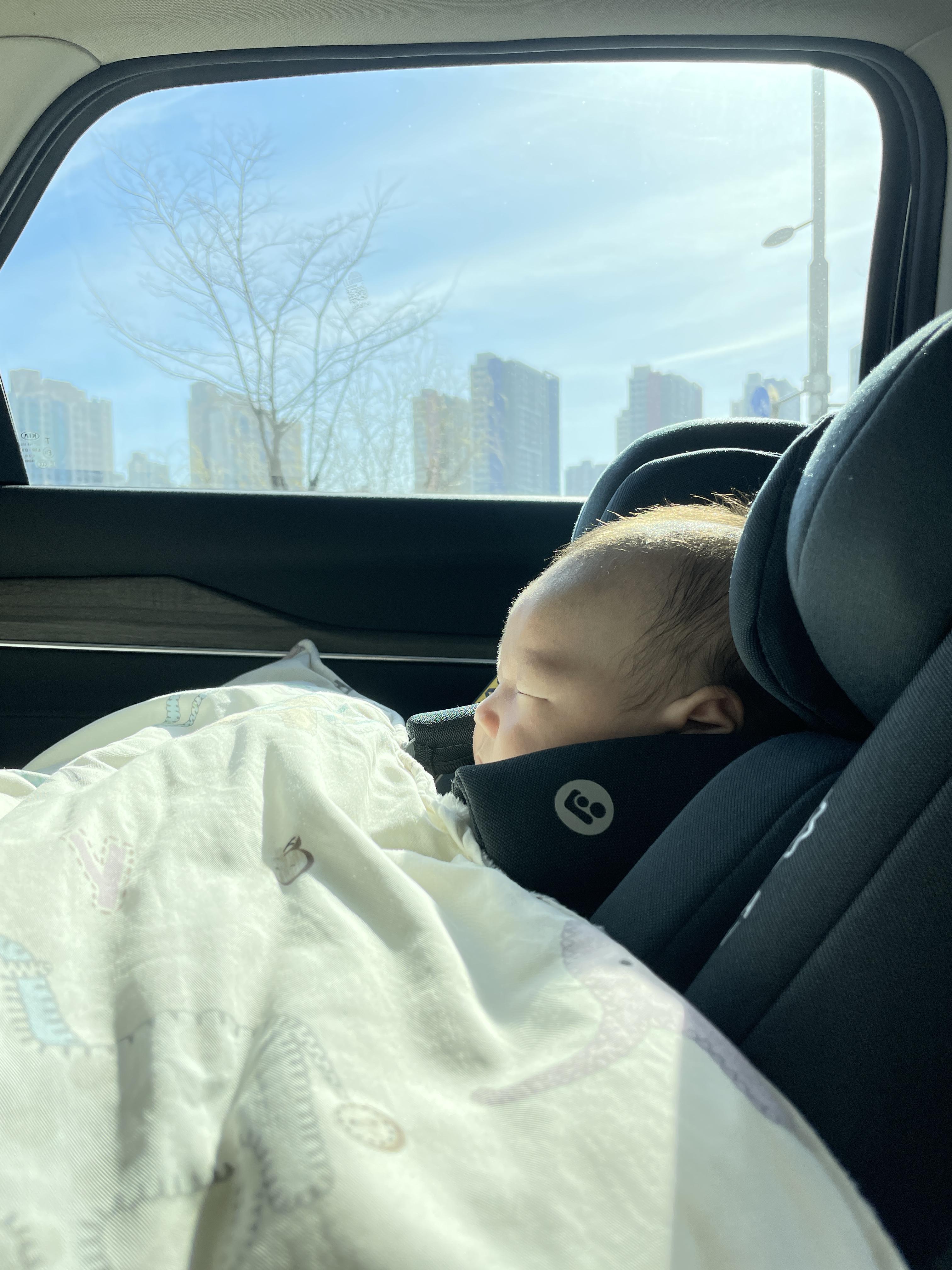 걸어가지 않고 카시트에 태워가기로 결정했었다.