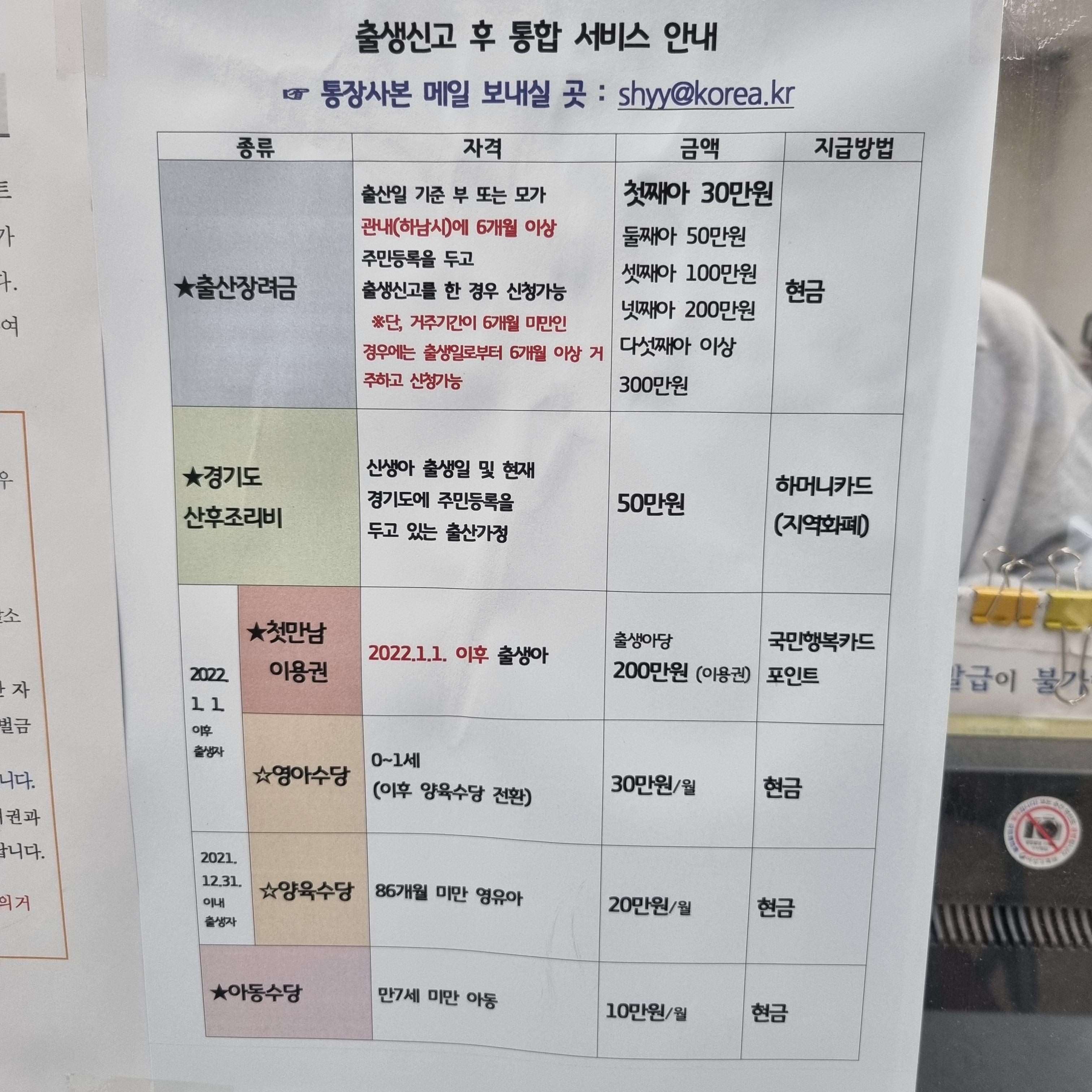 경기도 산후조리비는 따로 하머니 카드를 보여주거나