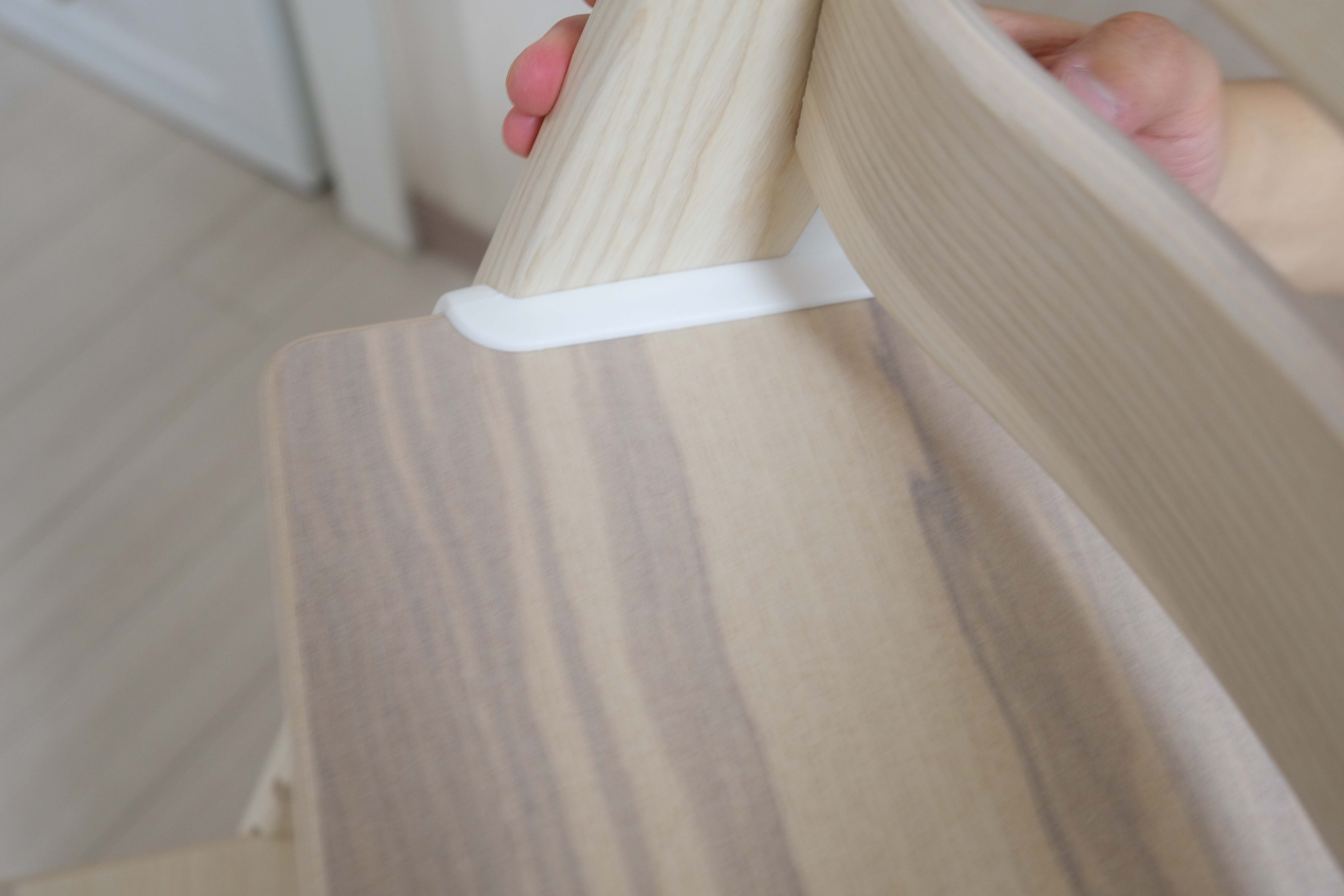 애기가 앉는 판때기를 뼈대에 끼울때는