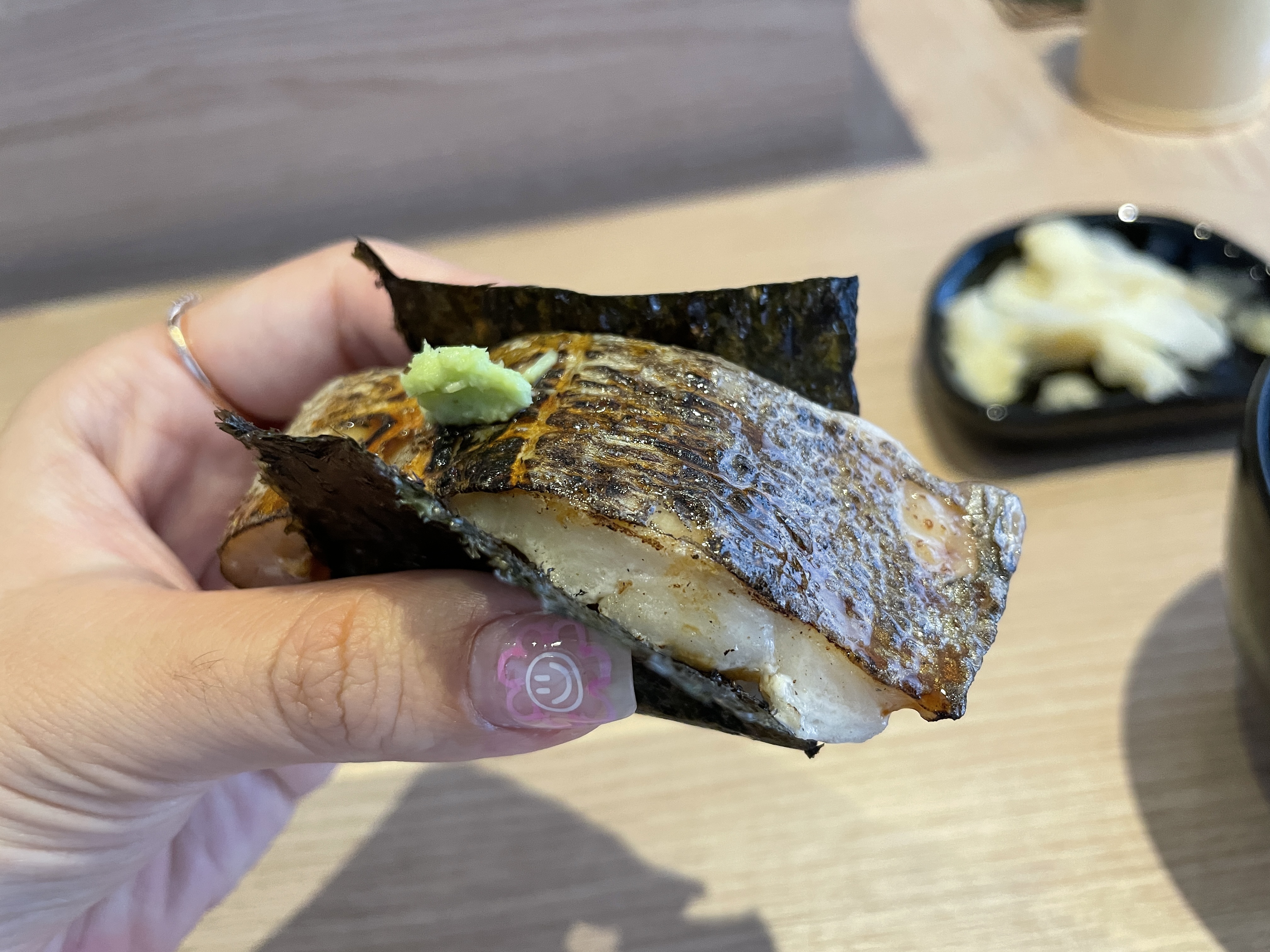 와사비 듬뿍듬뿍 발라서 먹었다.