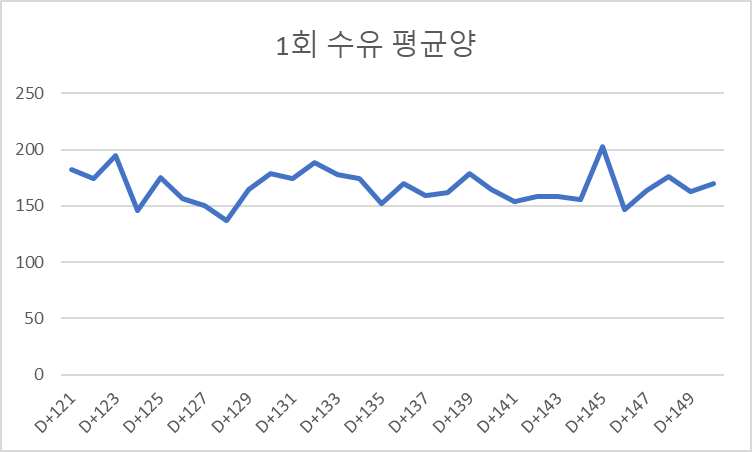 1회 수유양 평균은 167ml로