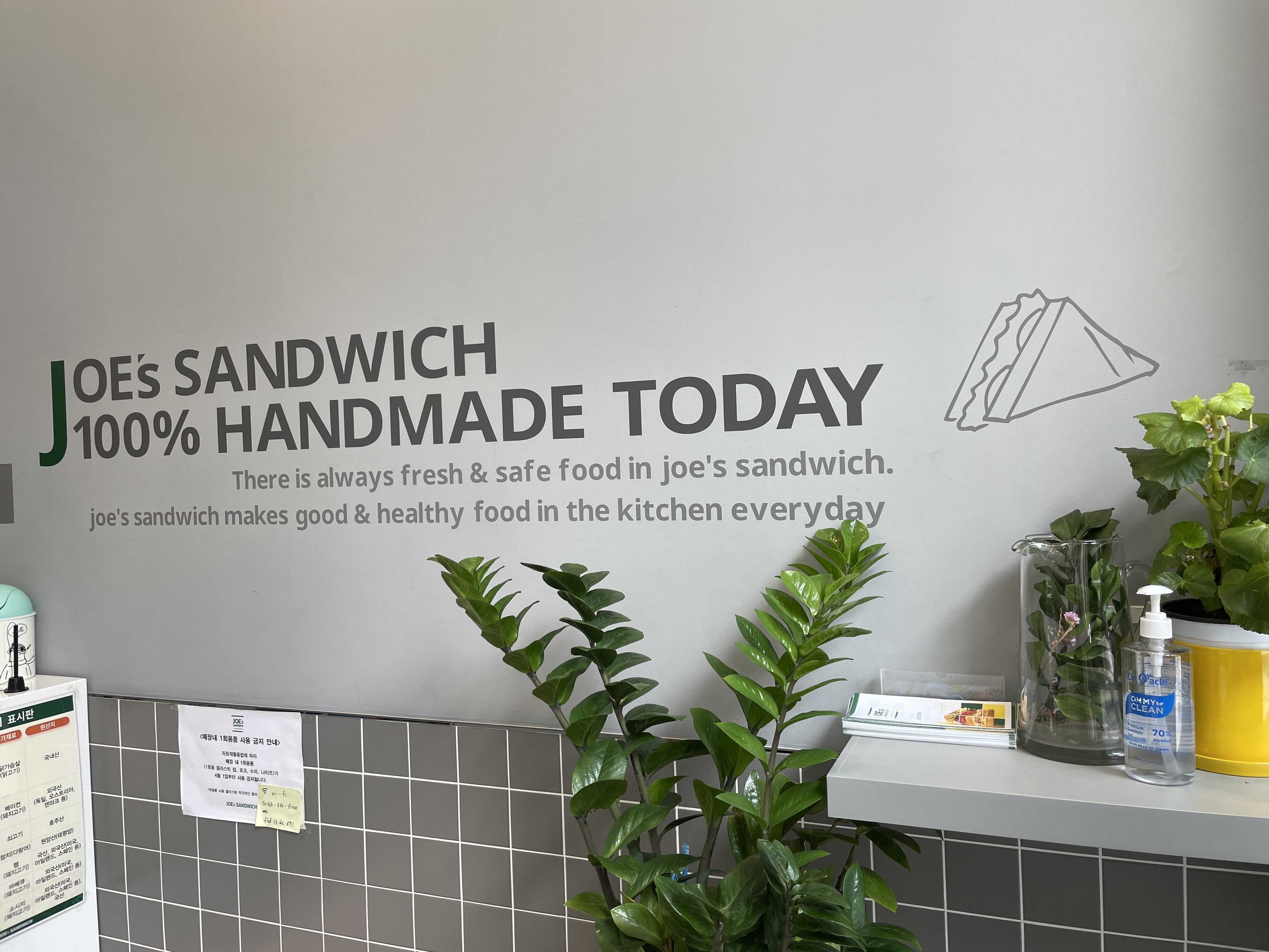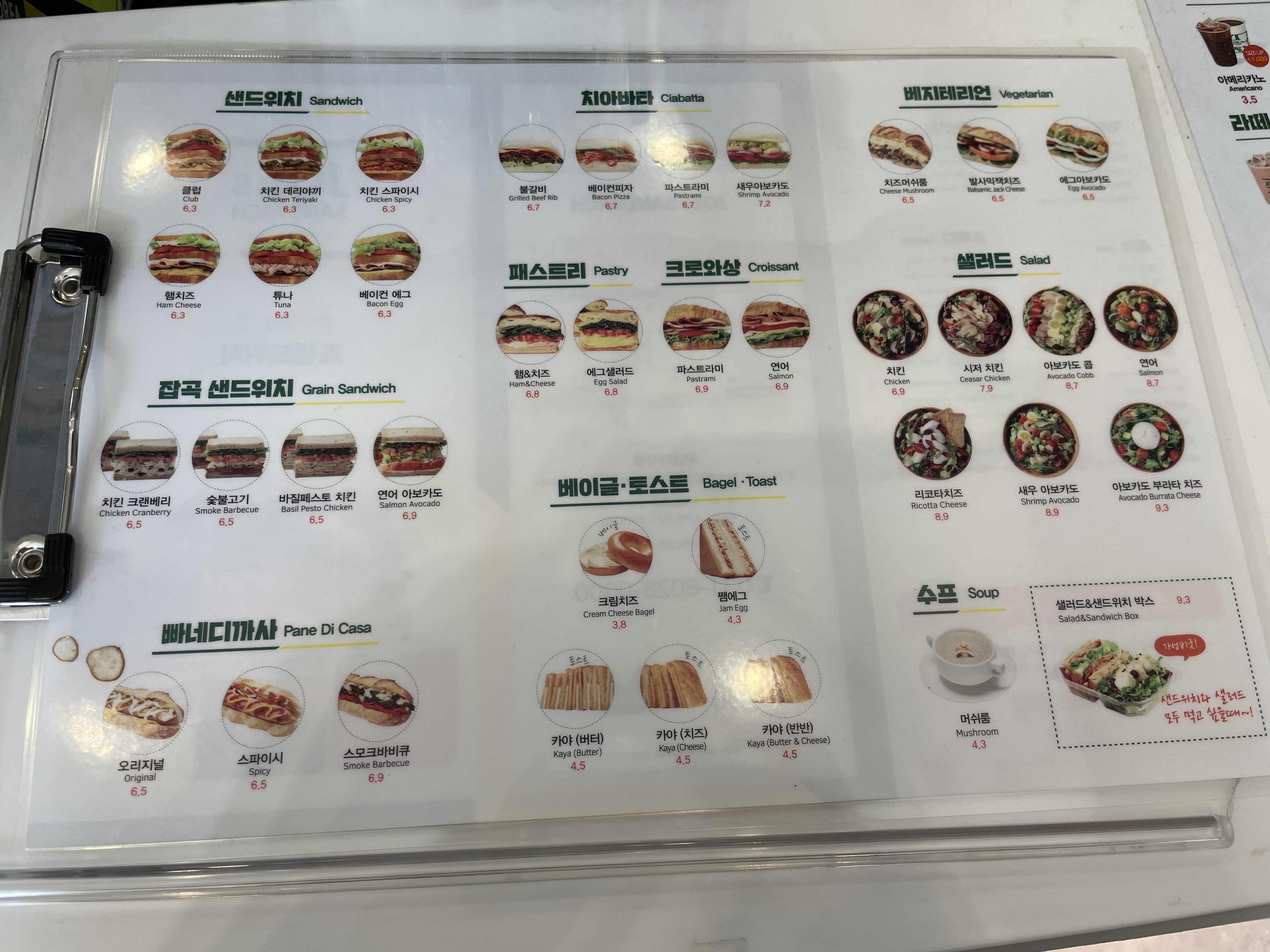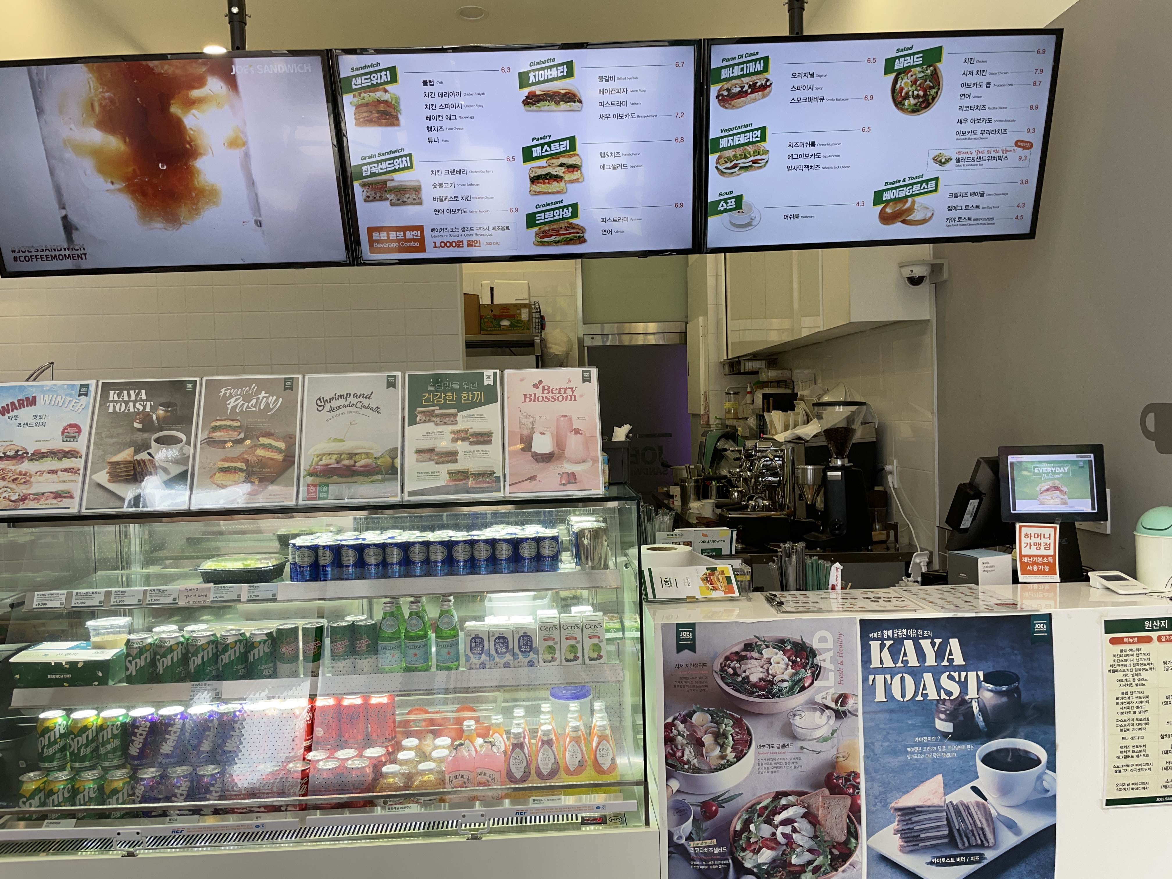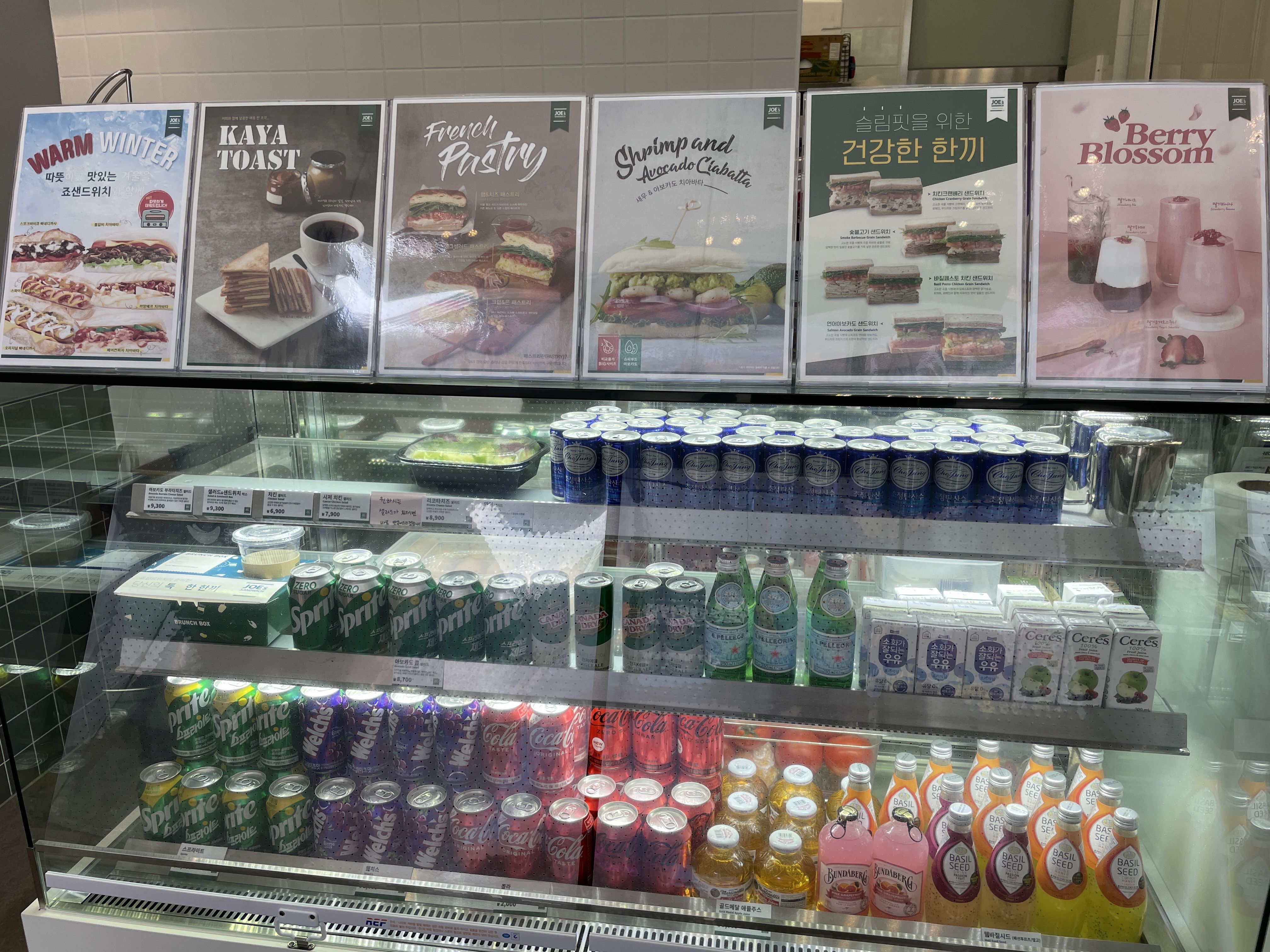 맛있어보이는 샌드위치와 샐러드를 판매하고 있었다.