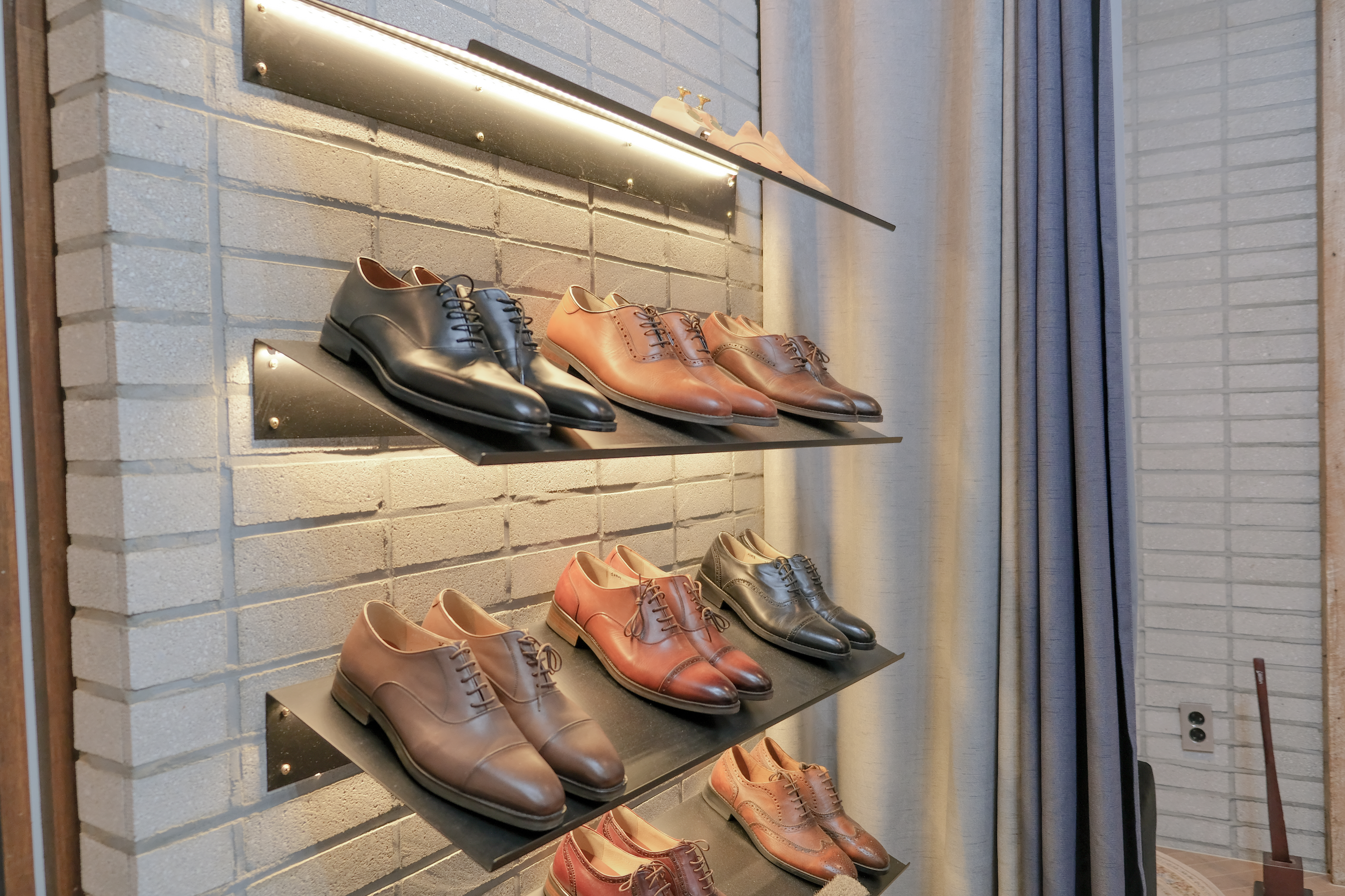 카페 테사스 석과 남성복 전시된 것을