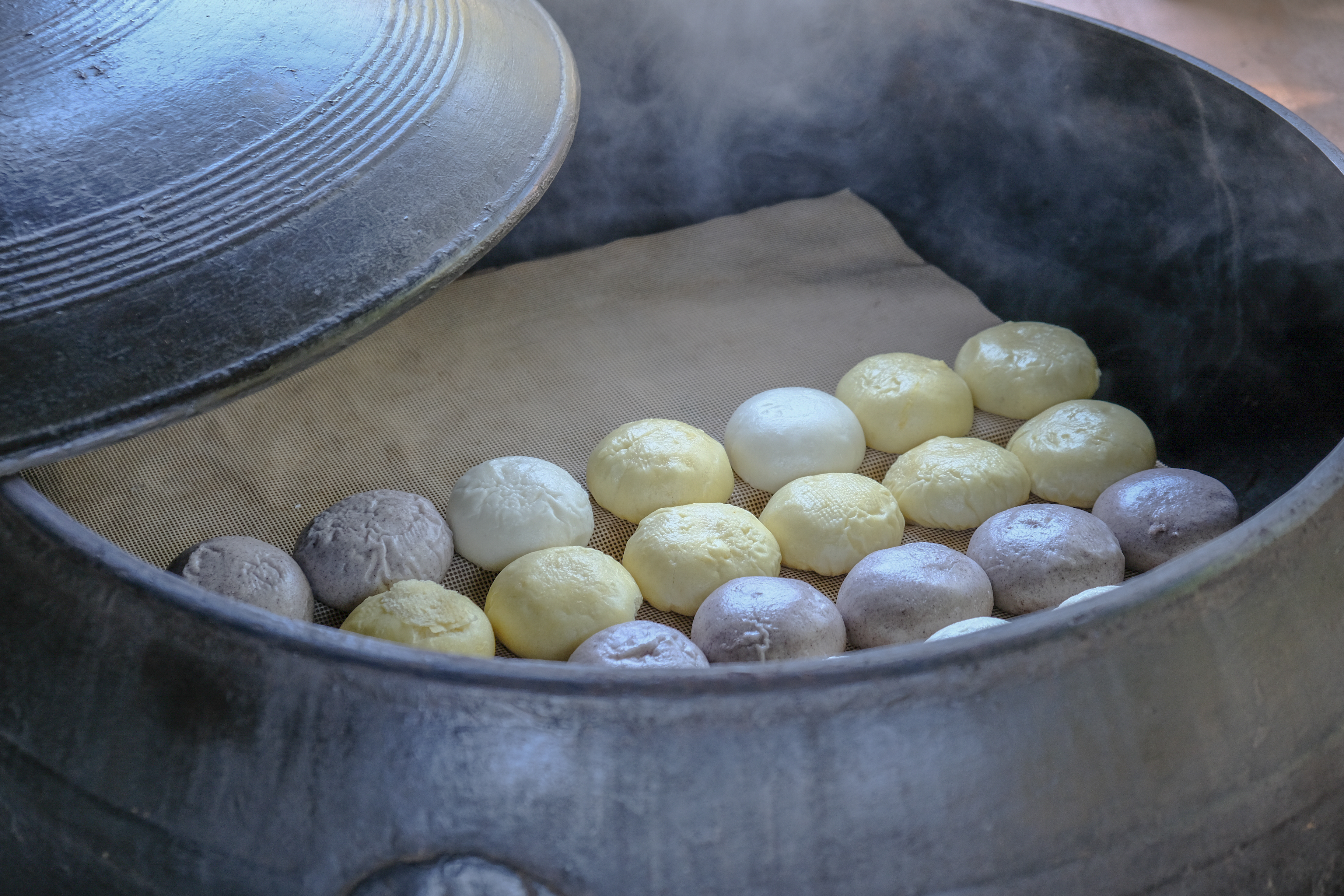 다 만들어진 비닐봉지에 담긴 찐빵을 가마솥에 넣는걸 봄..)