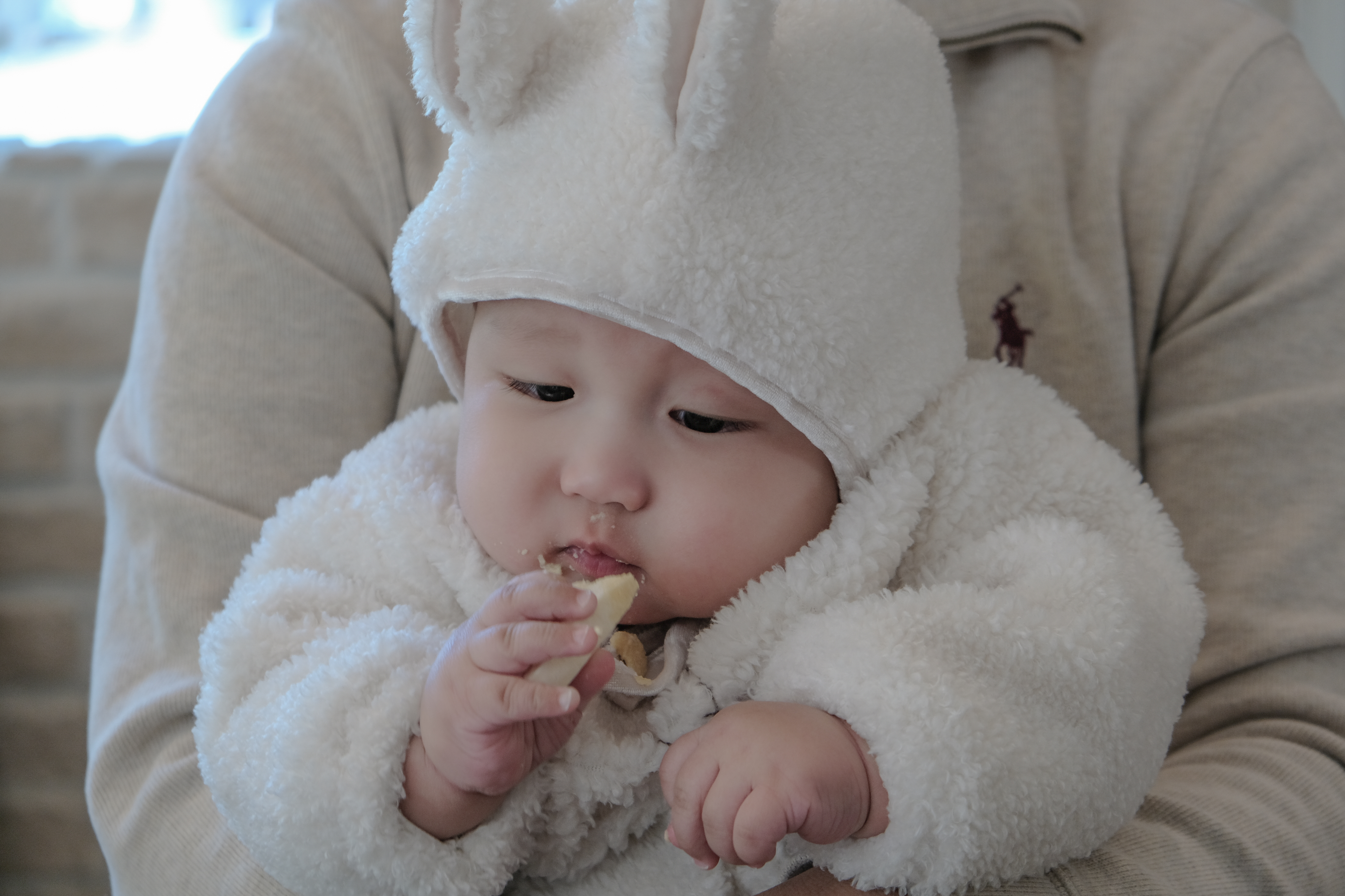 애기는 떡뻥을 먹으며