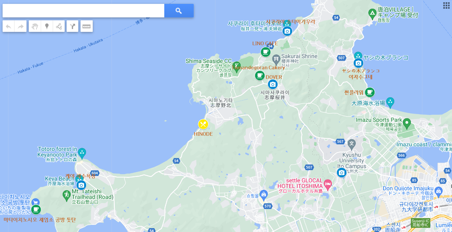 이토시마는 후쿠오카에서 차로 1시간 정도(40-50분) 걸린다.