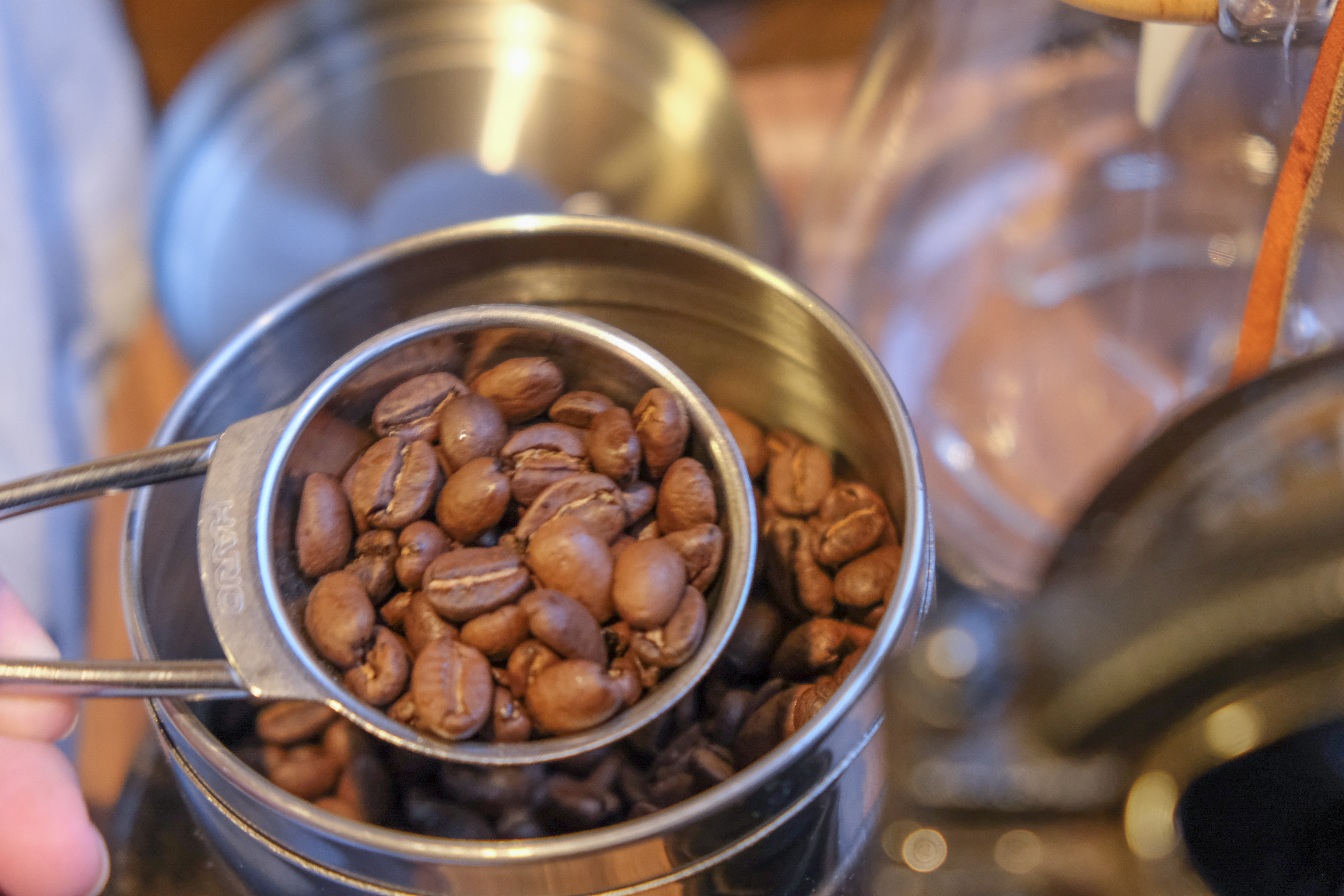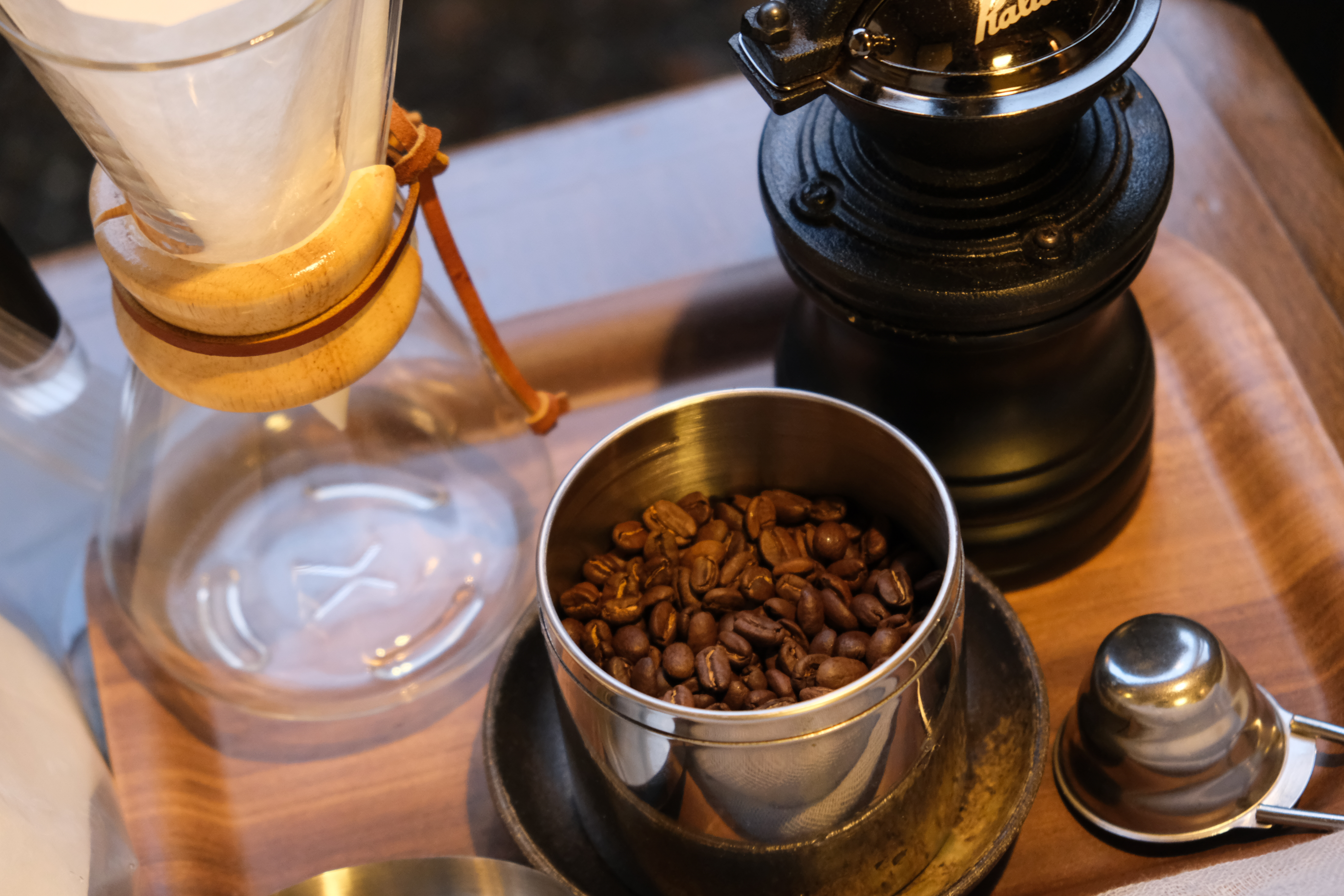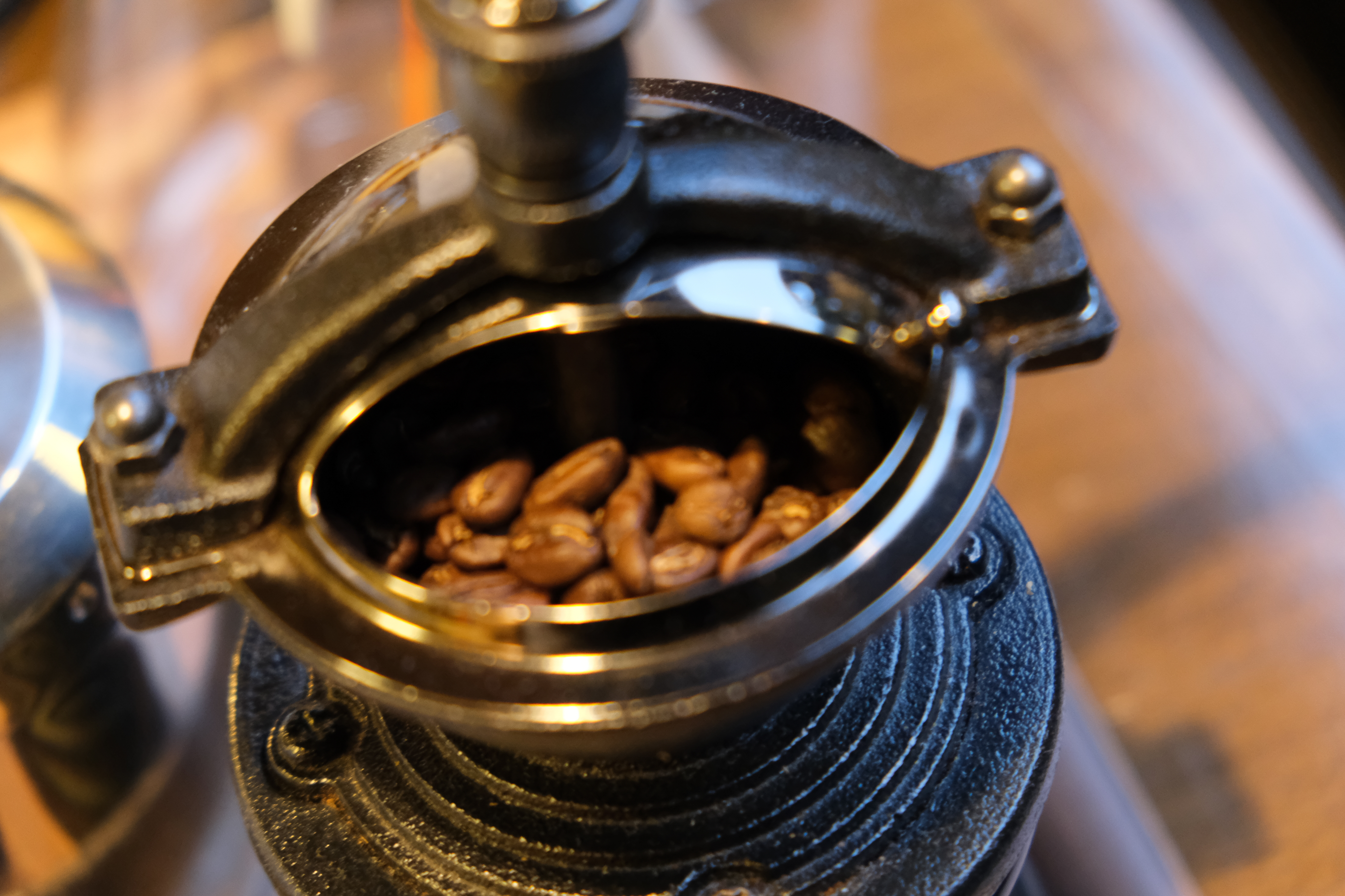 우리는 저녁 먹기 전에 원두를 갈아서 커피 한 잔 마시기로 했다.
