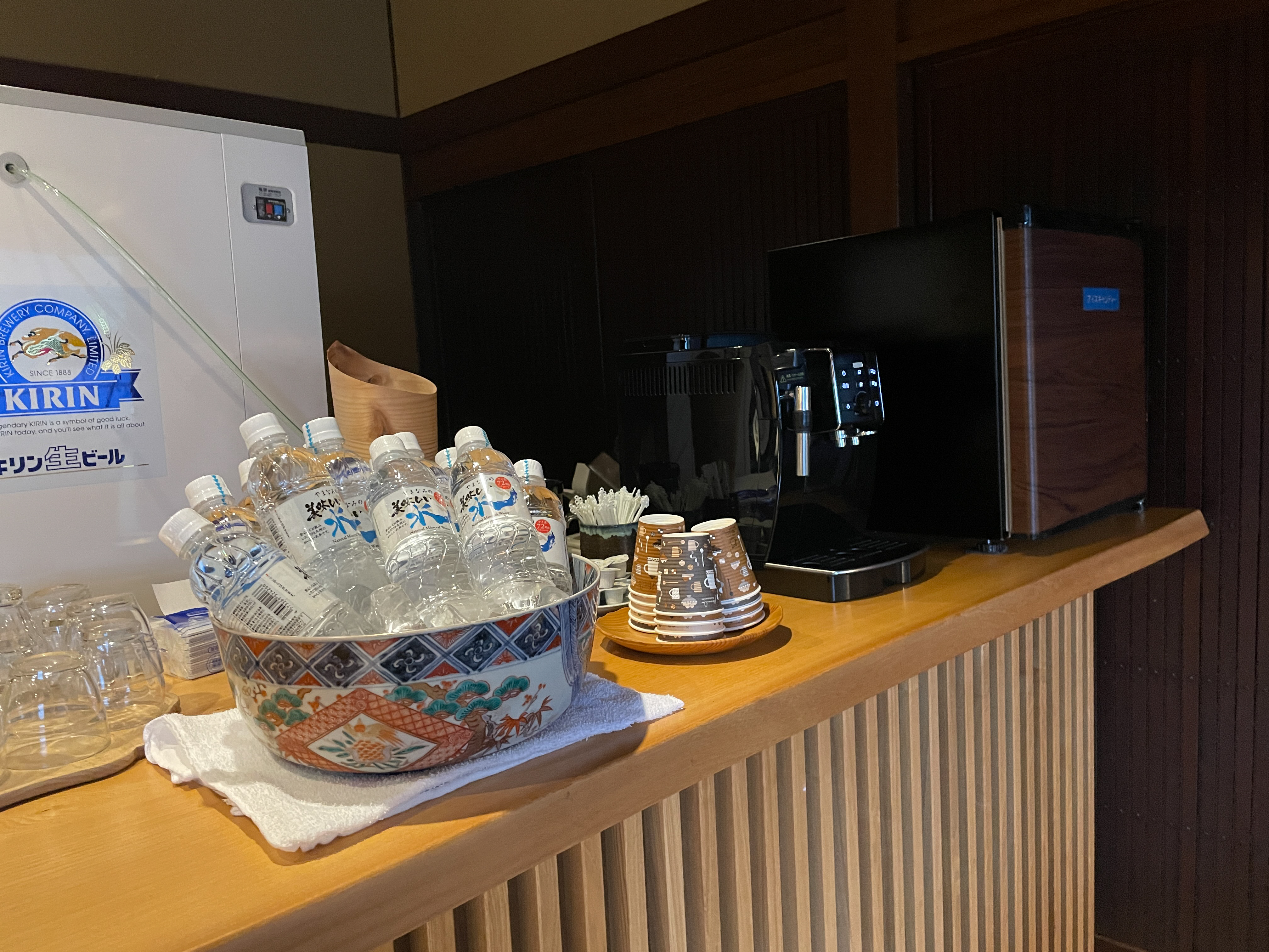 온천을 다 끝내고 무료 아이스크림, 무료 커피, 무료 맥주를 즐기러 rest area로 갔다.