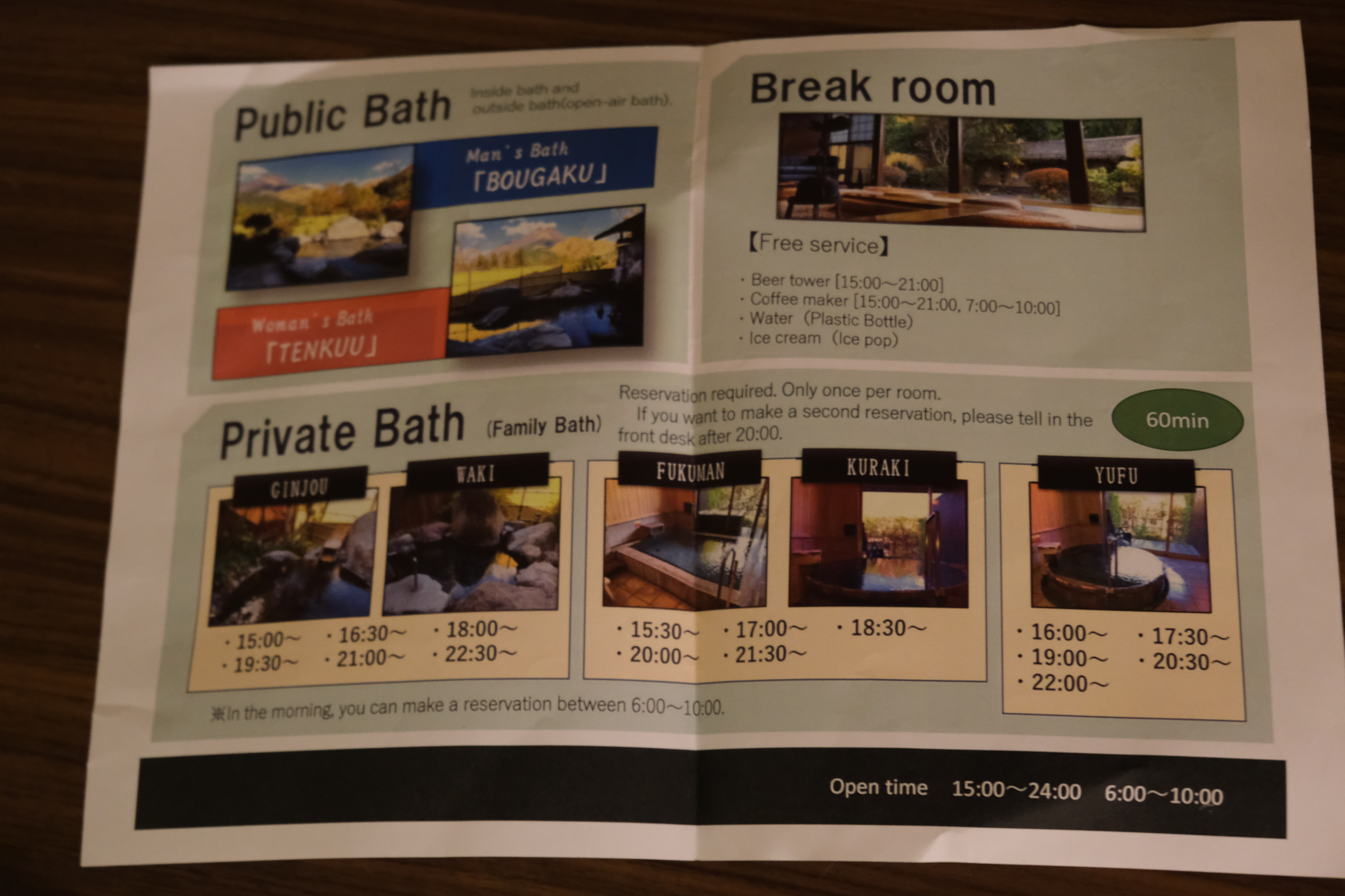 룸 1개당 가족탕 1번(1시간) 예약할 수 있었다.