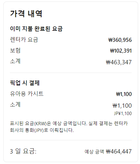3일 렌트카 비용: 464,447원